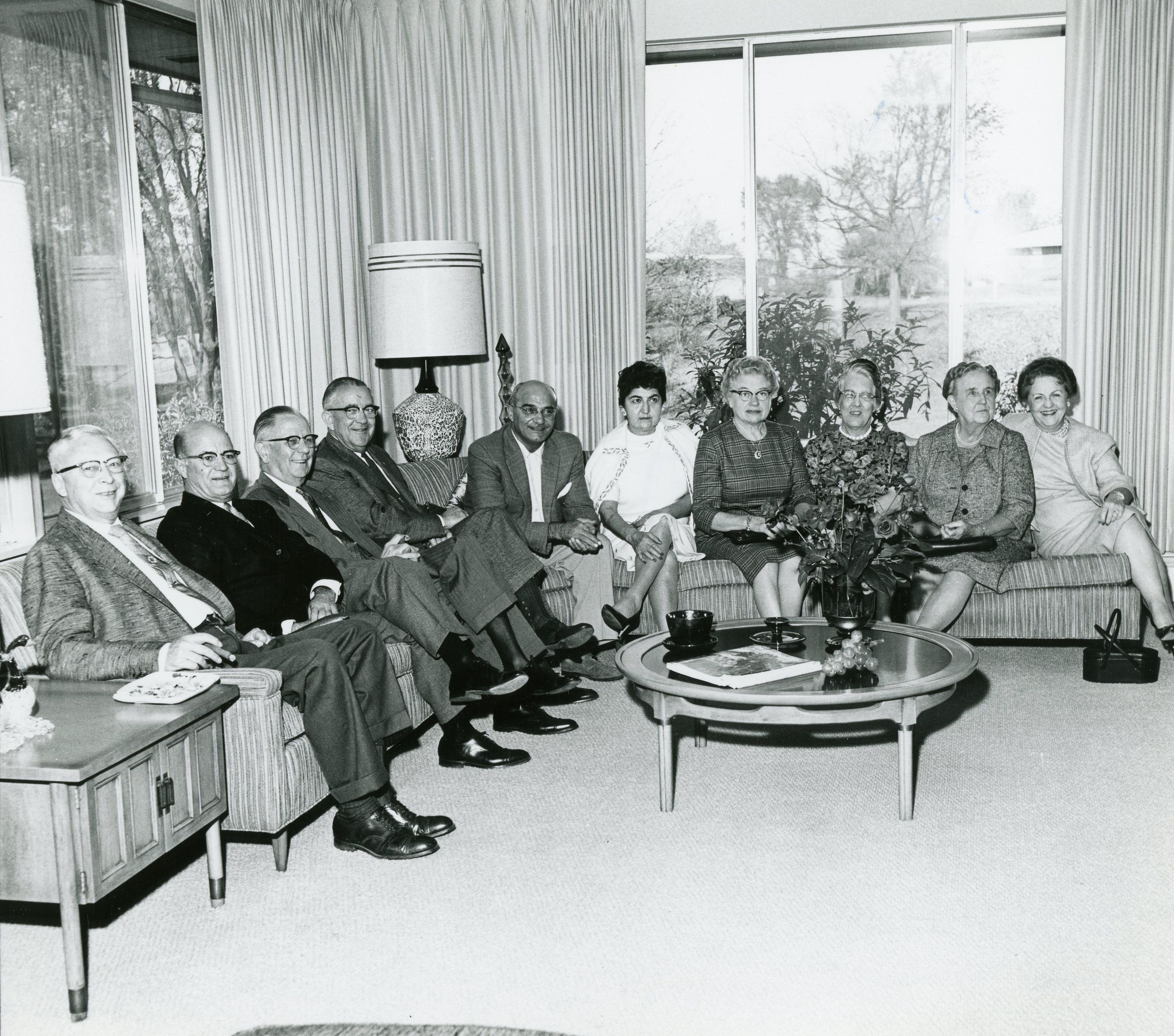 Rotary Club Members on Couch from Left to Right; Verne Snyder, George Rens, Mantans Uht, Ed Millis, Ed Mathison, Mrs. Mathison, Alice Rens, Mrs. Uht, Mrs Millis and Mrs. Snyder. Photo was taken by Fred Brown.Cataloged By