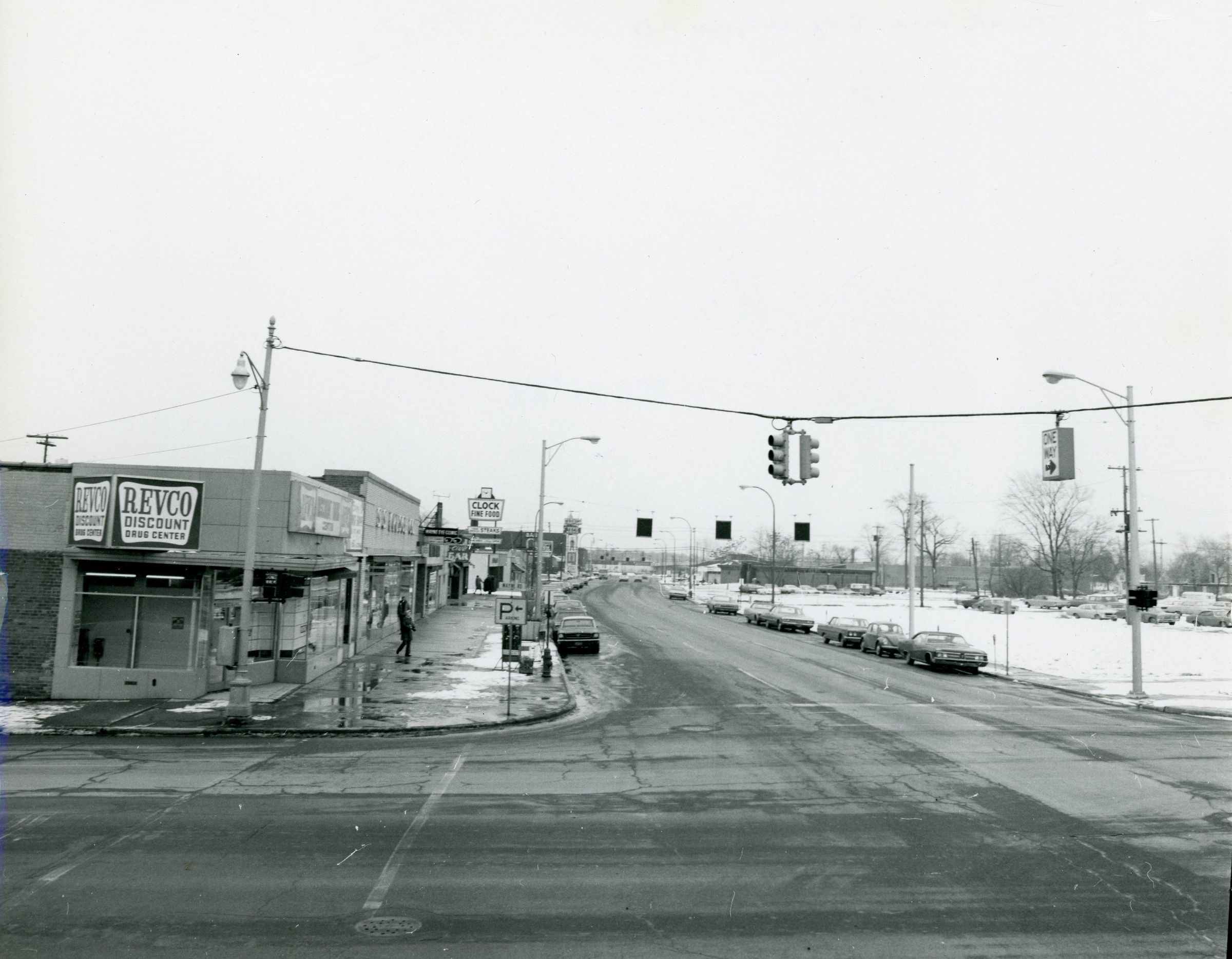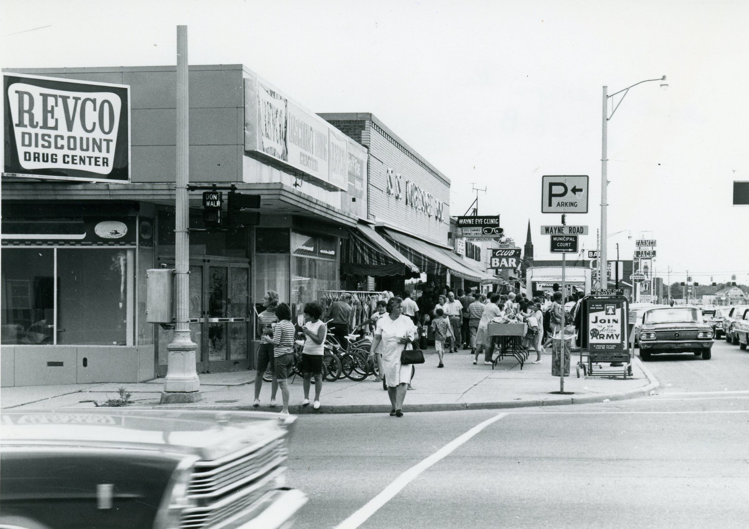 35028 Michigan - Cunninghams, Revco Drugs. NE corner Wayne road and Michigan. Originbally built in 1940s as a Kroger Grocery Store. Building still there as of 2024. remodeled.Cataloged By