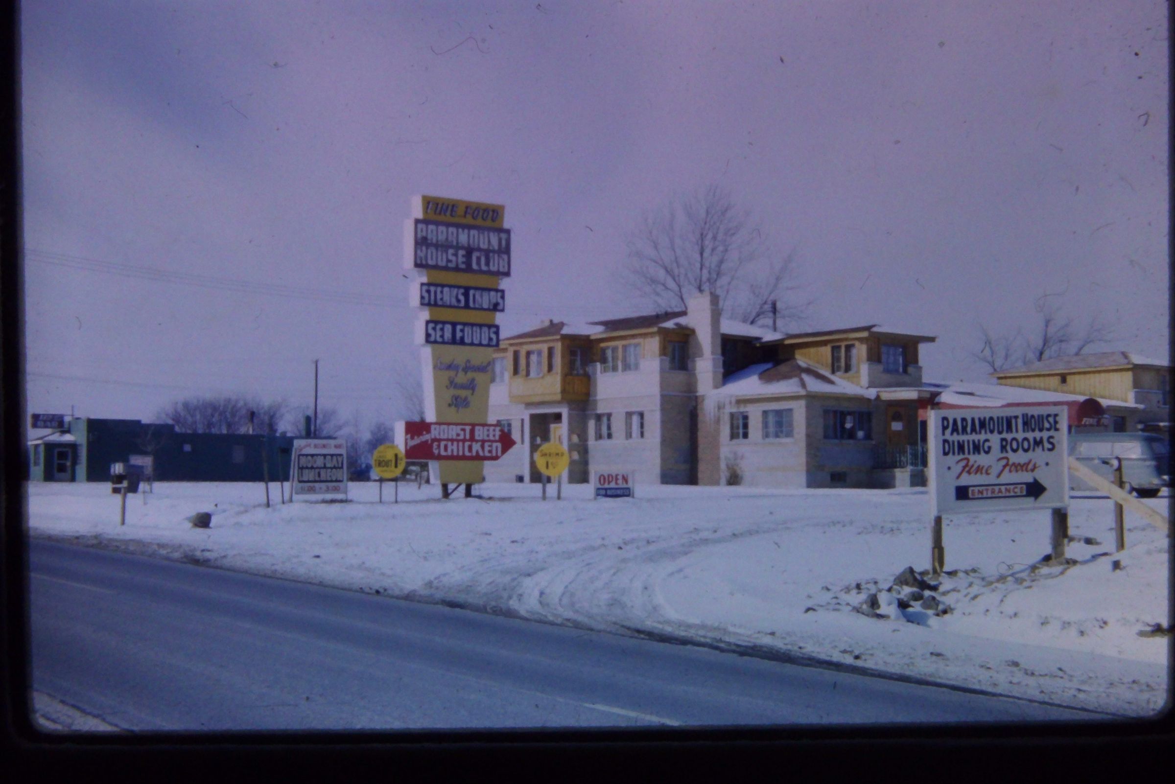 39112 Michigan Avenue - Paramount House Club and restaurant, Michigan Avenue. 1959. Old 112 bar on left of picture. It appears this building was remodeled into the new 112 bar, and torn down in 2019.Cataloged By