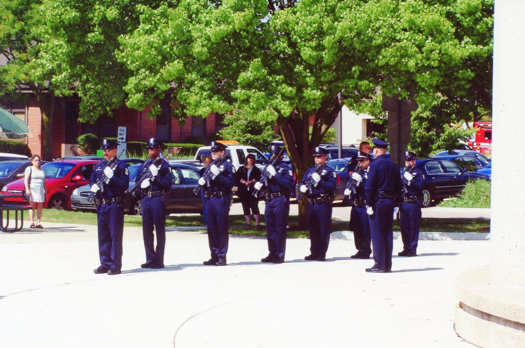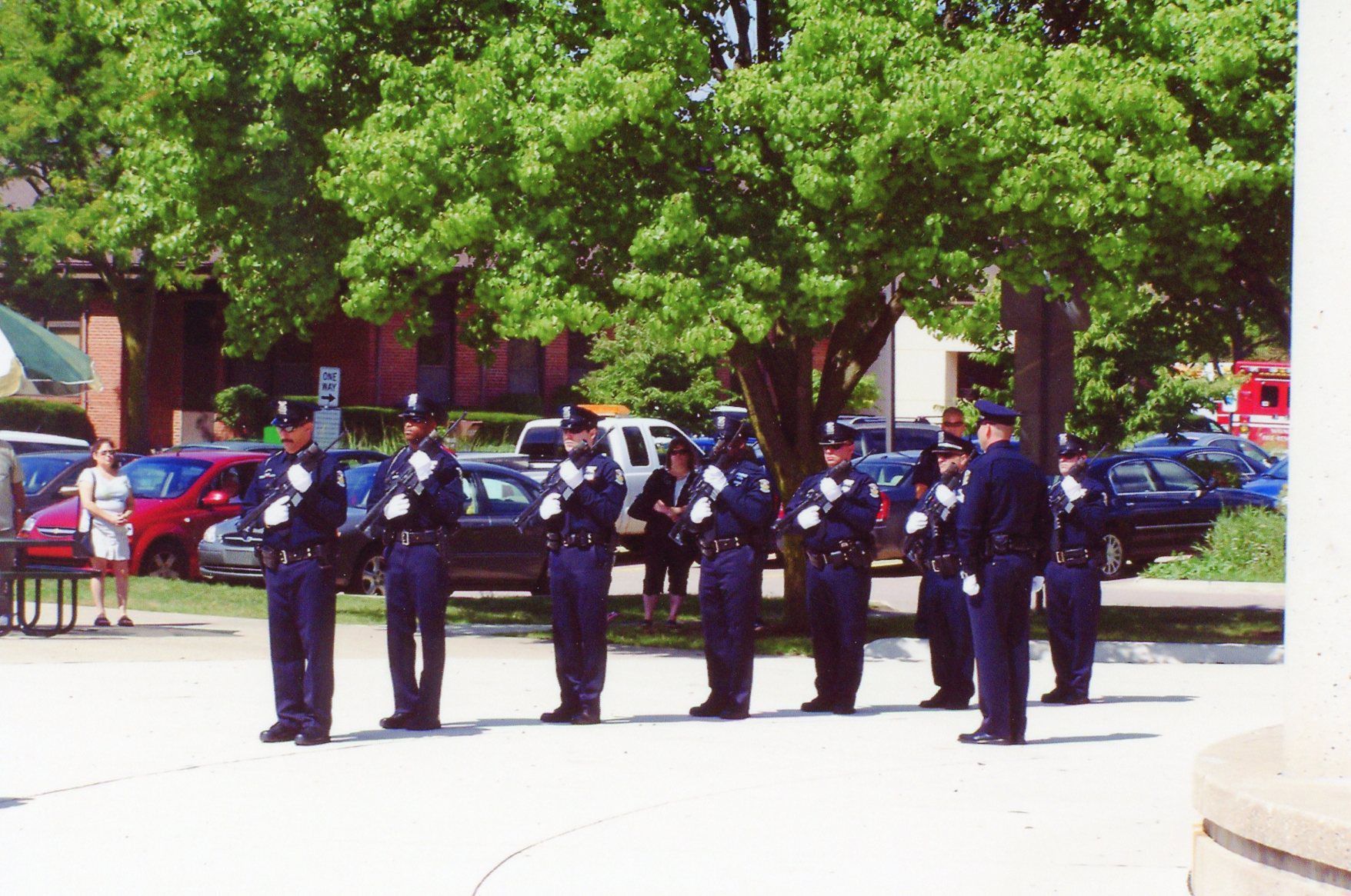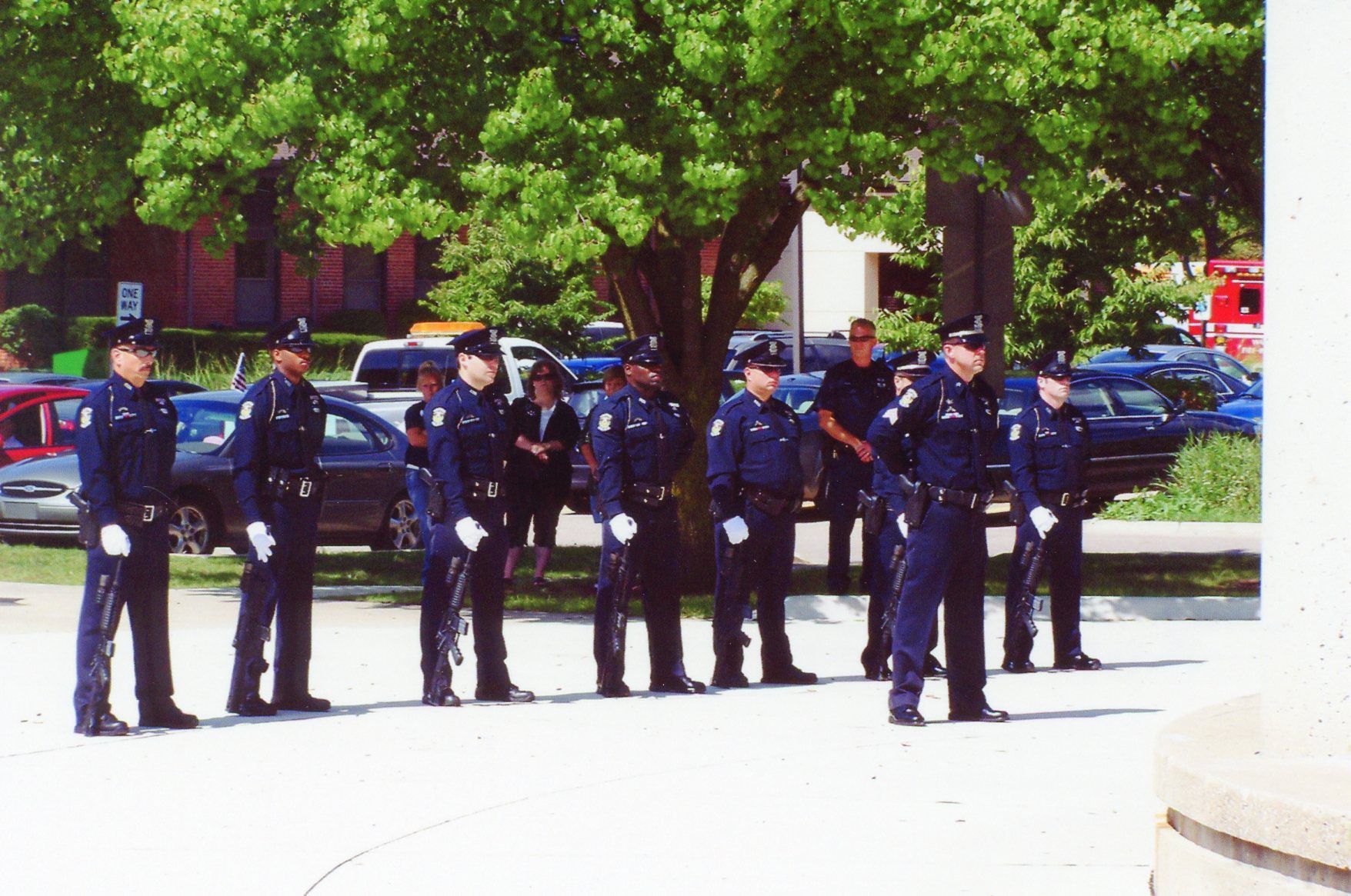 From left: Officer Terry Webb, Officer Terence Springer, Unknown Officer, Officer Finley Carter, Officer Charles Kubinski, Sgt. Bruce Wolfgram, Officer Randolph and Sgt. John Buffa at Sept 11 memorial on Sept 11, 2011.Cataloged By