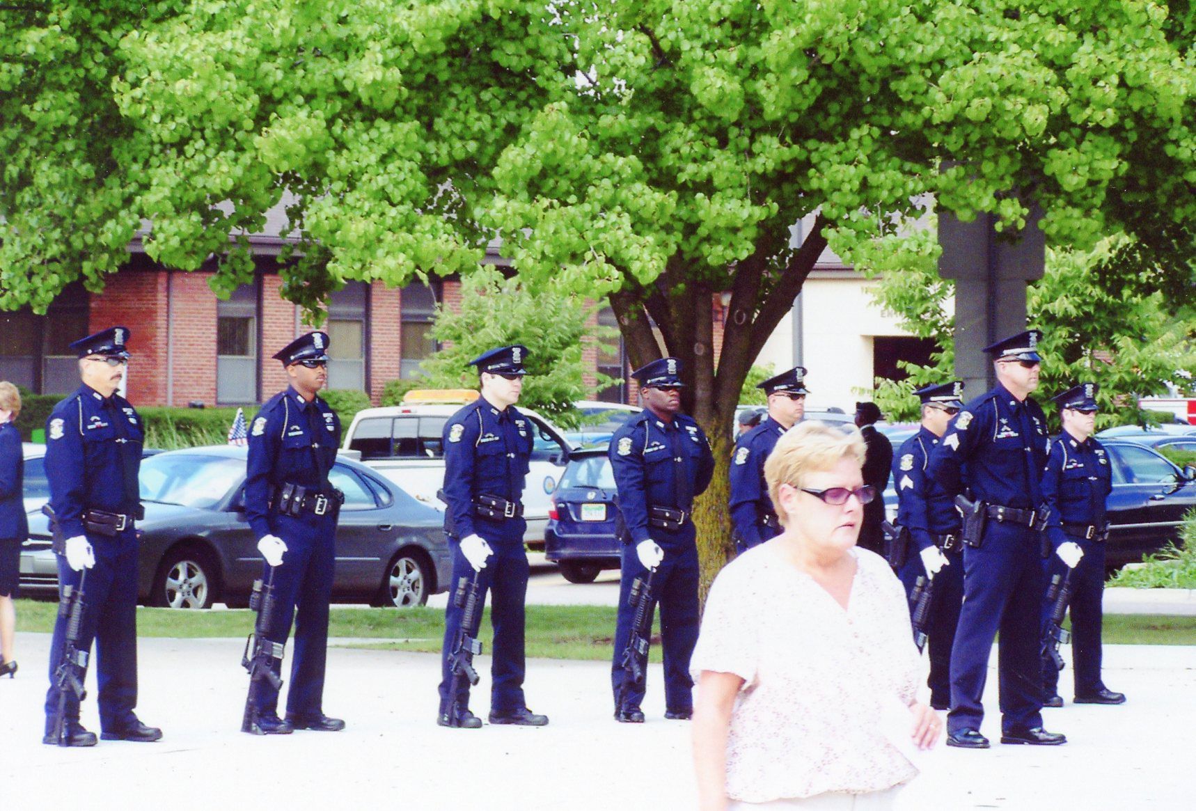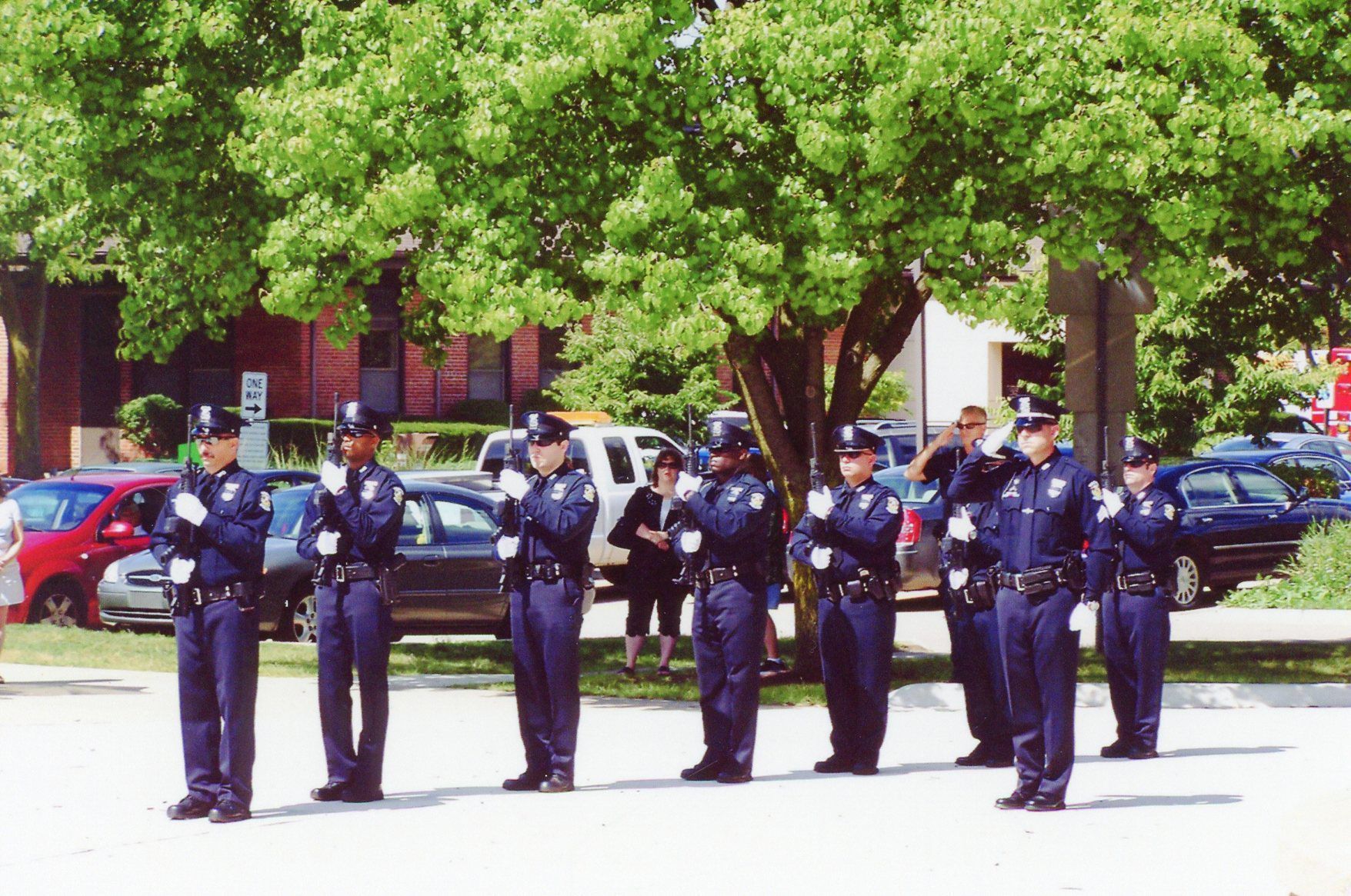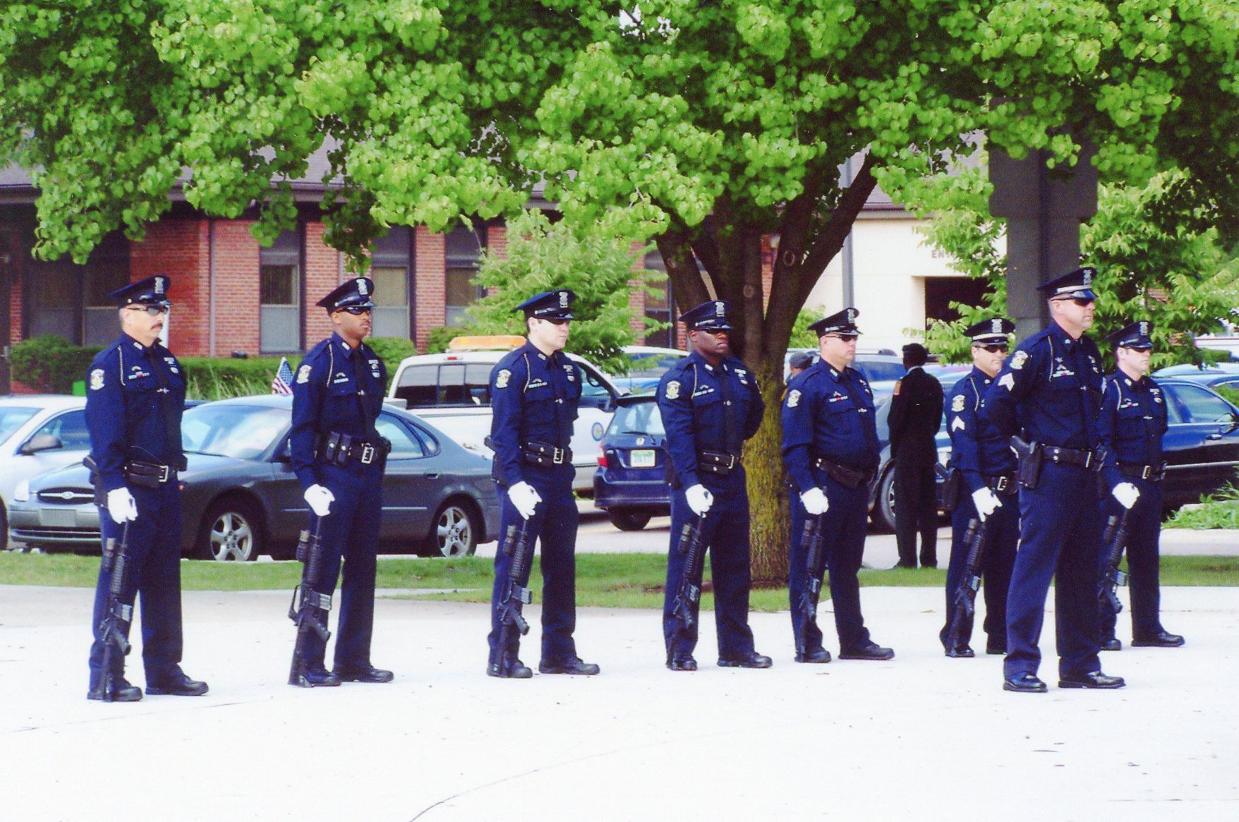 From left: Officer Terry Webb, Officer Terence Springer, Unknown Officer, Officer Finley Carter, Officer Charles Kubinski, Sgt. Bruce Wolfgram, Officer Randolph and Sgt. John Buffa at Sept 11 memorial on Sept 11, 2011.Cataloged By
