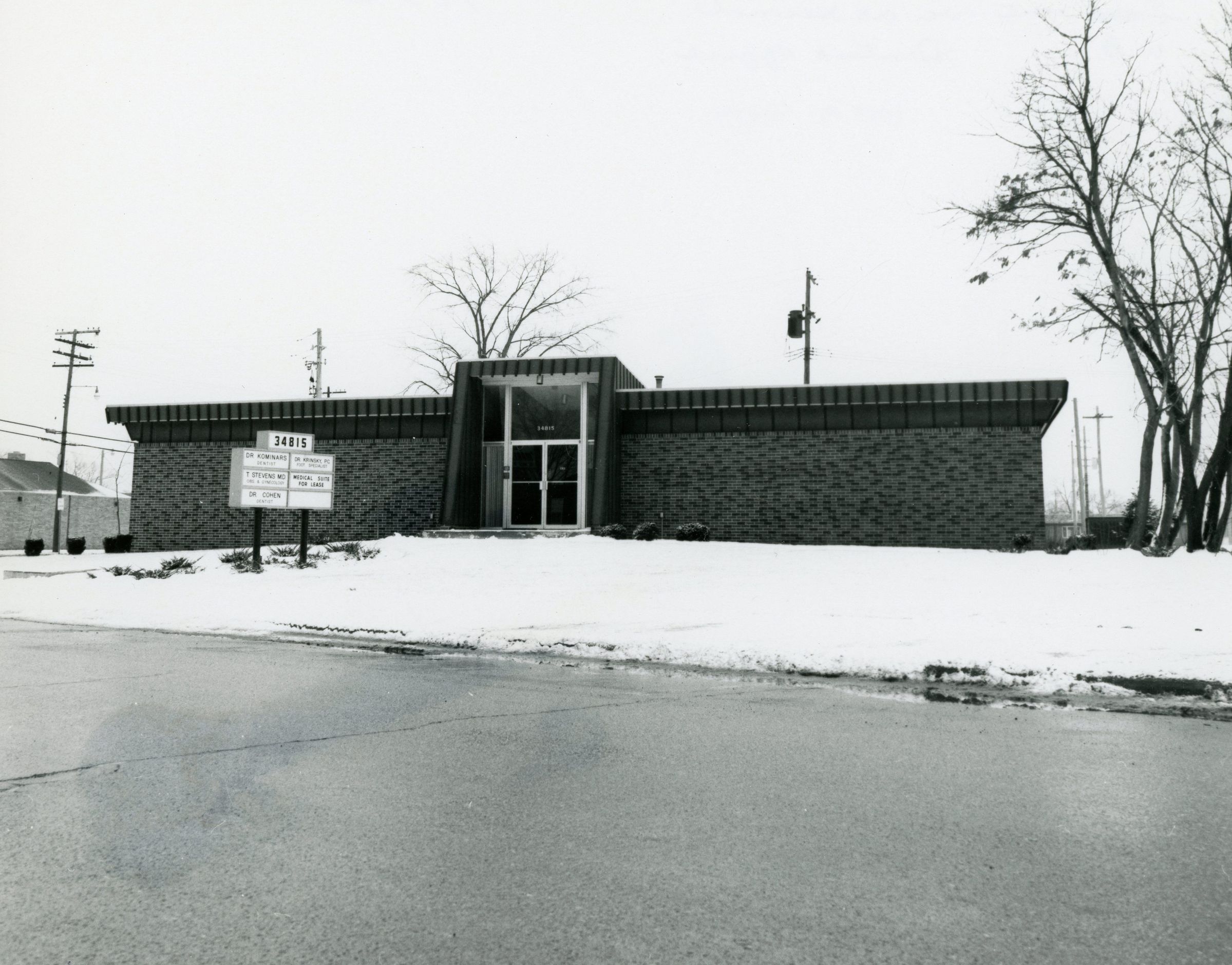 34815 Michigan. SW corner Michigan and 2nd. St., south side. Dr. Kominar, Dr. Stevens, Dr. Cohen, Dr. Krinsky. Medical Building built after Urban Renewal. 1972.