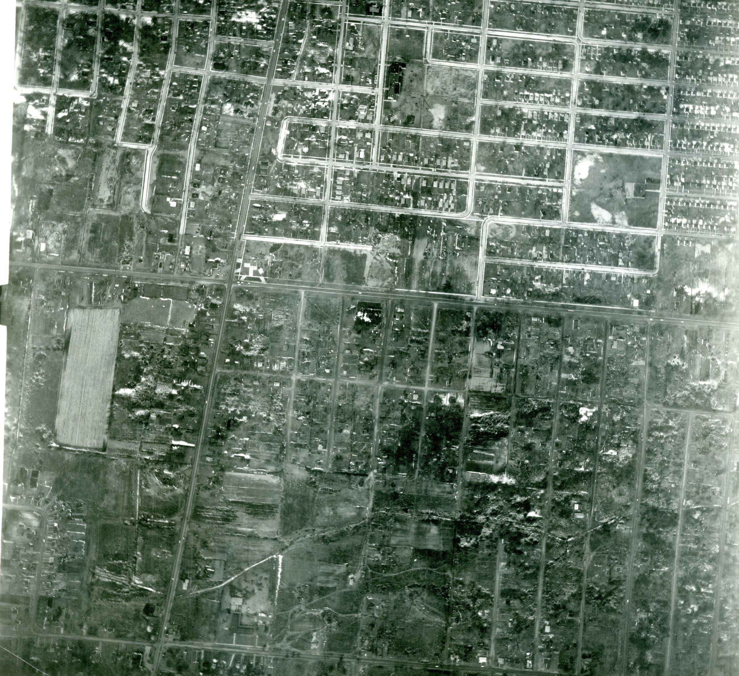 Over Van Born and Wayne Road, looking North. Van born runs horizontally through middle of picture, Wayne road main road on left side