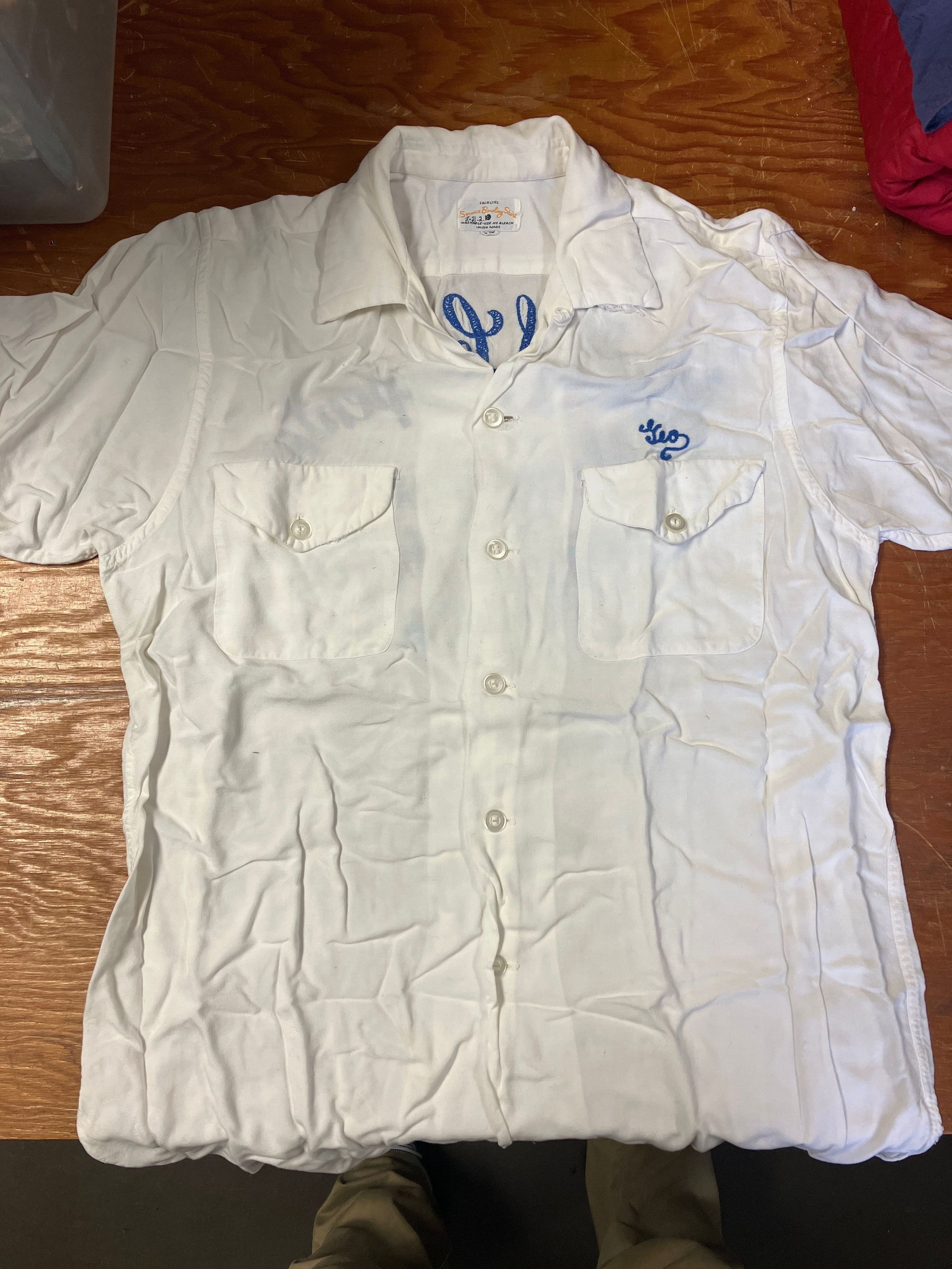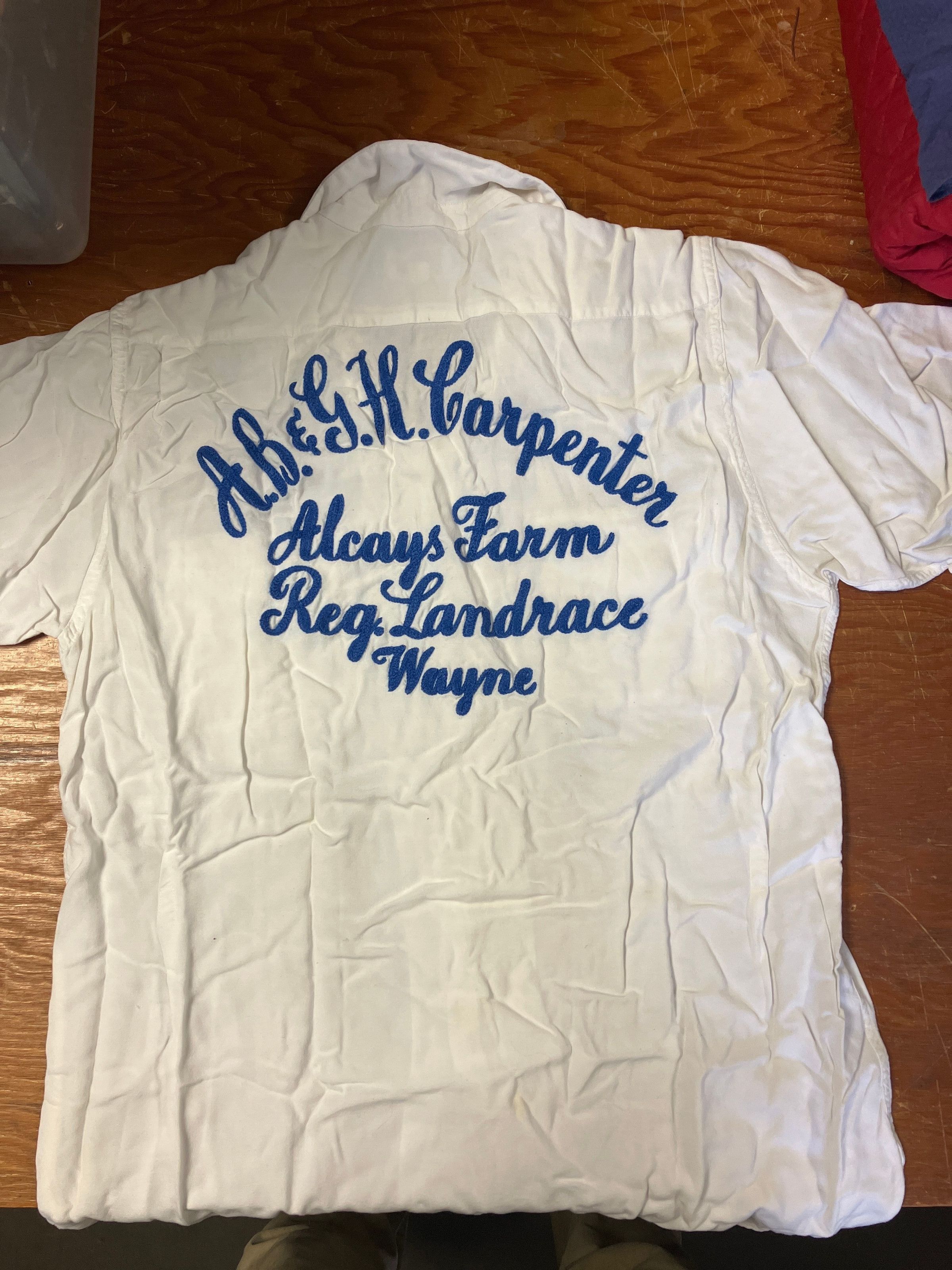 A. B. And G. H. Carpenter farm button up shirt. Always farm Reg. Landrace Wayne