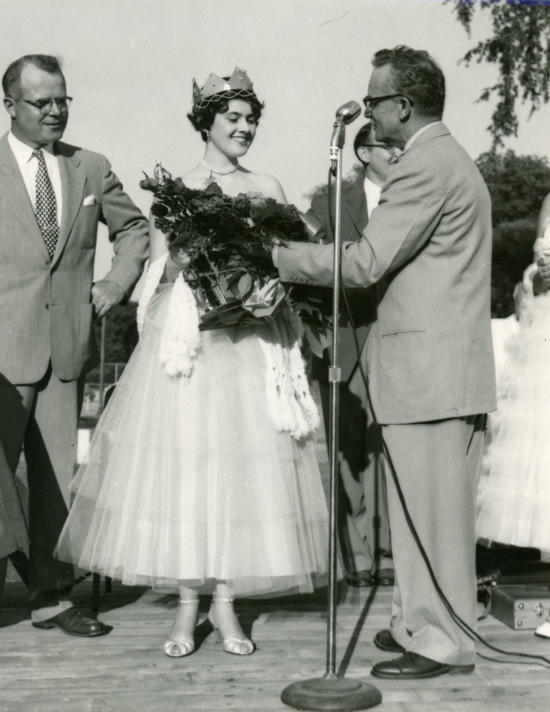 Kiwanis Miss Wayne Contest for Homecoming. Charles Curtiss, Dolores Hoover, Harold Hargrove