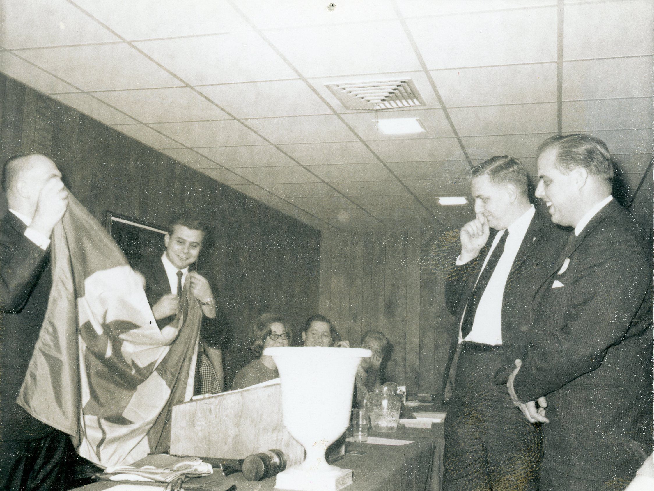 "Canada Night" at Rotary Club Meeting. Jenny Smith, Emile Genoats and Candadian Guest.