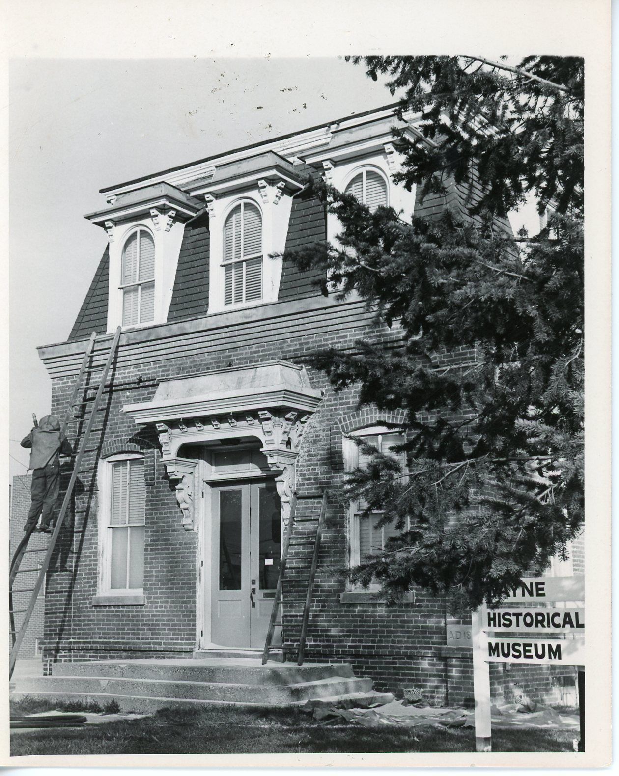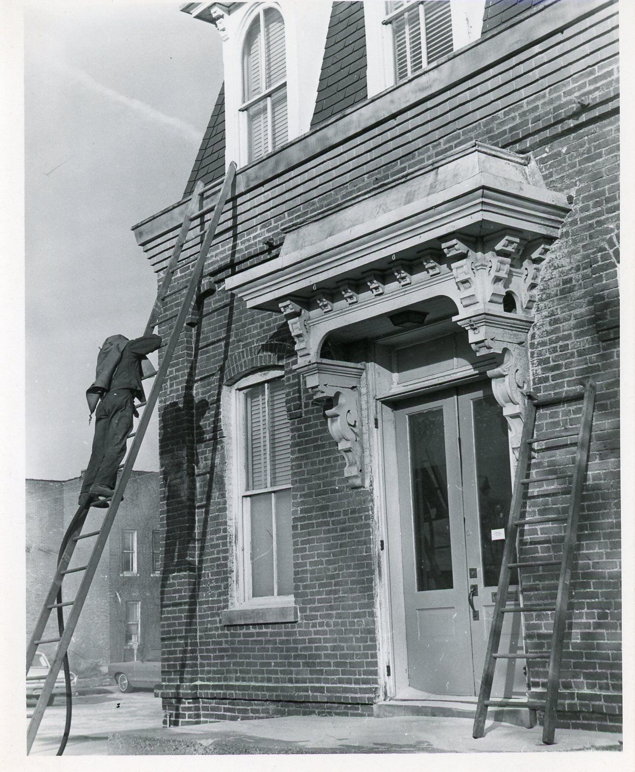 Sandblasting Wayne Historical Museum in October of 1967. The Museum is located at 1 Towne Square St. in Wayne, MI 48184.Cataloged By