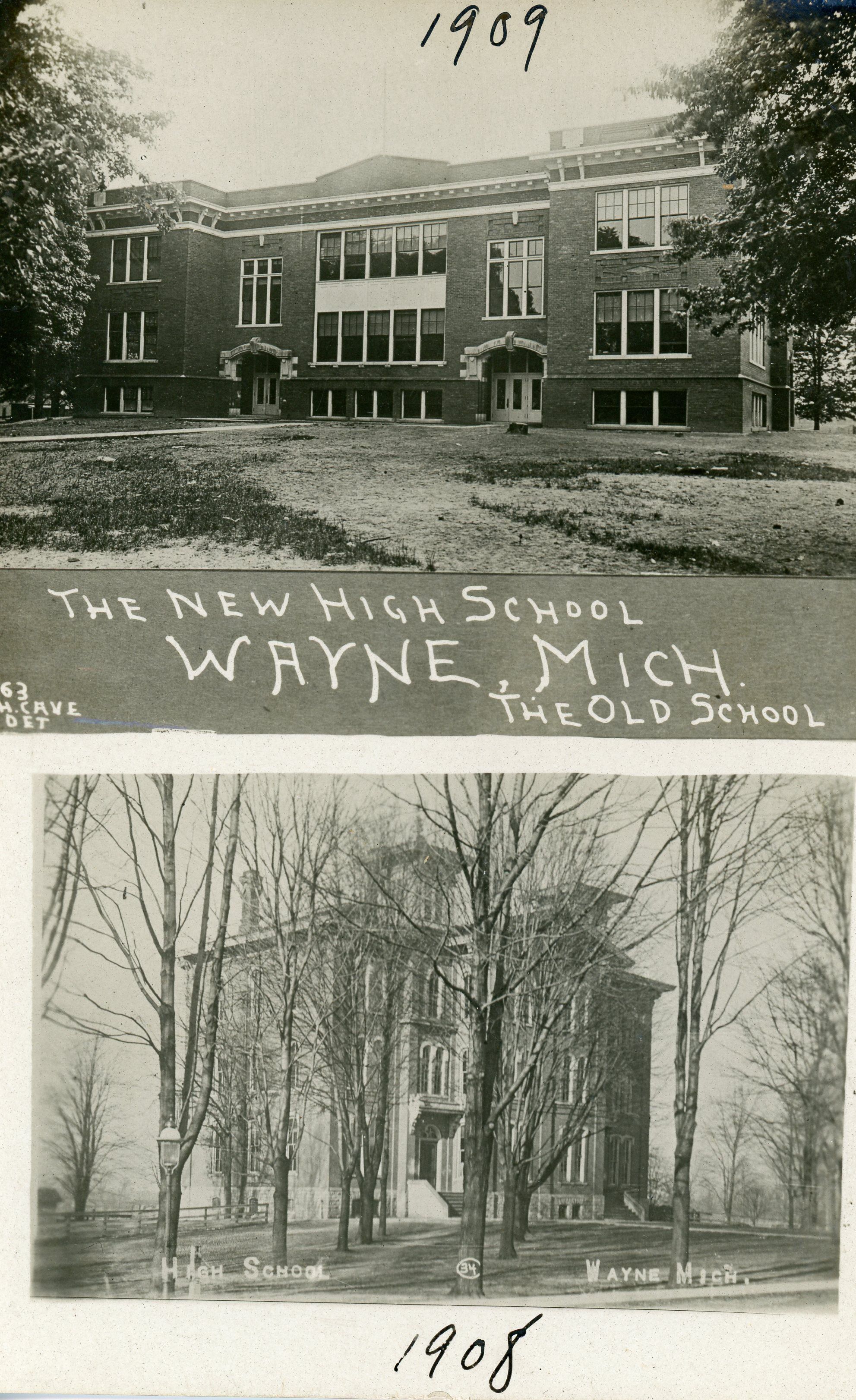 Old Union School on Bottom, New Roosevelt School on top. Sophia street between Main and Norris (today Elizabeth between Main and Michigan Avenue EB.)Cataloged By
