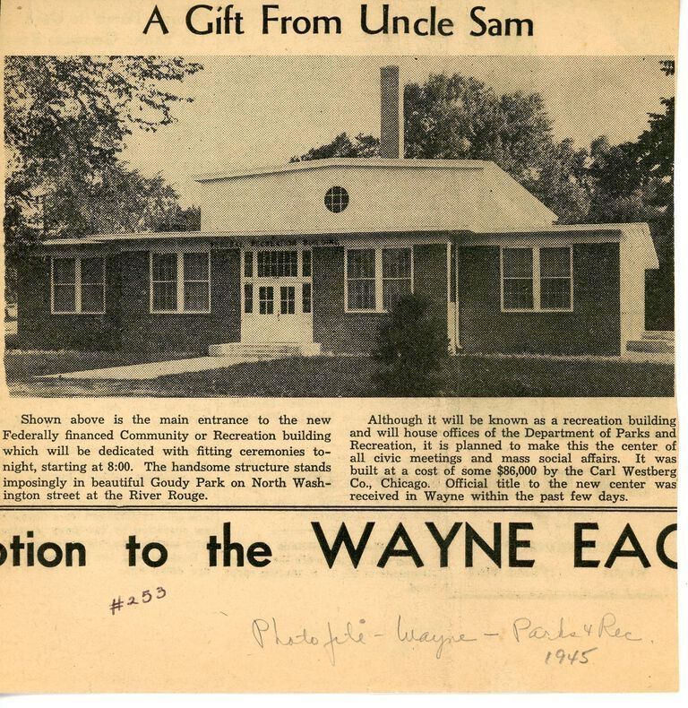 3355 S. Wayne Road - Built in 1945 by Federal Government as a recreation center for war workers. Had large meeting room with stage. Later ran by parks department, Late 1980s remodeled to become Wayne city hall.Cataloged By