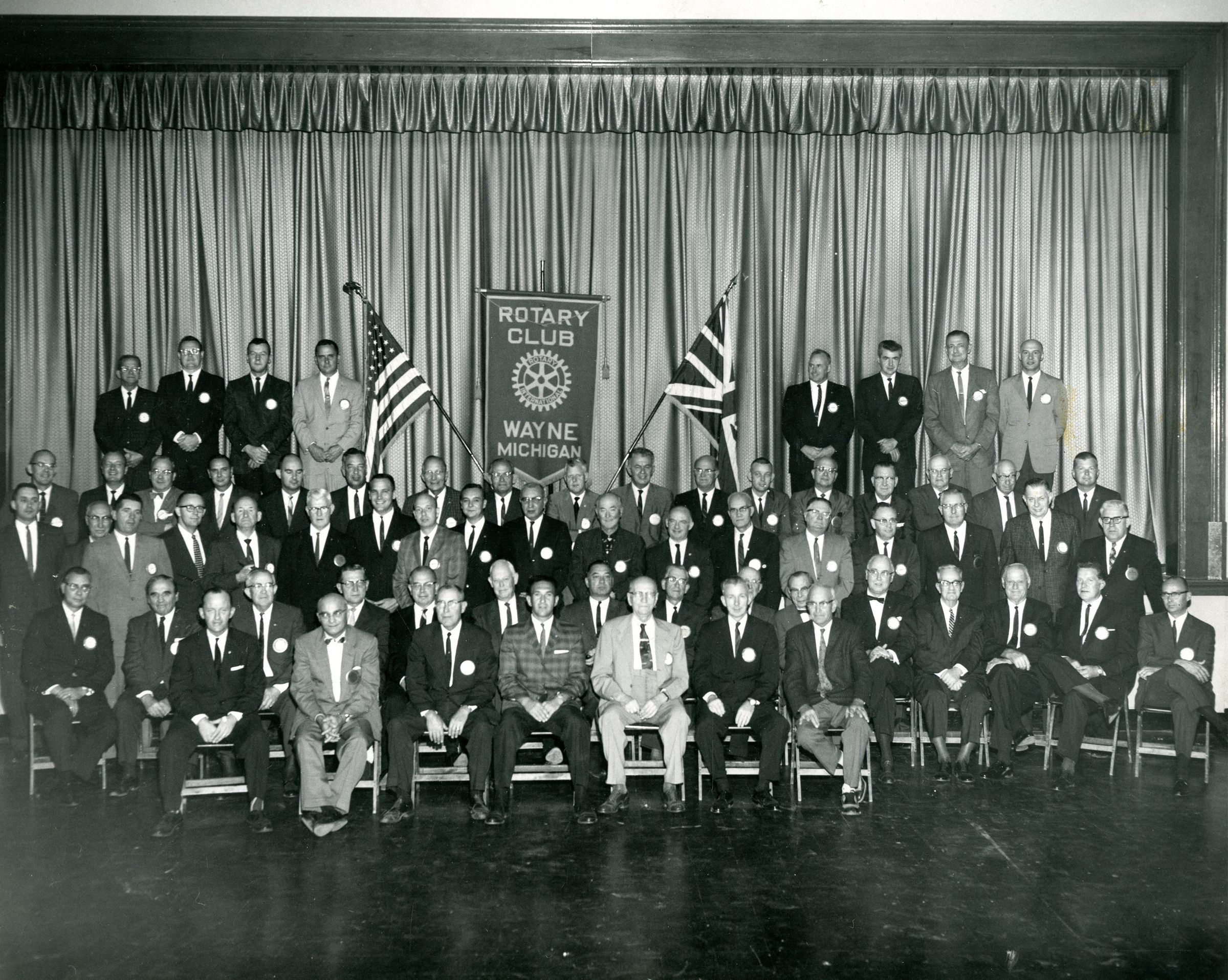 1963 Rotary Club Members. Front Row Left to Right; Clyde Warren, ?, Nye Hawley, ?,?,? and ?. 2nd Row from Front, Left to Right; ?, Dirk Van Reyendam, ?,William Mast, Ralph Biebesheimer, Wes Wilhart, Kenneth McKay, ?,?,Matt Tinkham Sr., Clarence Hinchey, ?,?,? and Matthew Tinkham Jr. 3rd Row From Front, Left to Right; ?, Lawrence Steinhauer, ?, Harry Kendall, ?, Dr. John Nutt, William Szlinis, Howard Stein Jr., Murray Millar, ?,?,?, Ray Gulick, ?, John Nathnagel, Miles Dietrich, ? and Robert Hutcherson. 4th Row from Front; Wally Arrowsmith, ?,?, Keith Millar, Tony Delafront, Harold Rediske, ?,?,?, Whitney Ballantine, ?,?,?,?,?, Peter Brender and ?. Back Row; ?,?, Dave Young, ?, Bob Medlyn (Al), Bill Mulhalland, John Vallance and Harold Goodman. Photo taken in Sept 1963.Cataloged By