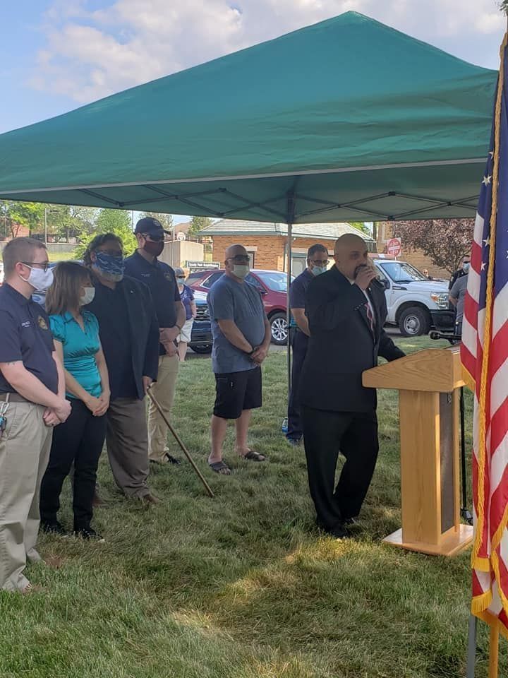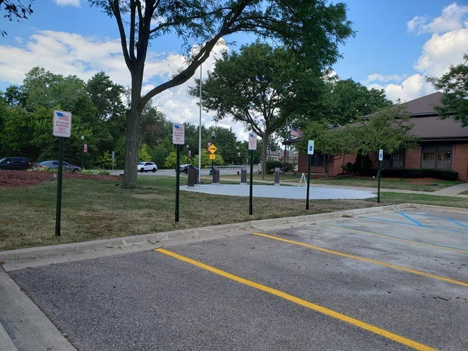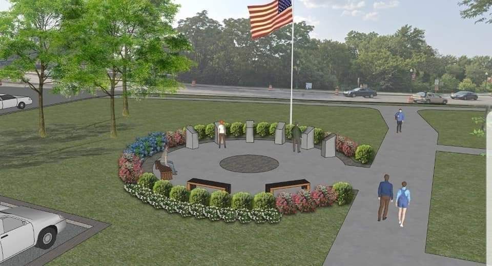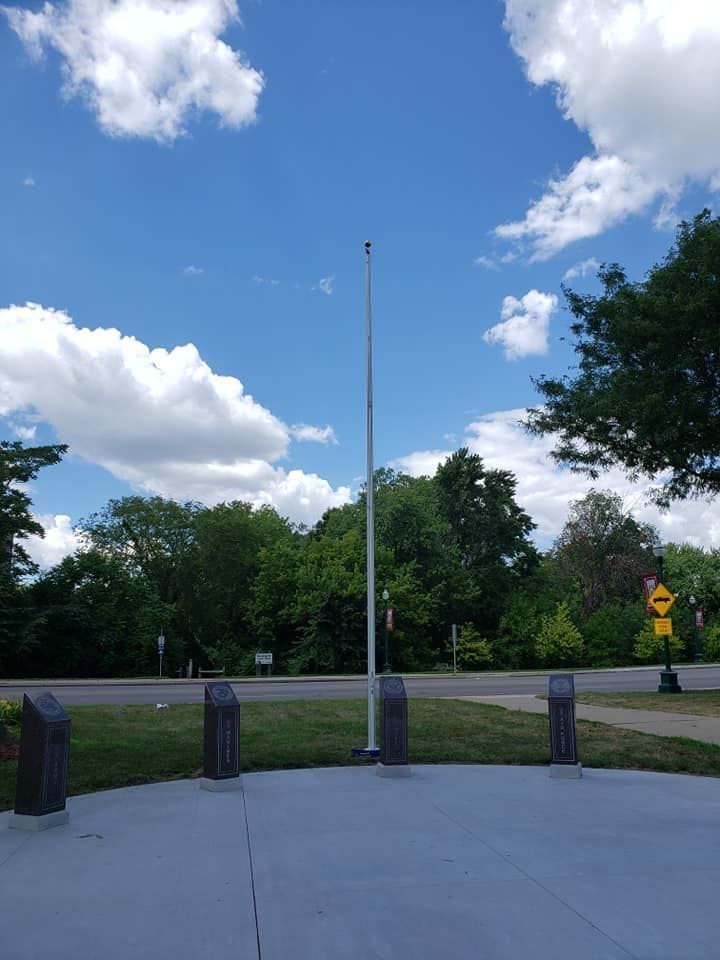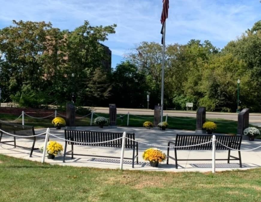 New Veterans Memorial - 2020. Built next to City Hall in Goudy Park. Carved Stones were donated from UAW Local 845 Veterans memorial formerly in Canton.Cataloged By