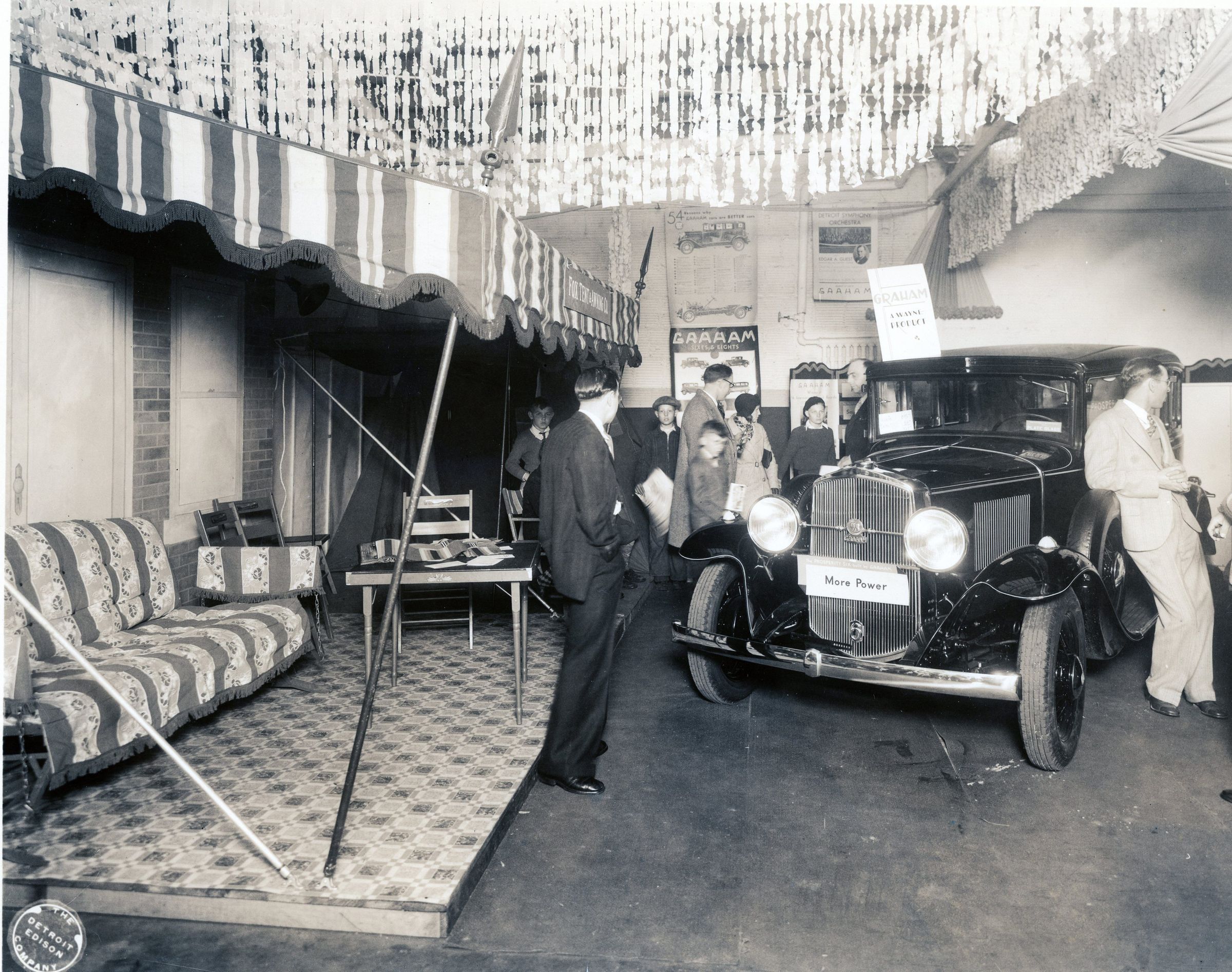 Customers looking at a Graham-Paige Automobile in a showroom. Photo was taken in May 01,1931.