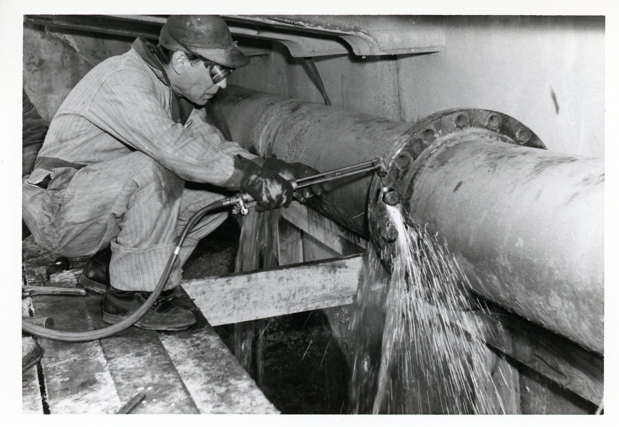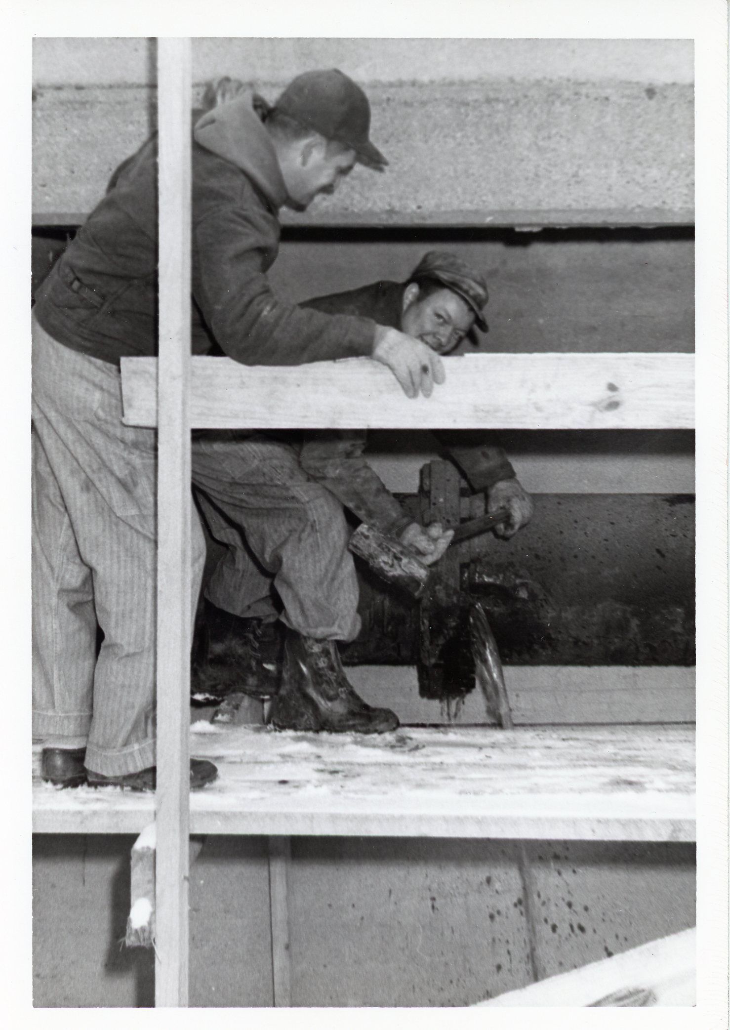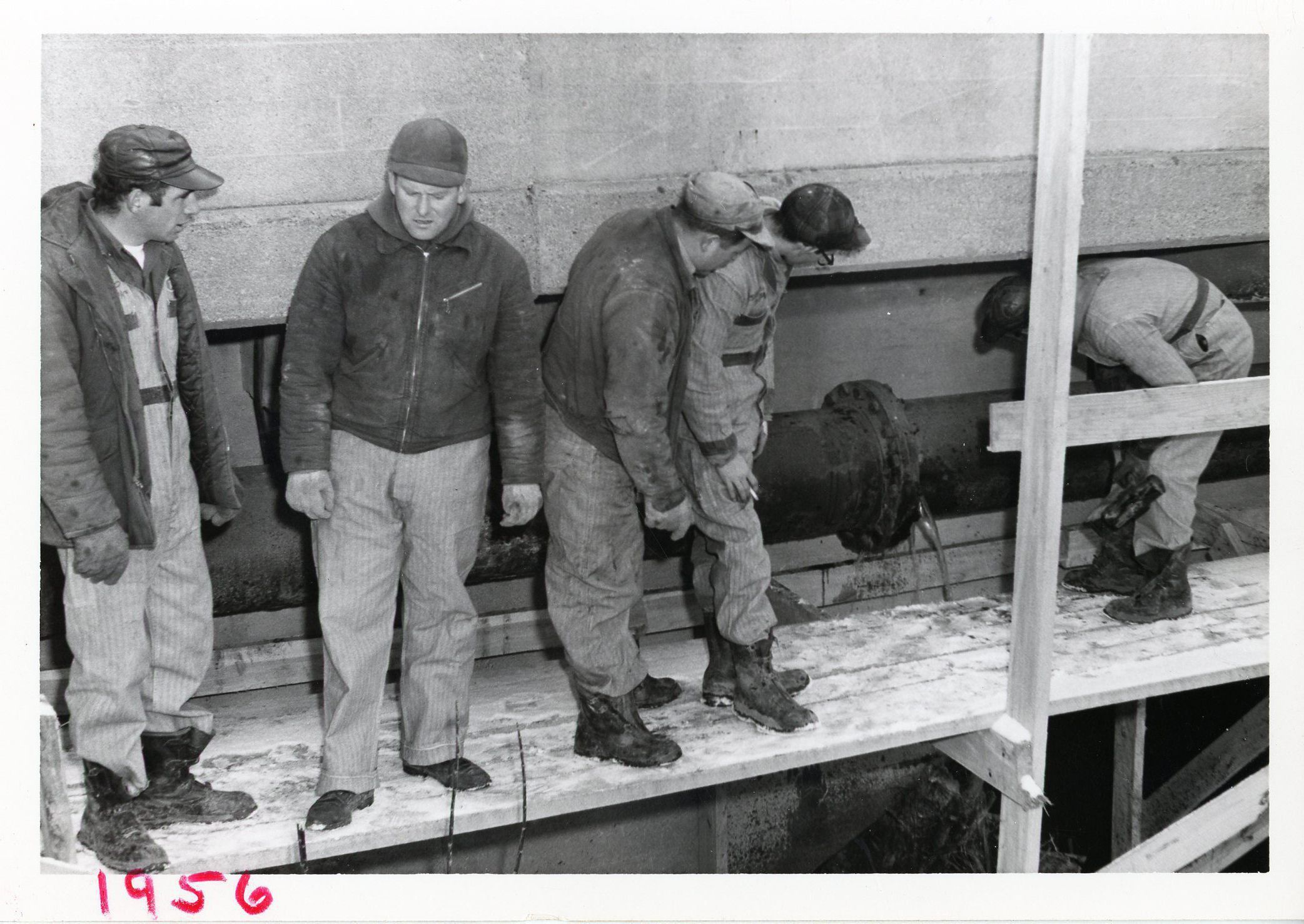 D.P.W doing Work on Wayne Rd Bridge Sewer in 1956.