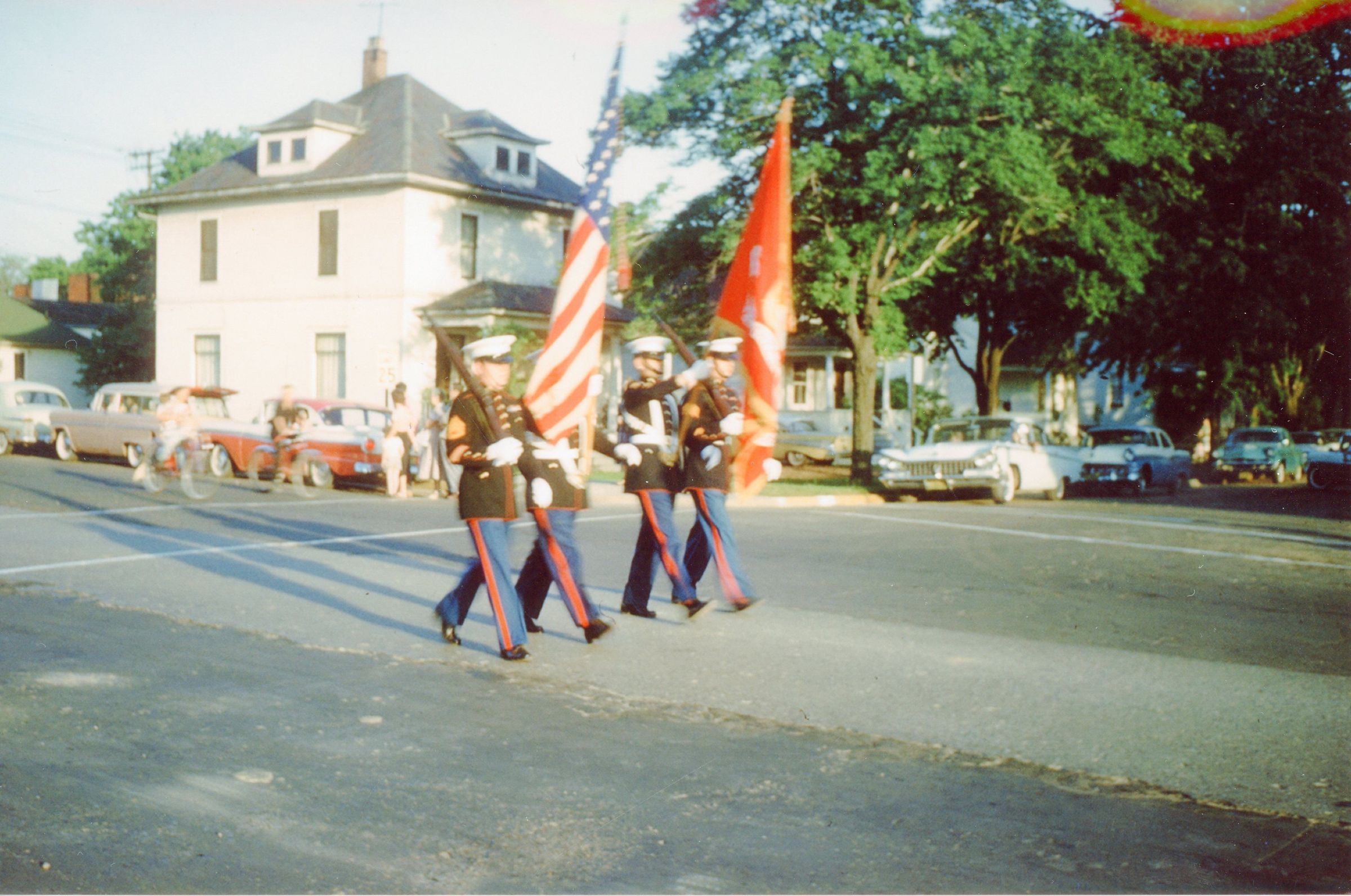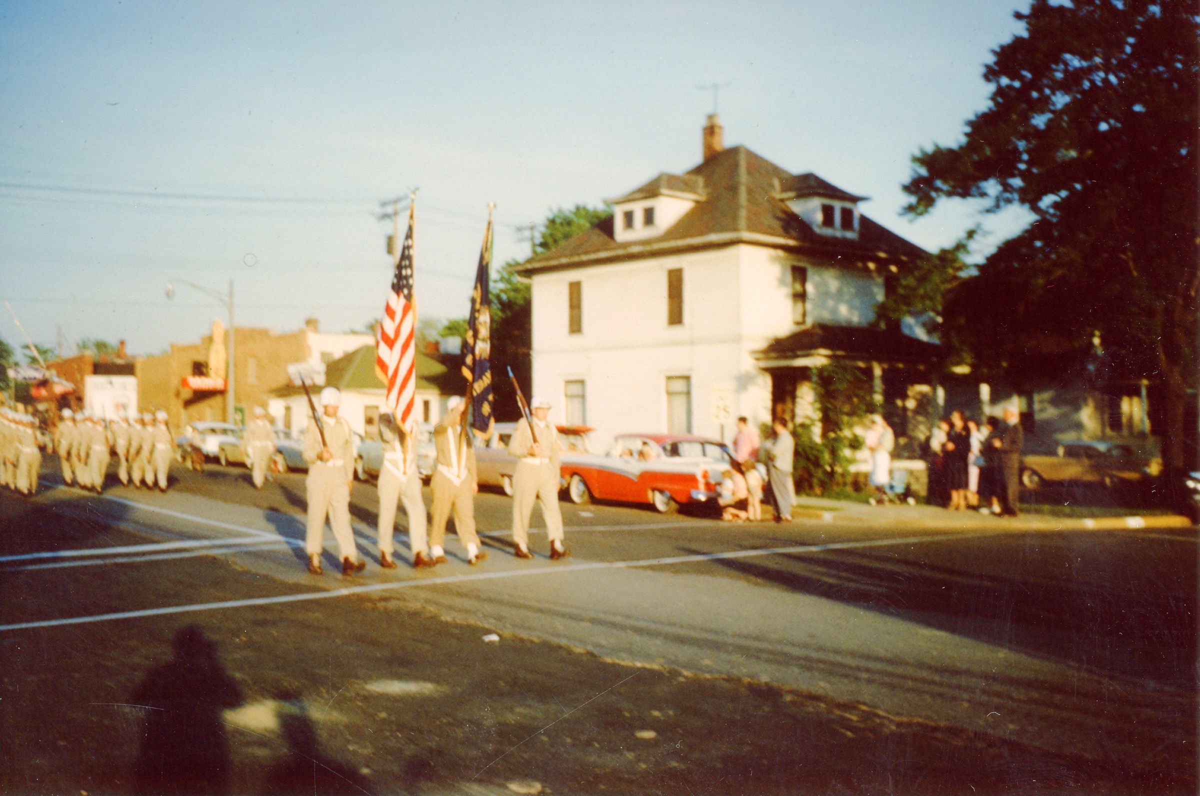 VFW marching in Parade on Old Elizabeth St and Mich Ave in 1960.