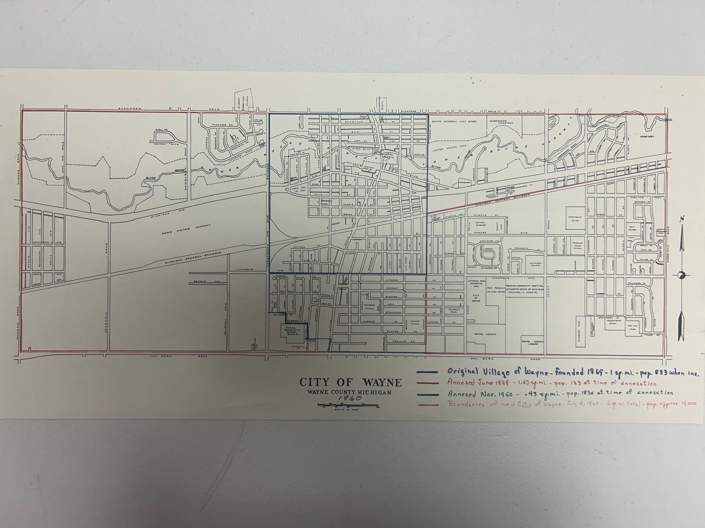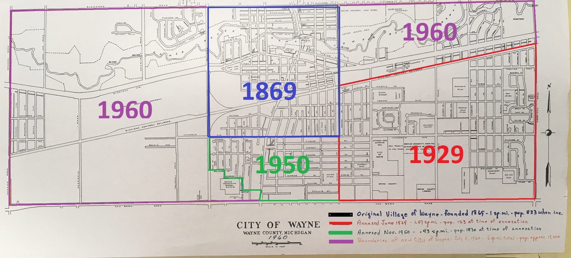 1960 Annexation Map of Wayne, showing when each area of the city was annexed to be part of the village/City.