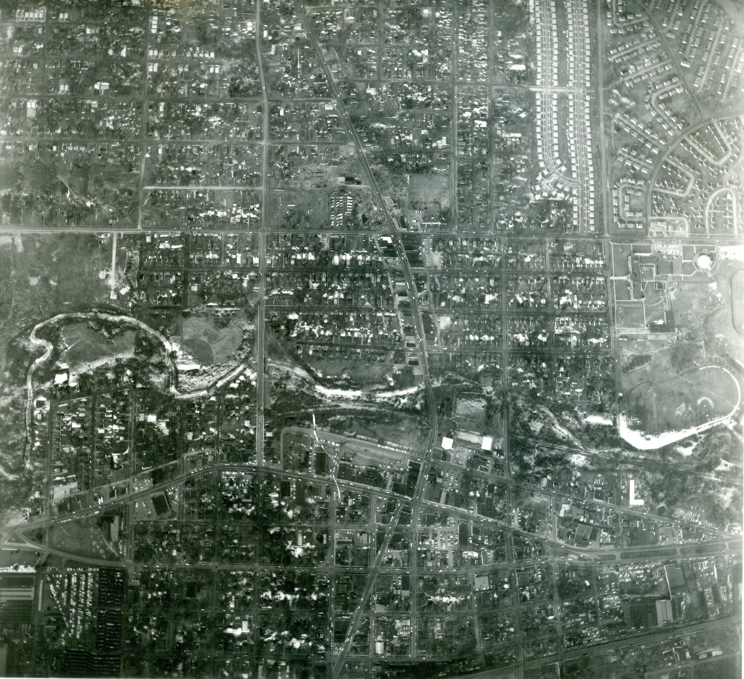 Over Downtown and area north. Glenwood rd at top 1/2 of picture. WMHS at far right.
