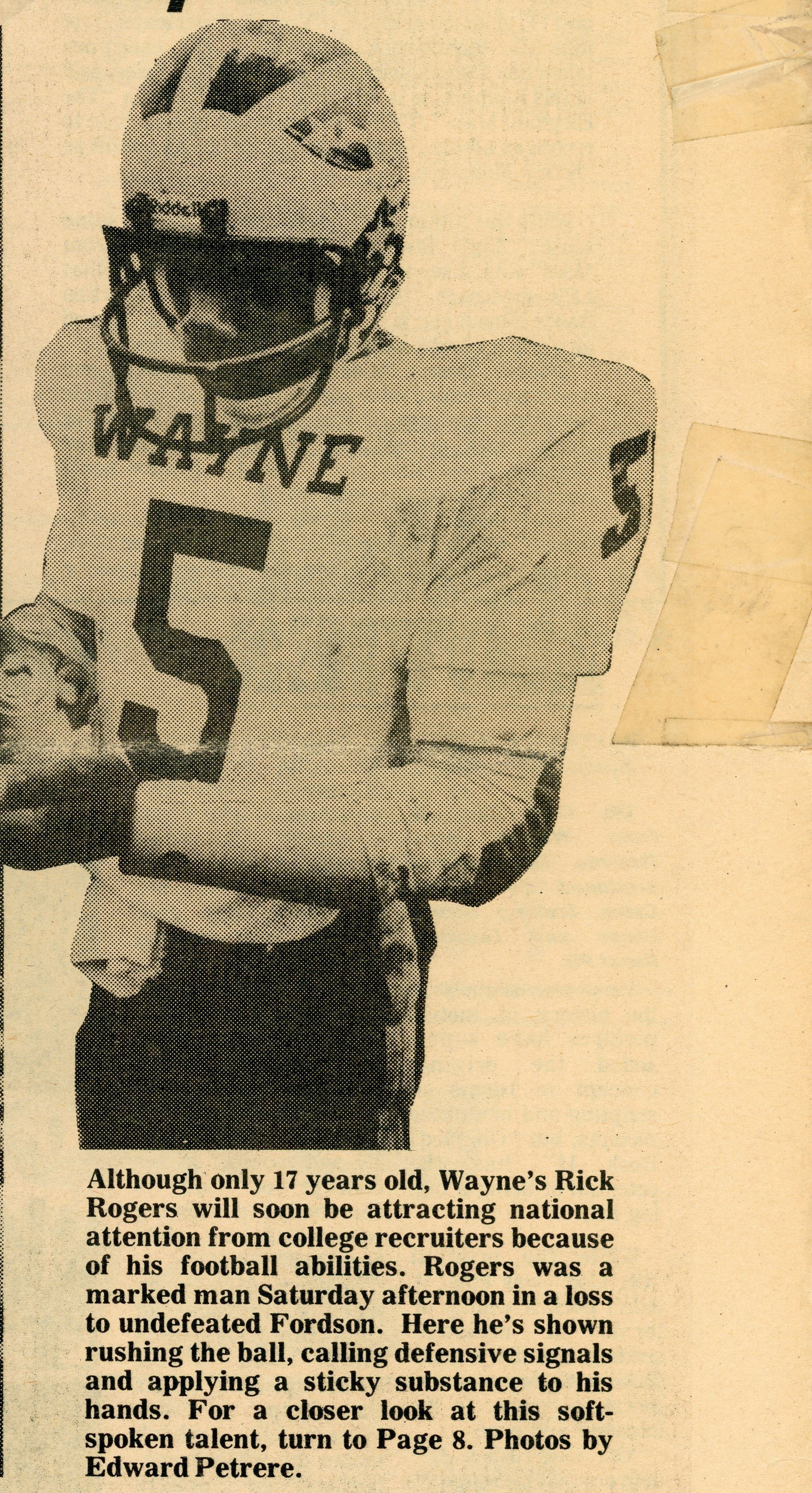 17 year old Wayne Memorial High School Football player Rick Rogers on Oct. 16, 1980.