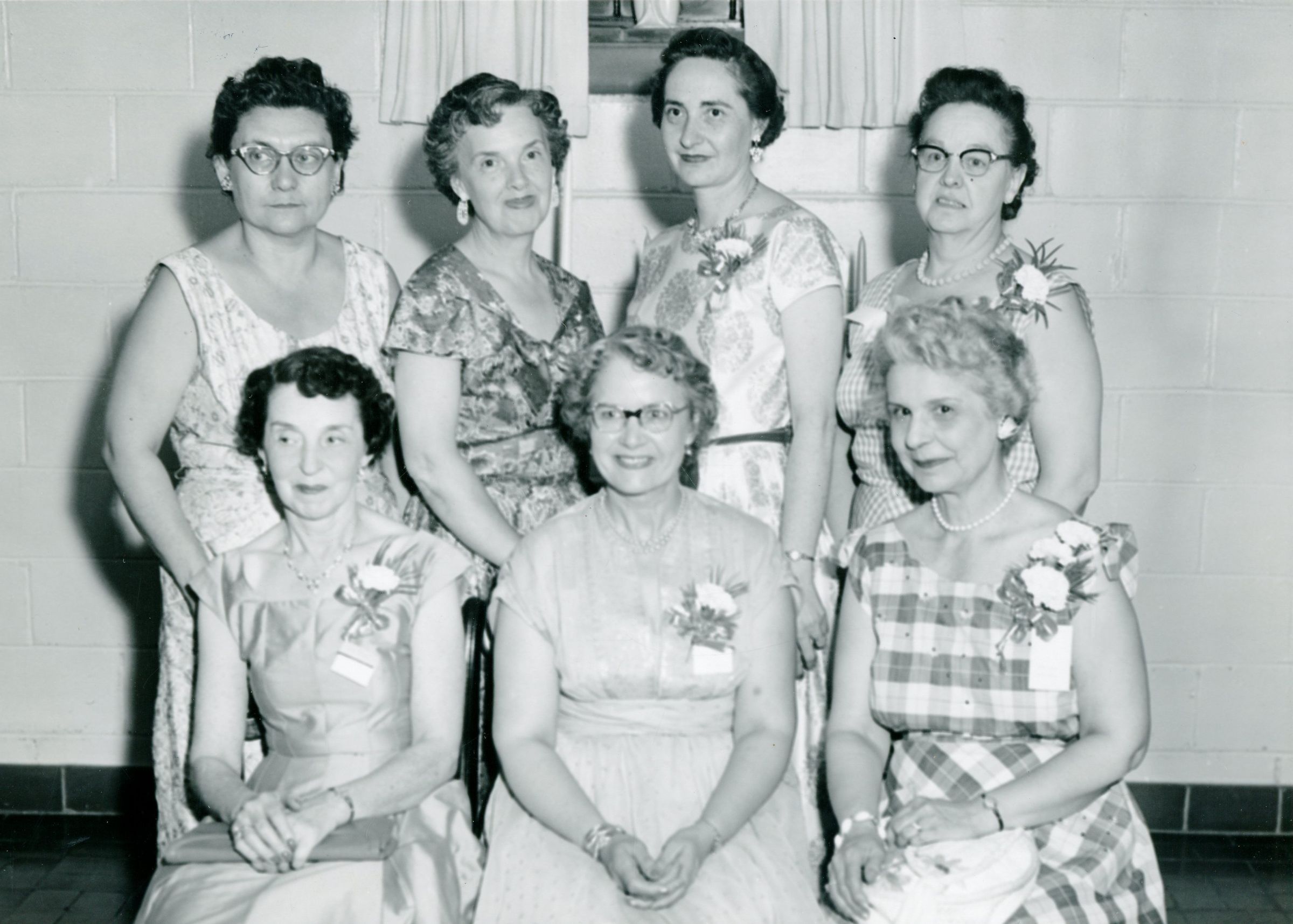 Soroptimist officers. Back Row: Ruth Temple, Mrs. Stein, Violet Collins, Unknown. Front Row: Vera Bunnell, Mrs. Emerson Collins, Unknown
