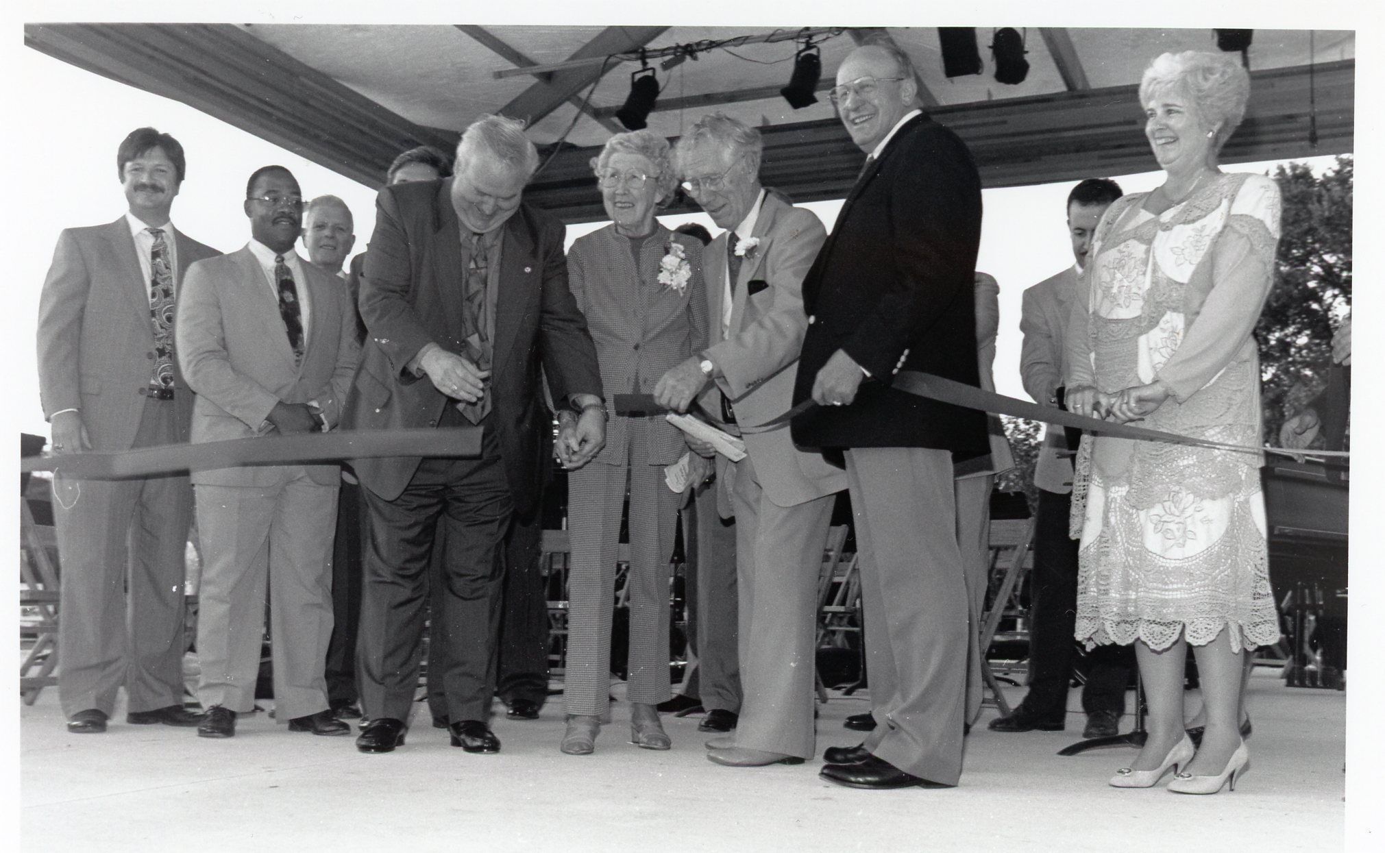 Hank Goudy cutting the ribbon for amphitheater 1992