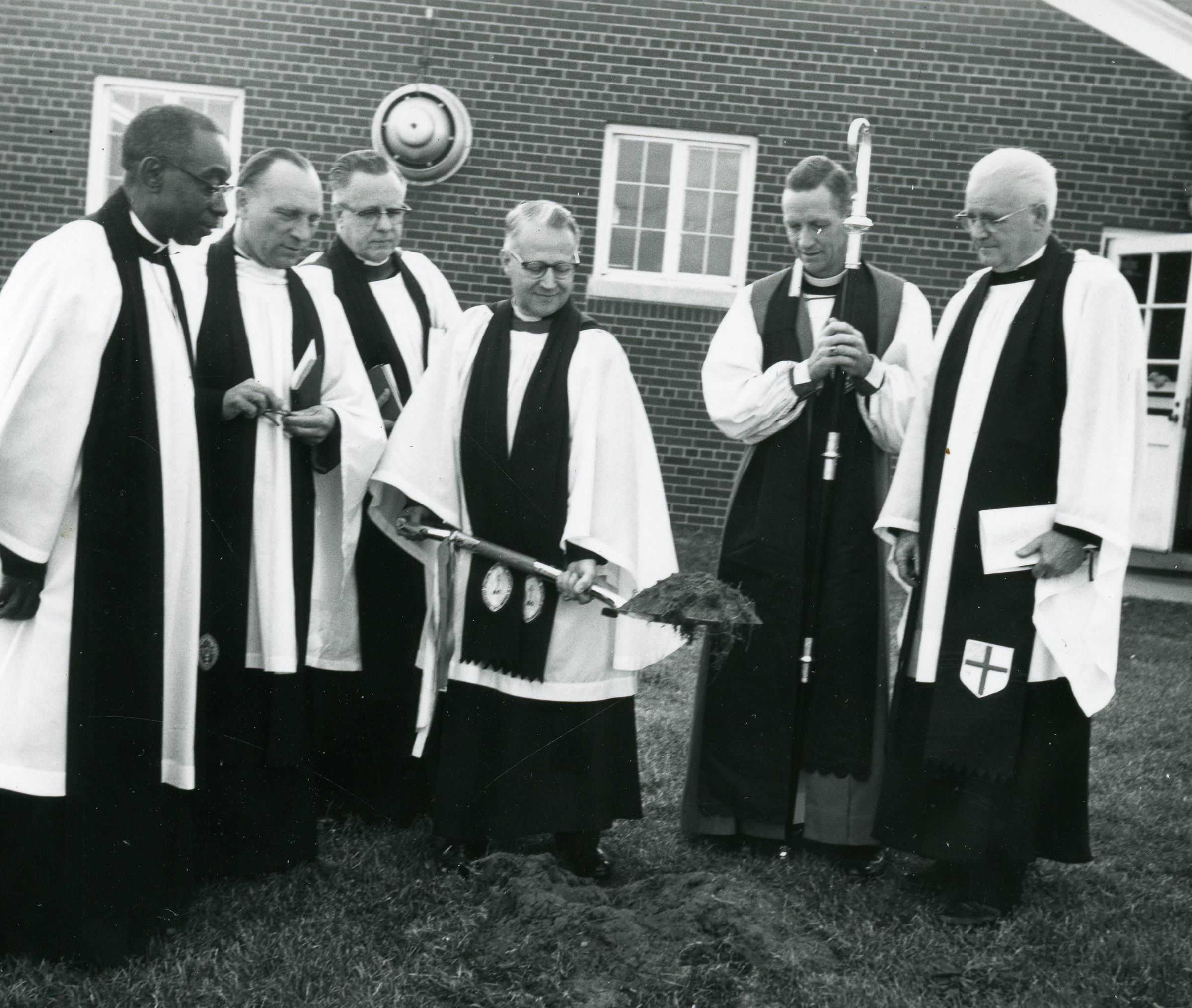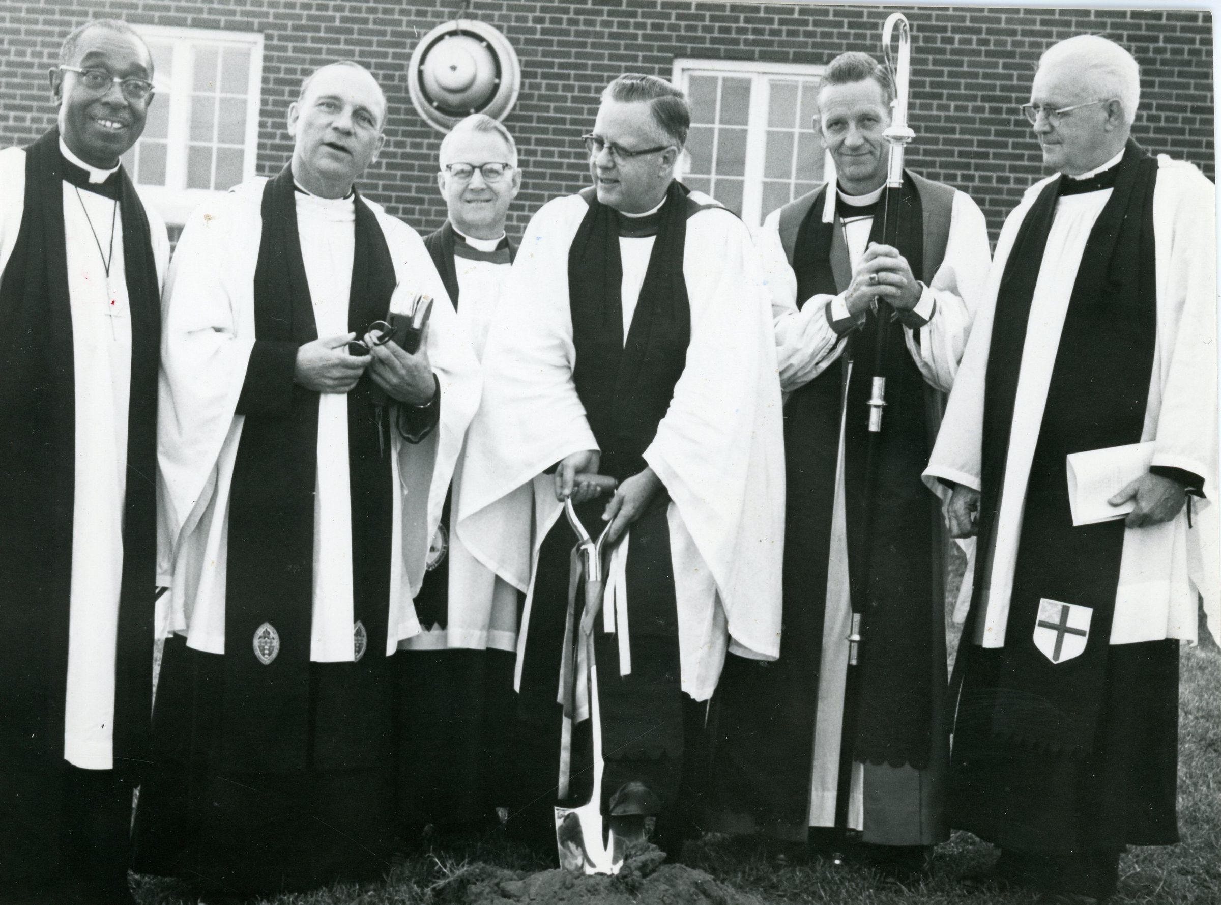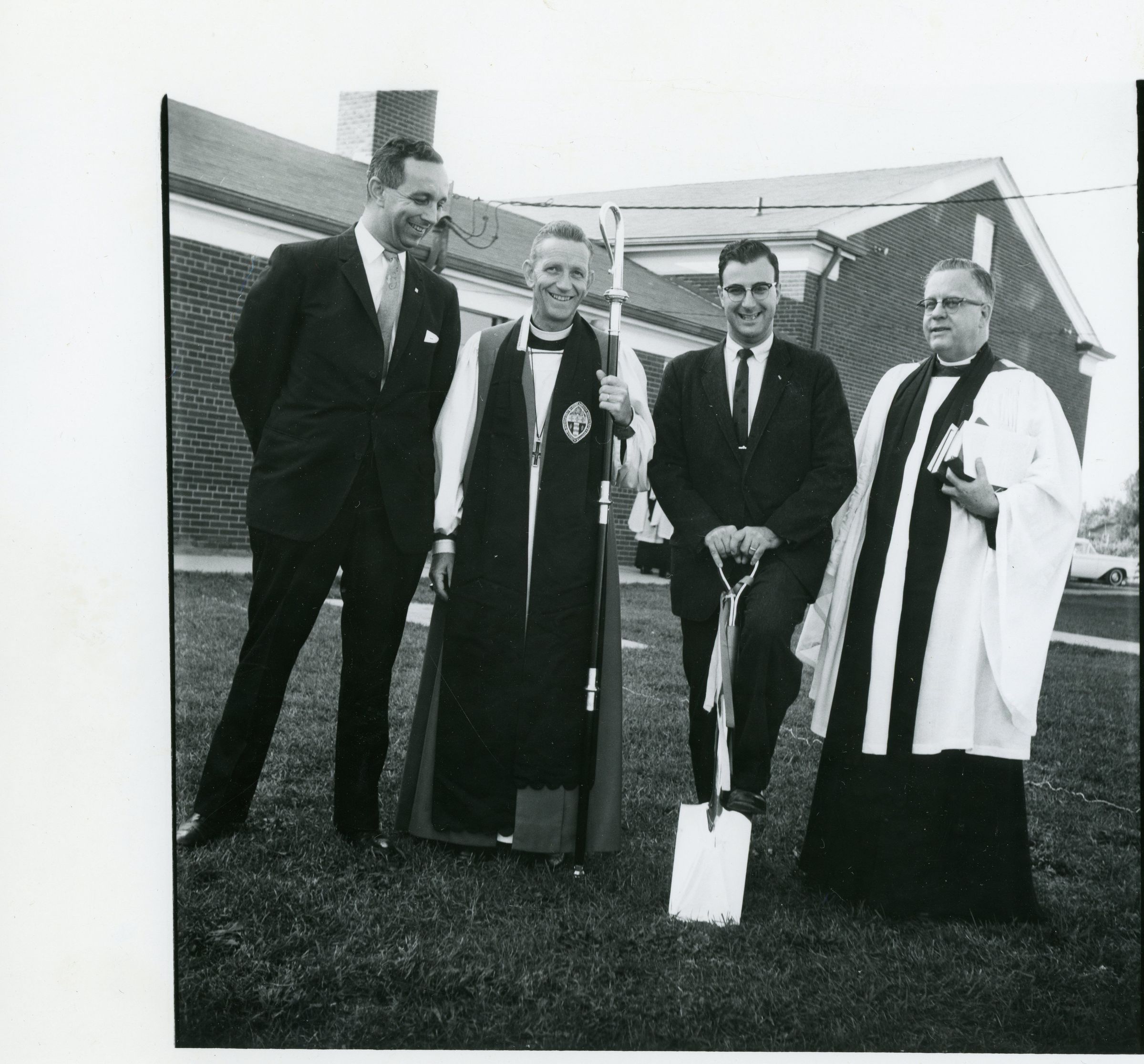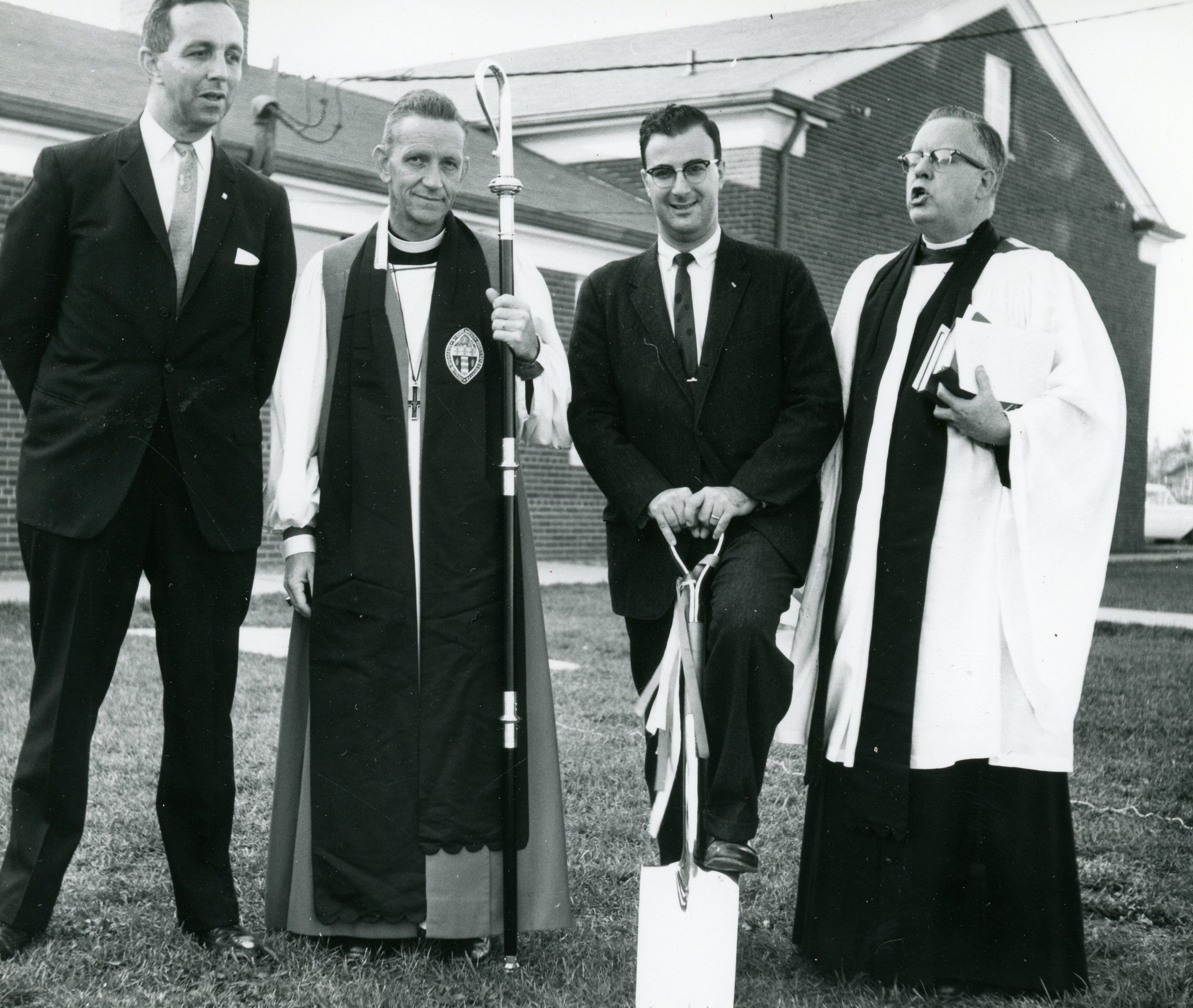 New St. Johns Episcopal Church. 555 S Wayne Rd, Westland. Fred Button, Bishop Robert Dewitt, Hugh McGlashon, Rev. William Smith. October 1963.Cataloged By