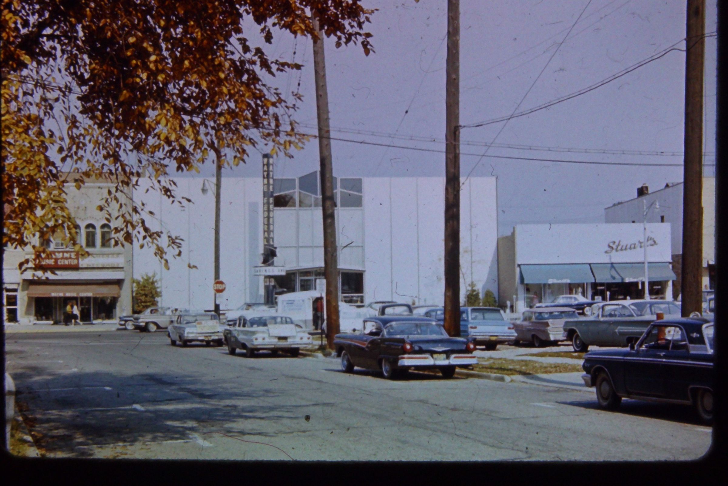 Looking North up Biddle towards Michigan. Wayne Music, Wayne Federal Savings and Loan, Stuarts Visible. During/Post Urban RenewalCataloged By