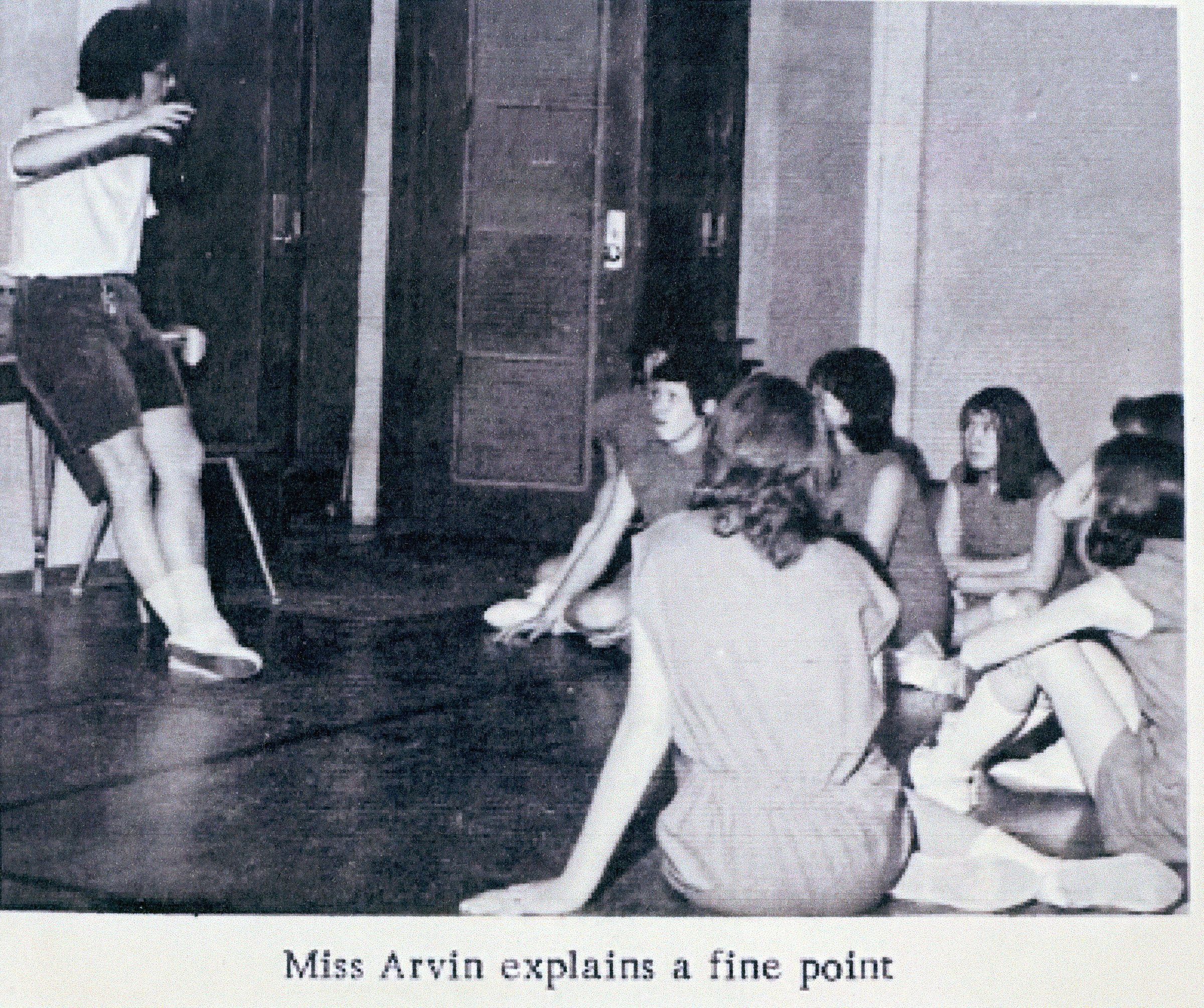 This was the required gym uniform at Benjamin Franklin Jr. High, the photo below is from the 1966 yearbook. Pictured is Donna Arvin, the physical education instructor with a class in uniform.Context