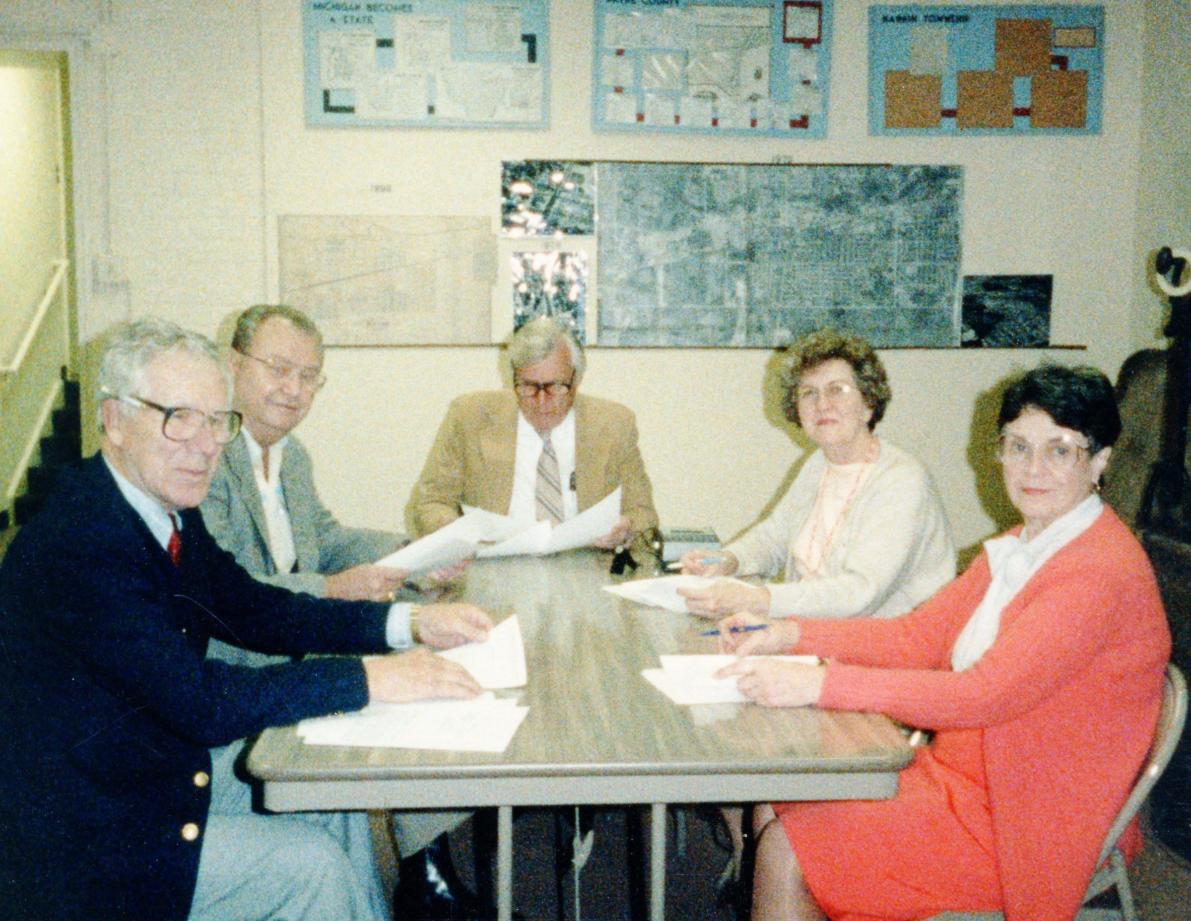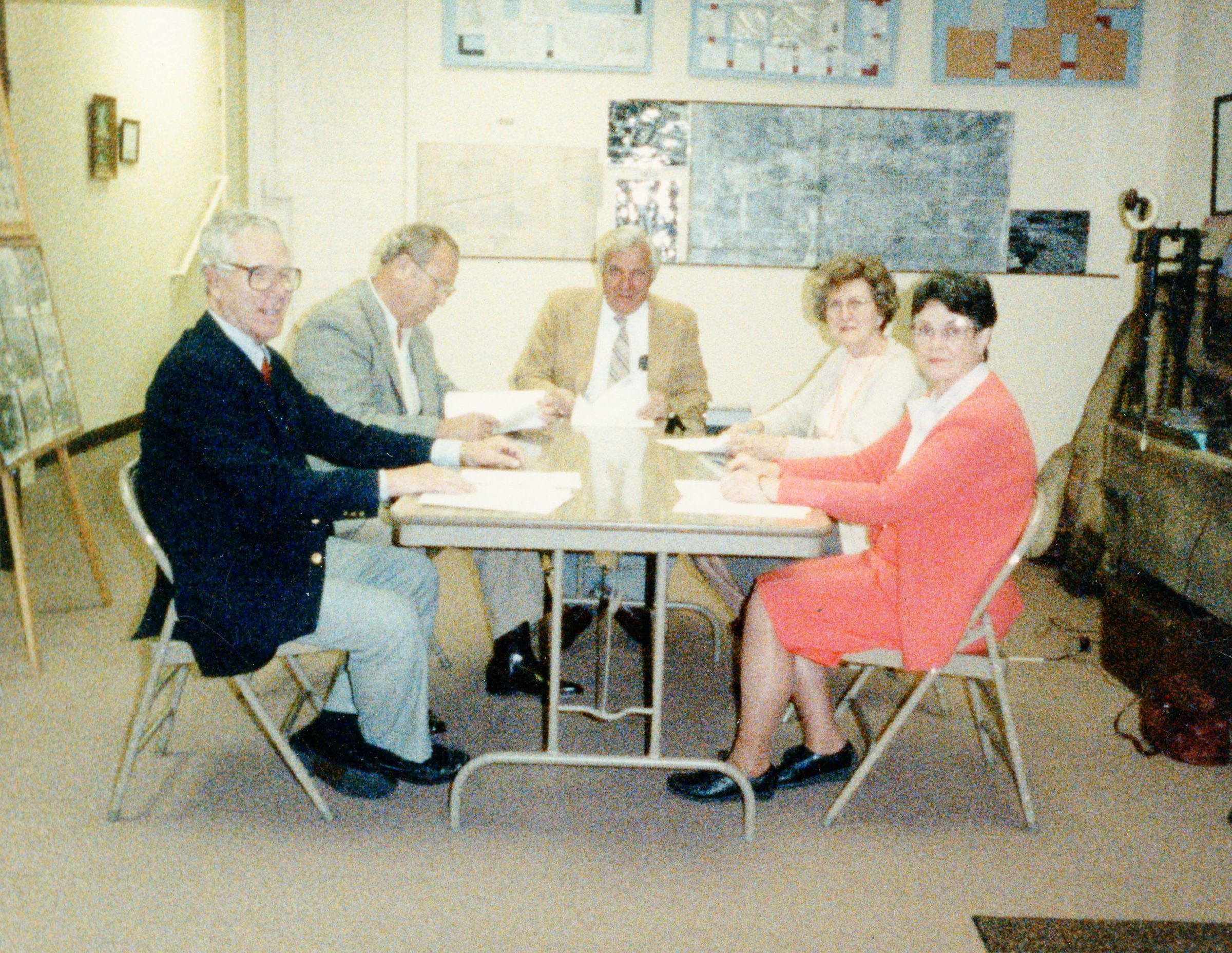 Commission Meeting at the Museum on Oct 7,1988. Left to Right; Henry Goudy (Director), Robert Little, James Doletzky, Elsie Fulford and Virginia Presson.Cataloged By