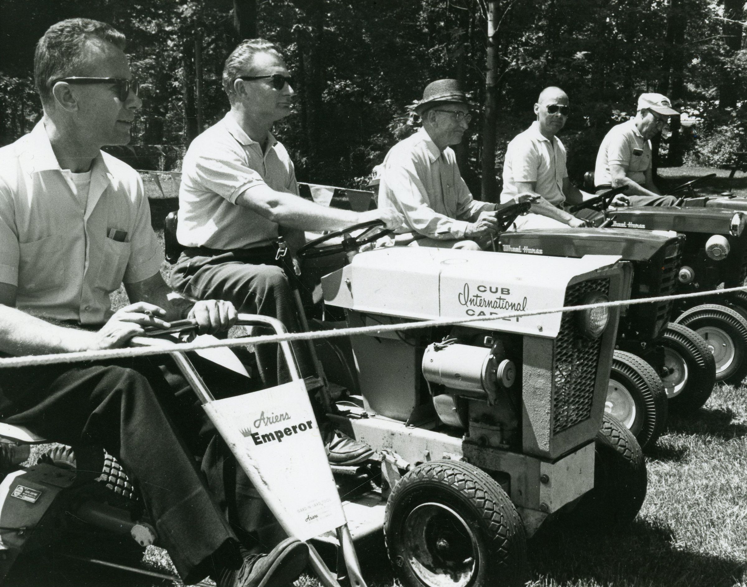 Rotary Club Members on Tractors. From Left to Right. D. Butler, Bill Grove, Bill D., M. Tinkham and M. Hawley. Photo taken by "Eagle" on June 21, 1965Cataloged By