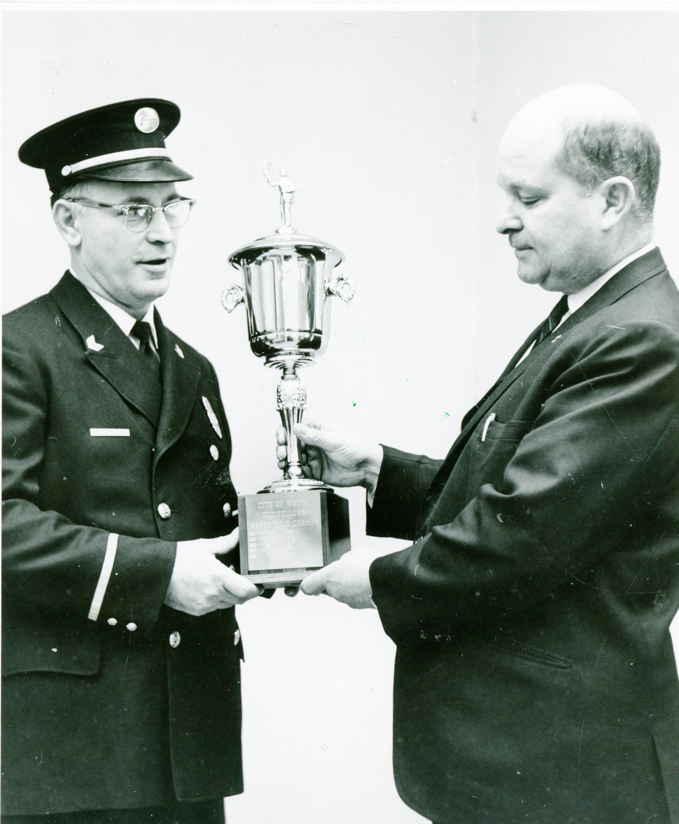 Neil Prieskorn receiving trophy from Judge Seiler. Paper Sale Champs