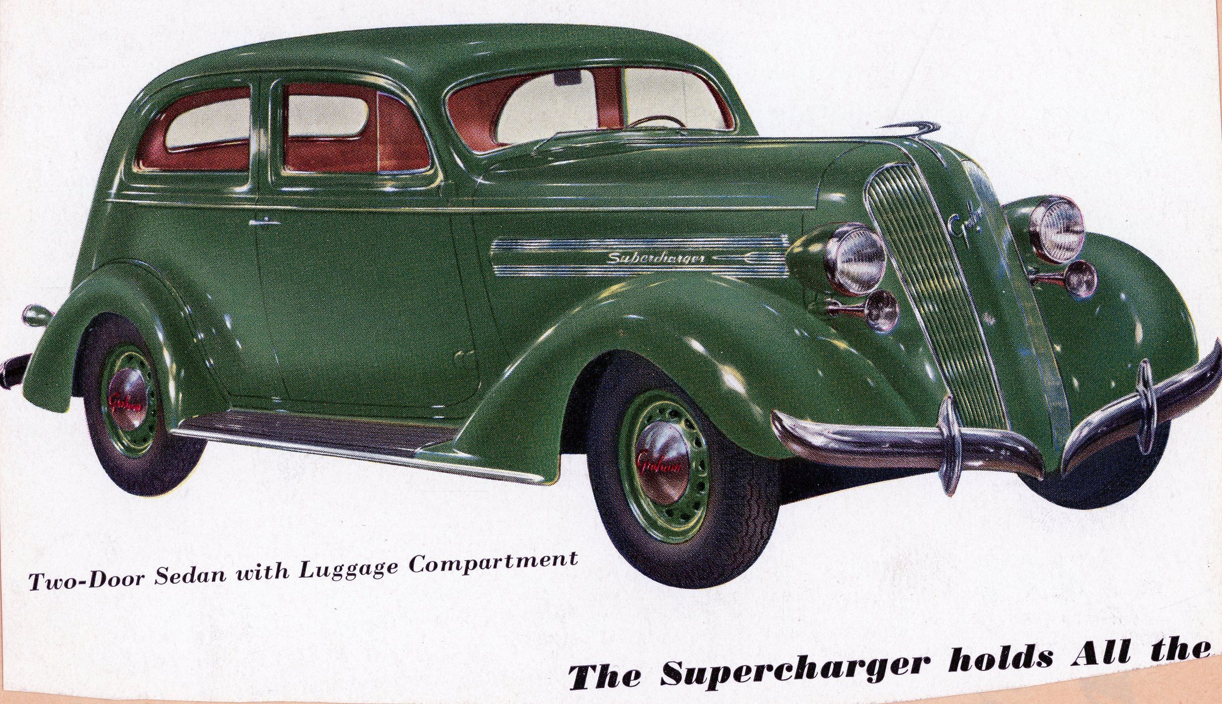 A photocopy of an ad for The Supercharger Two-Door Sedan. This copy dates from 1935.