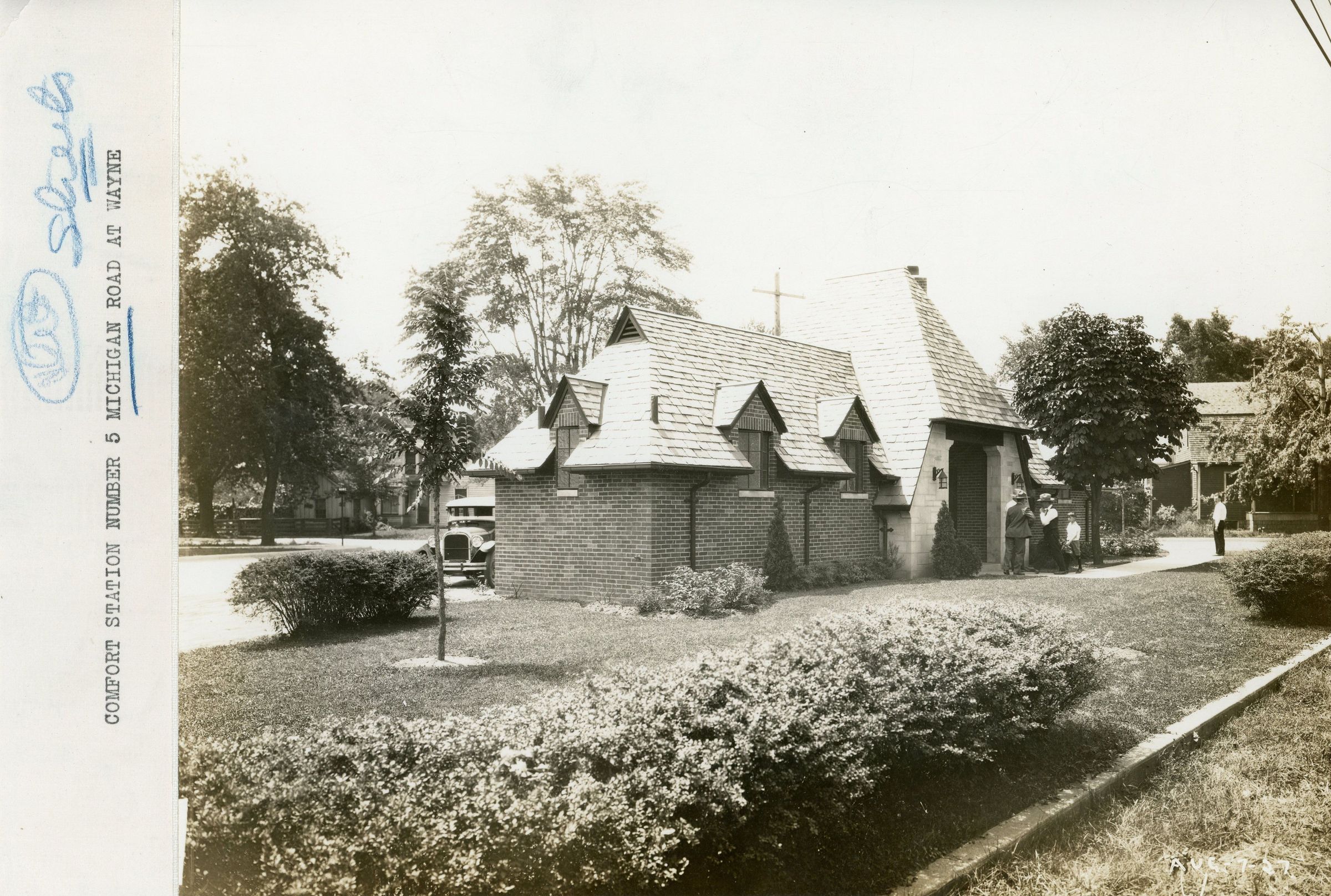 Michigan Avenue Comfort Station #5. Built in the 1920s as public restrooms, it was directly across from St. Marys Church. Unknown when demolished.Cataloged By