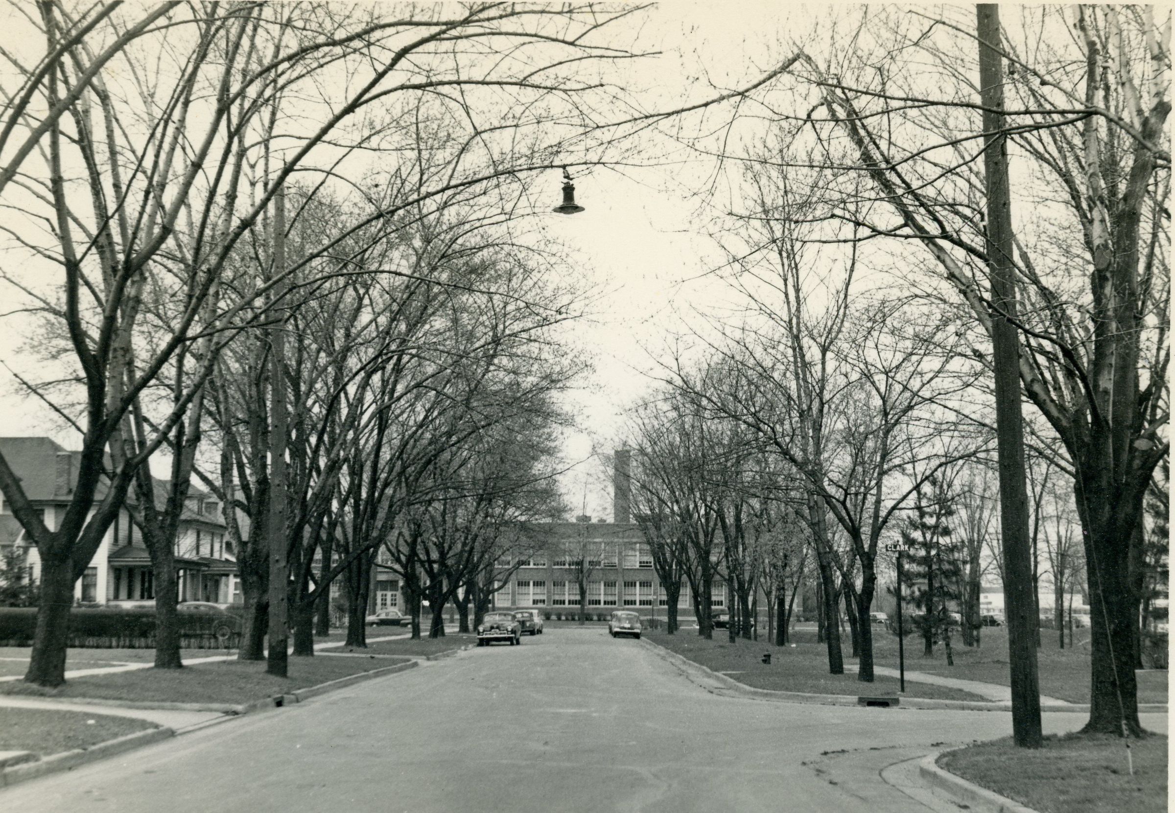 View down Park Street looking west, Wayne High School, Later Westside Jr. high, Board of Education Offices at end of street.