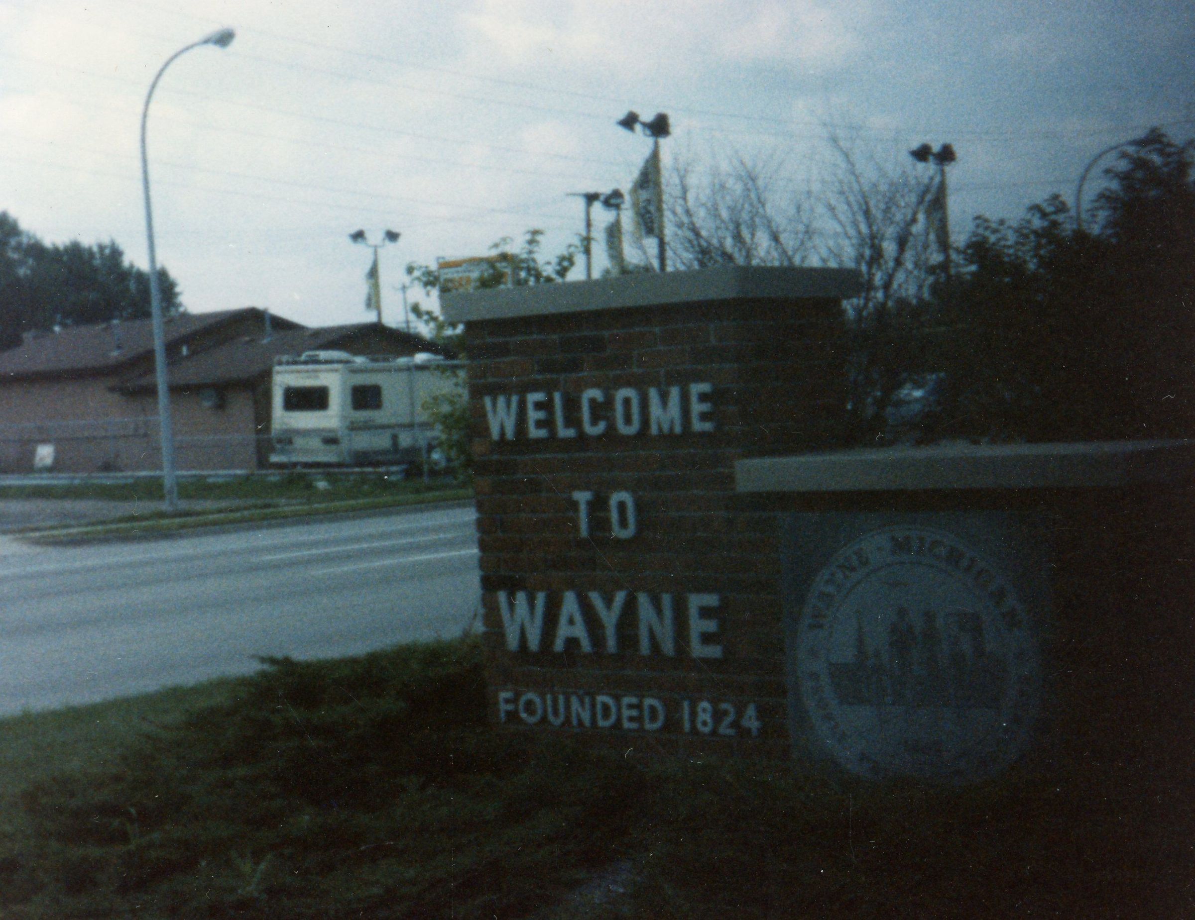 Welcome to Wayne Sign, East end at Merriman. Late 1980s.