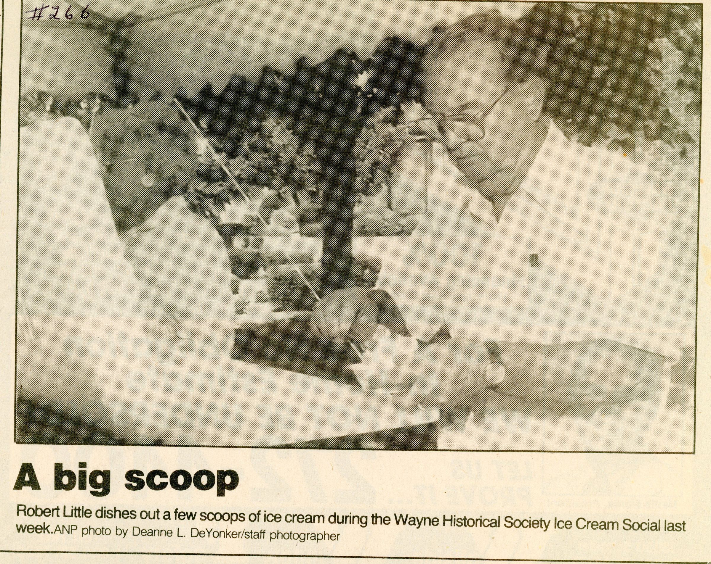 July 25, 1991 Wayne Historical Society Ice Cream Social at 2-5 PM.