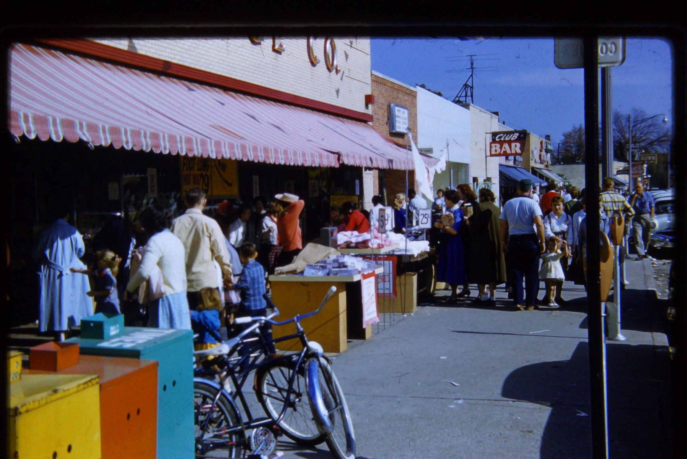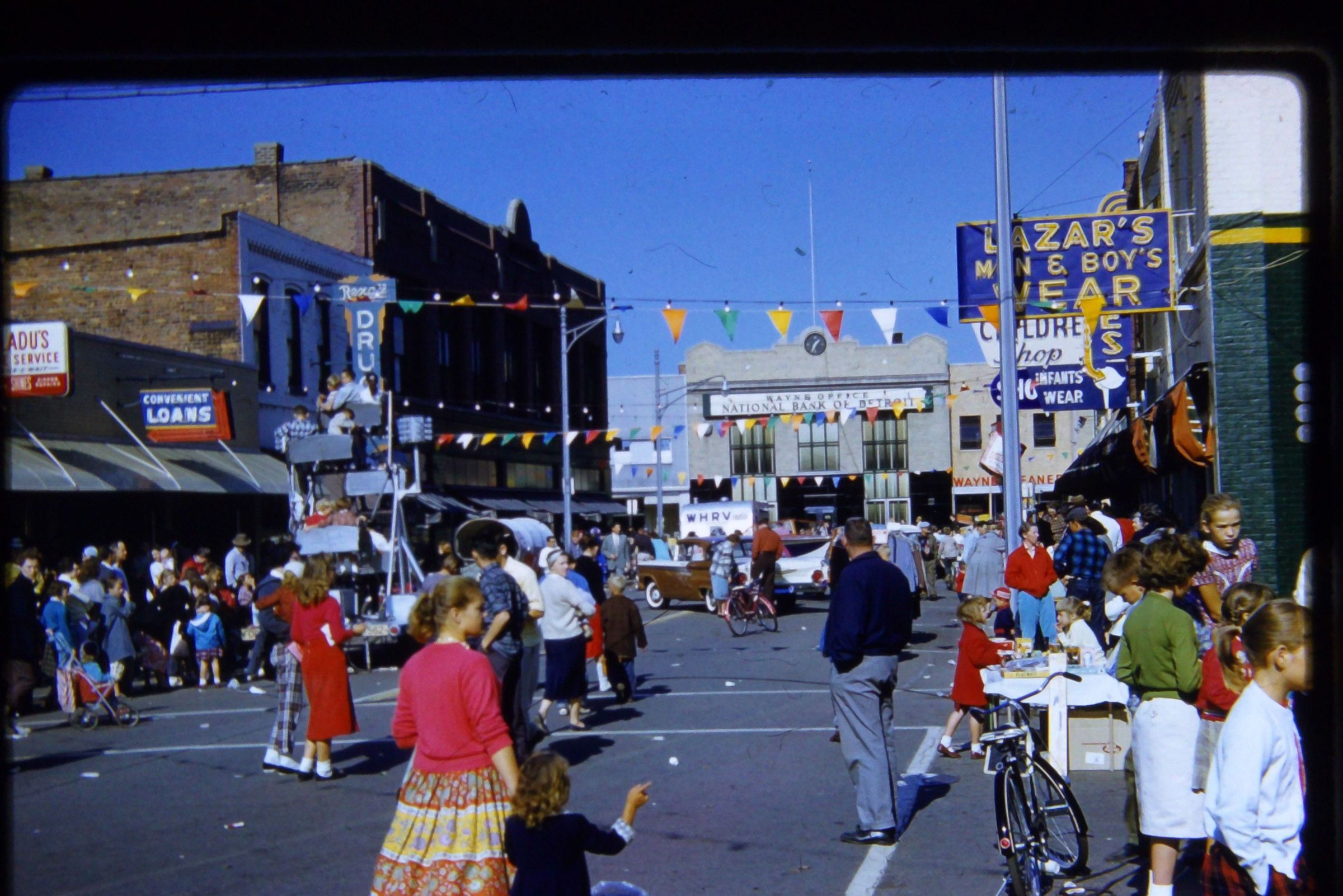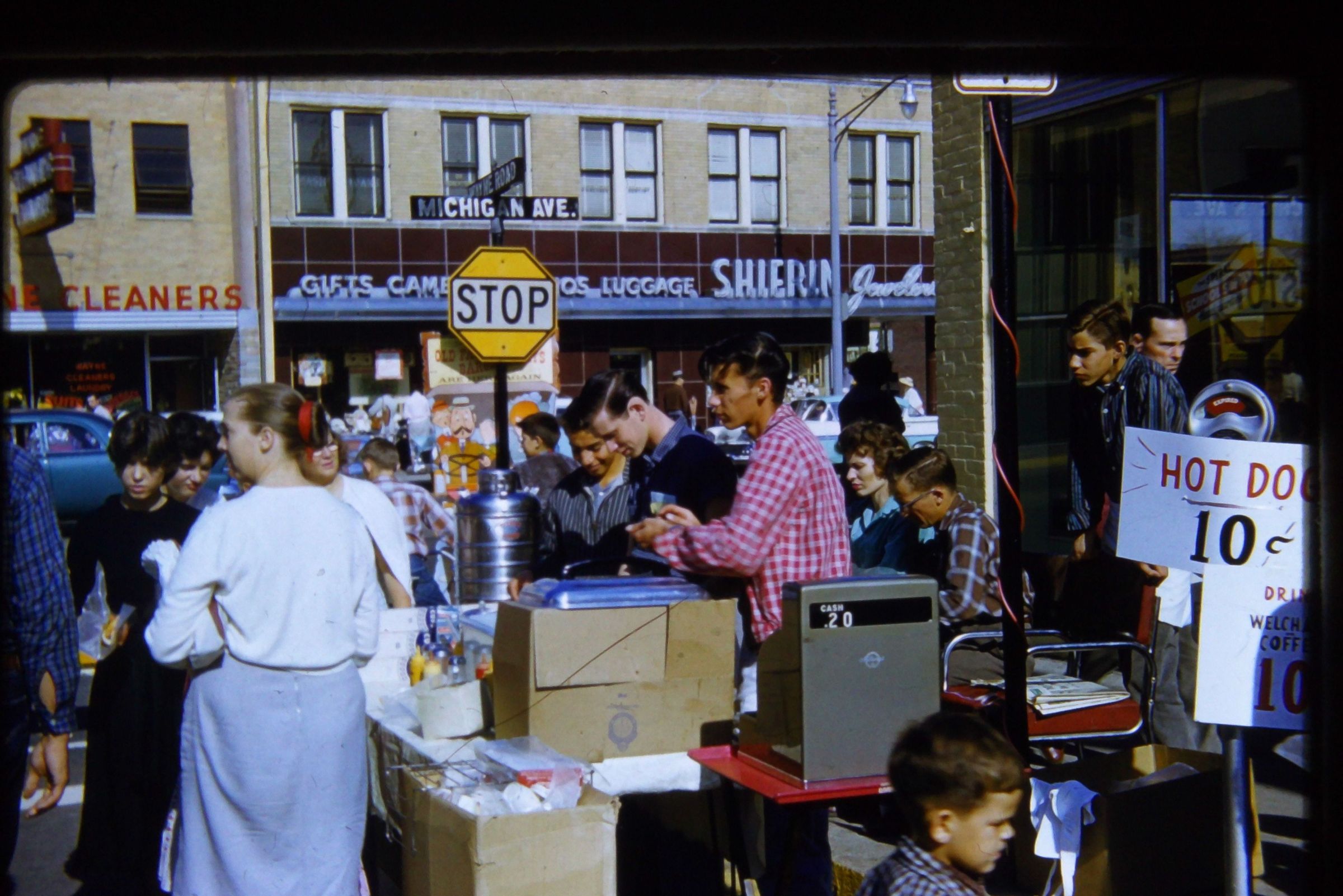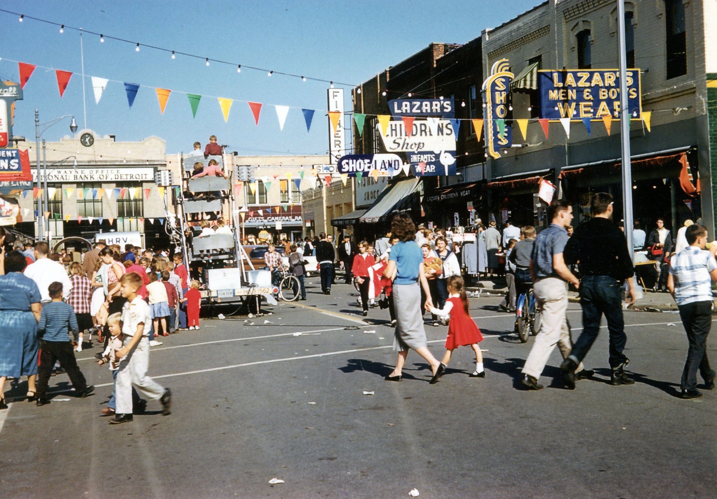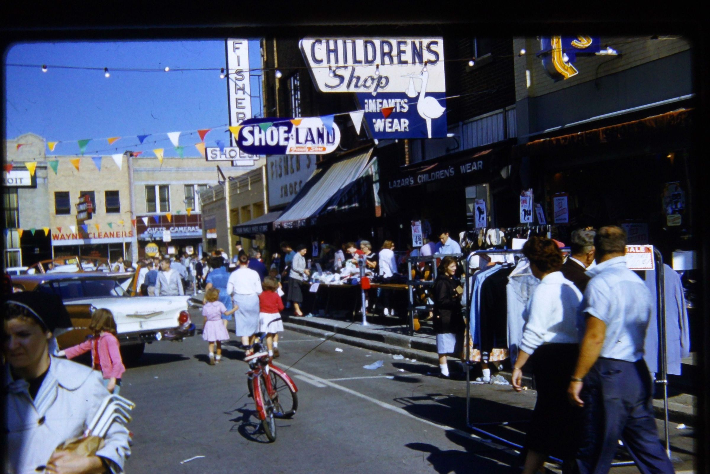 Sidewalk Sales Monroe Street. Lazars, Rexall drugs visible