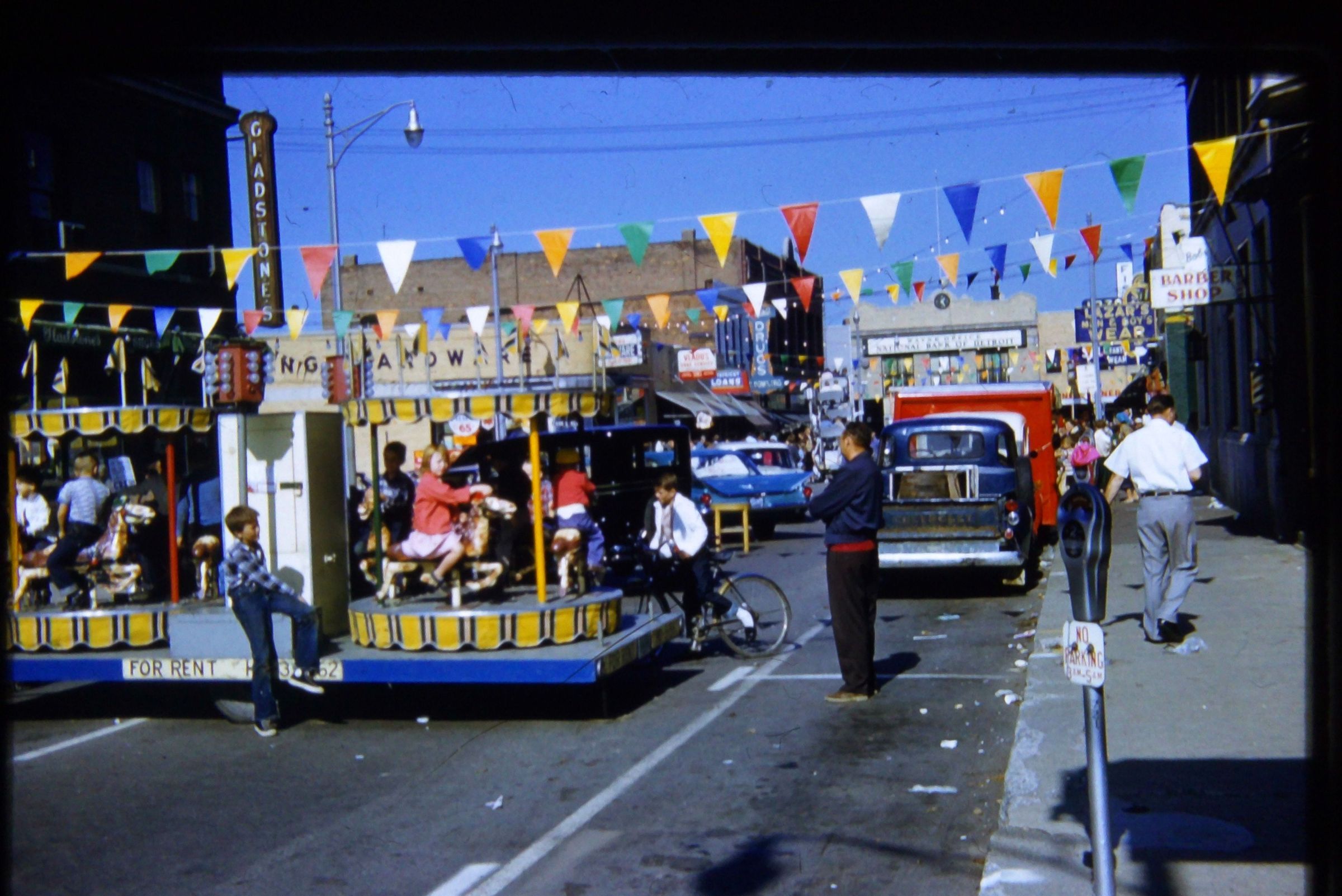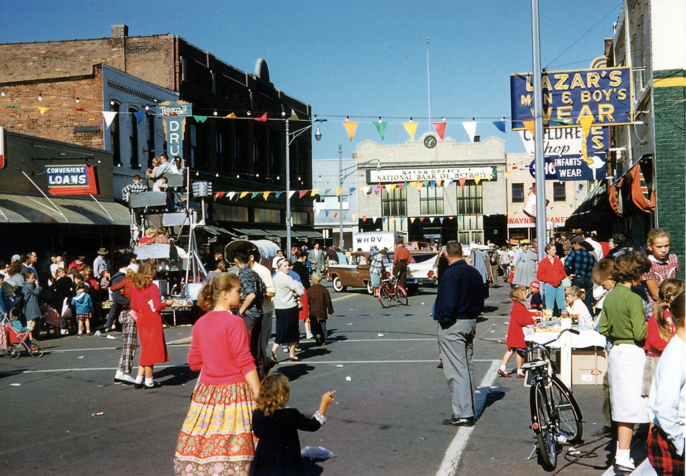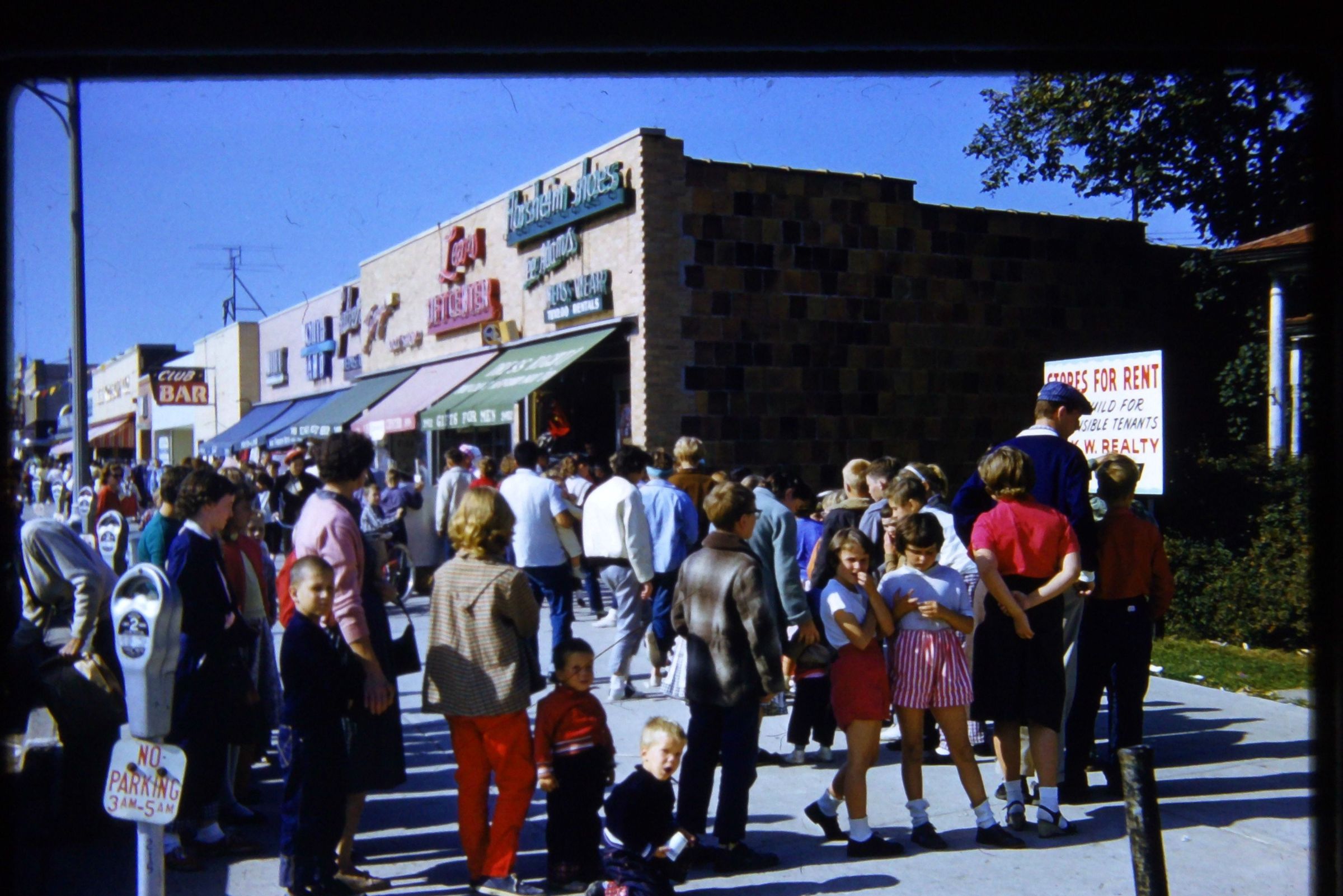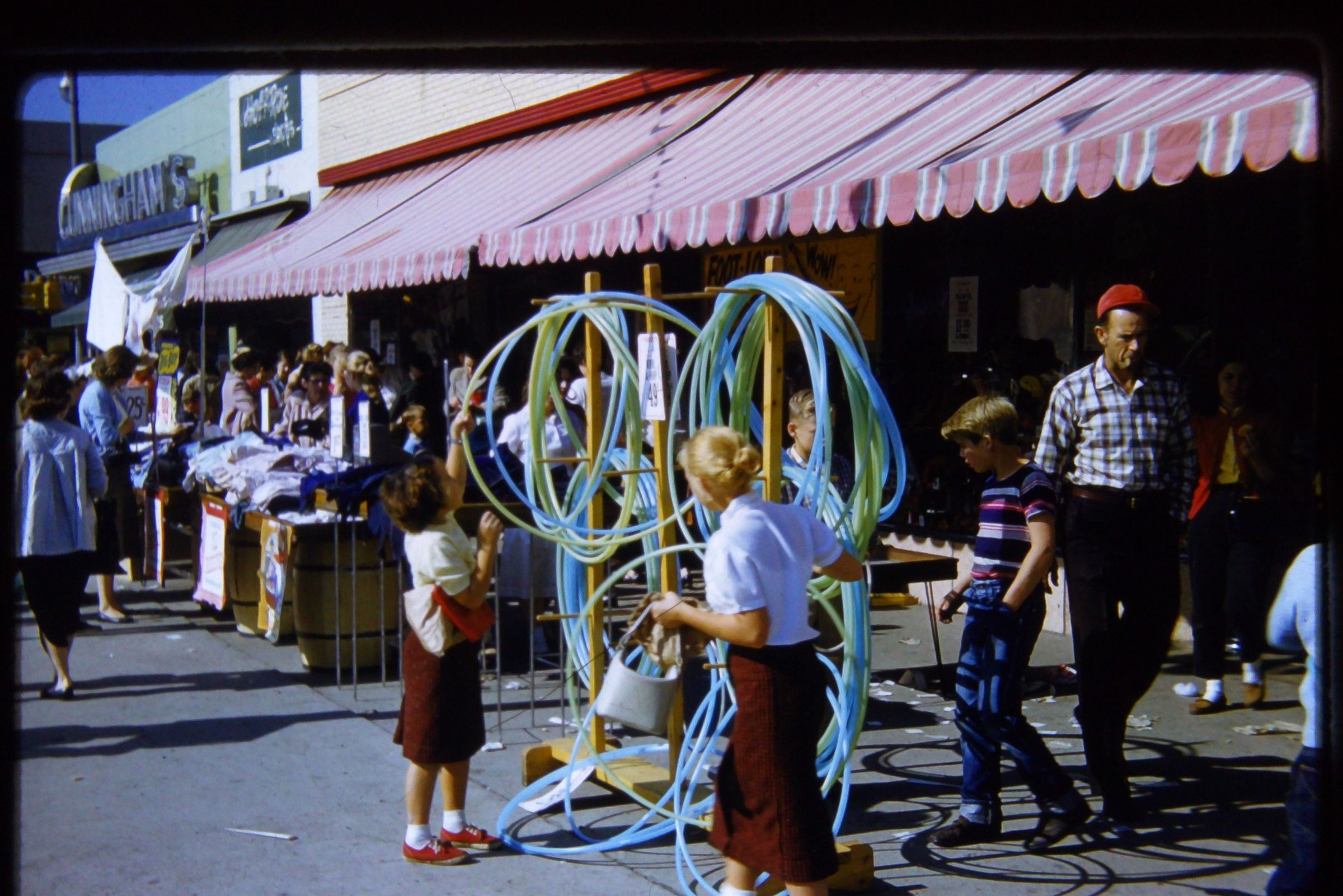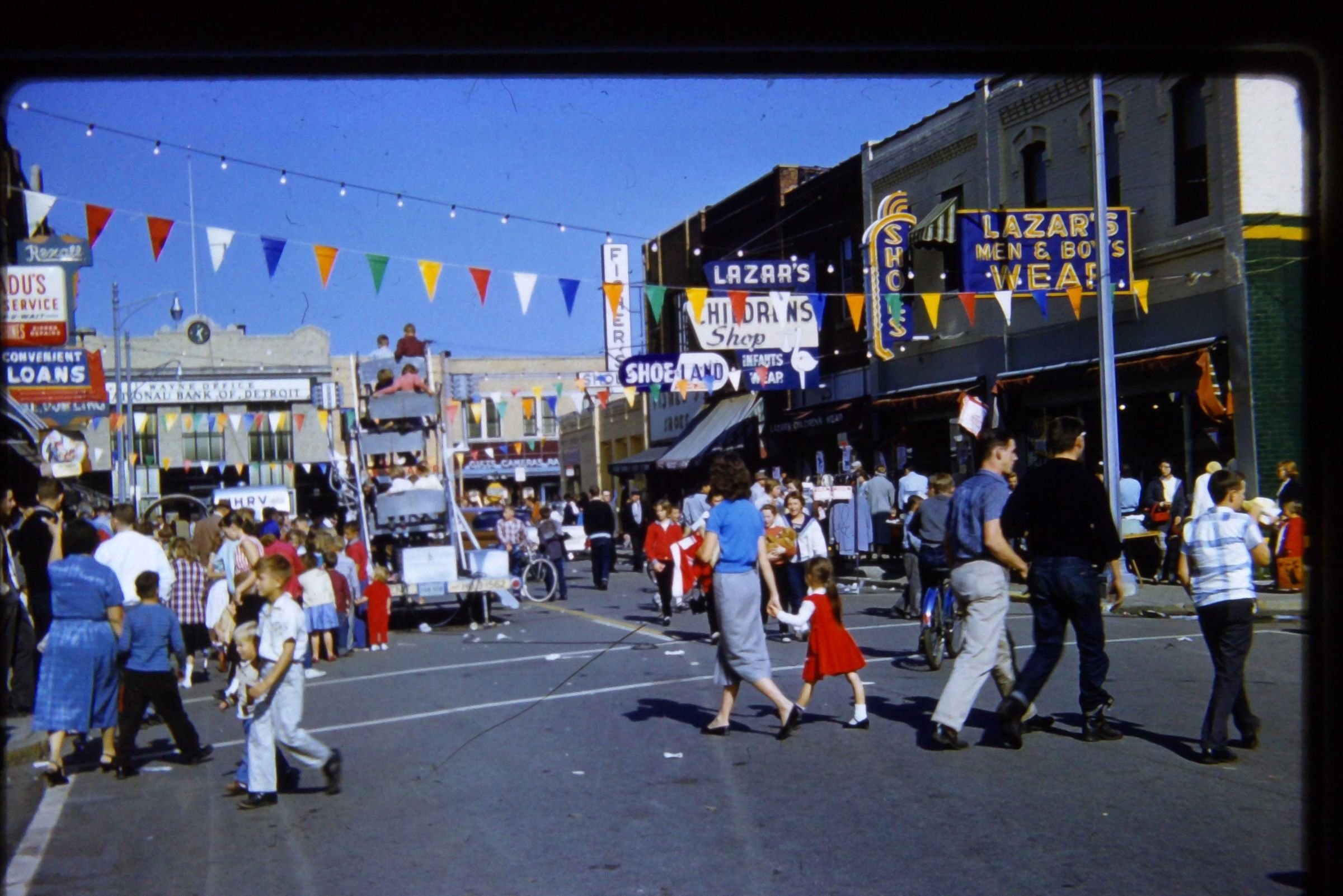 Sidewalk Sales Monroe Street. Lazars, Rexall drugs visible