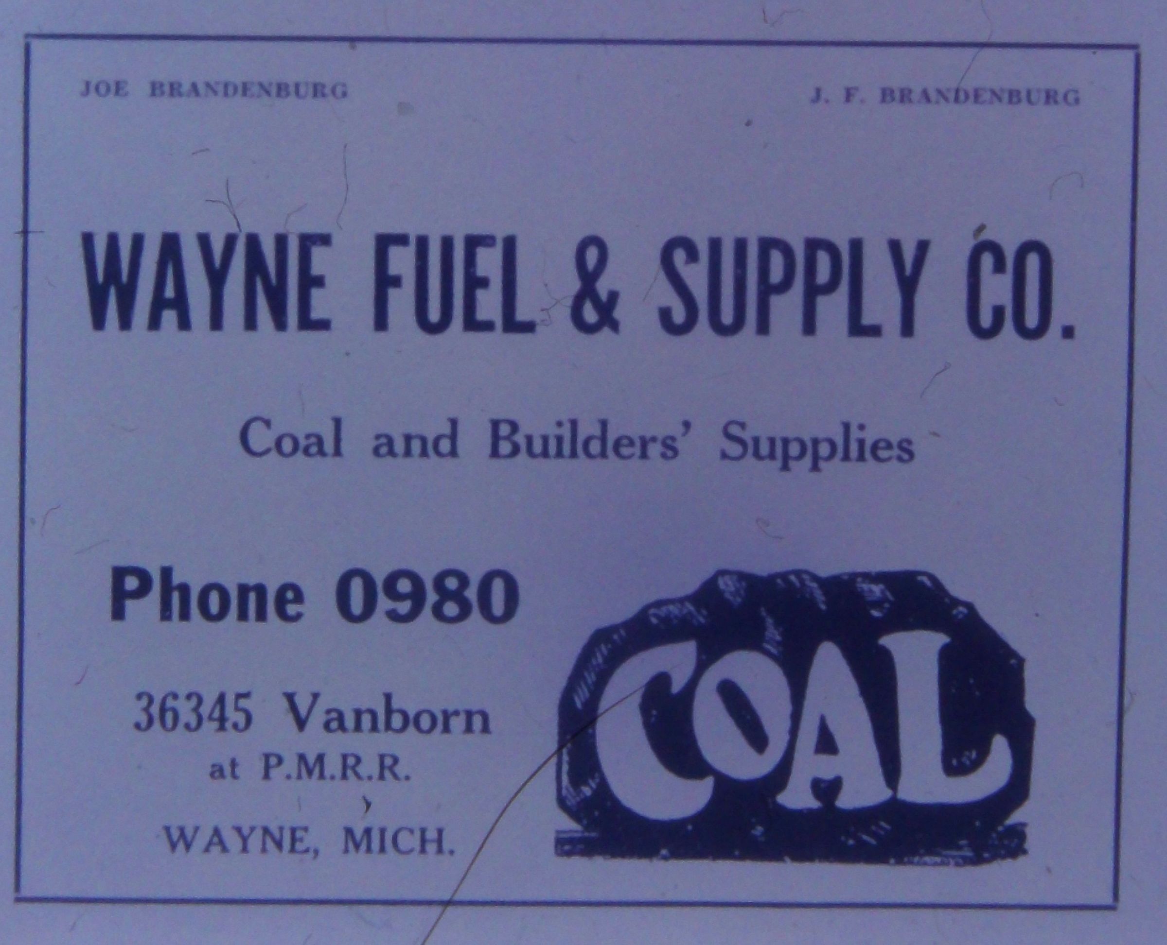 36345 VanBorn - Wayne Fuel and Supply Co. Coal and Building Supplies. Joe Brandenburg and J.F. Brandenburg