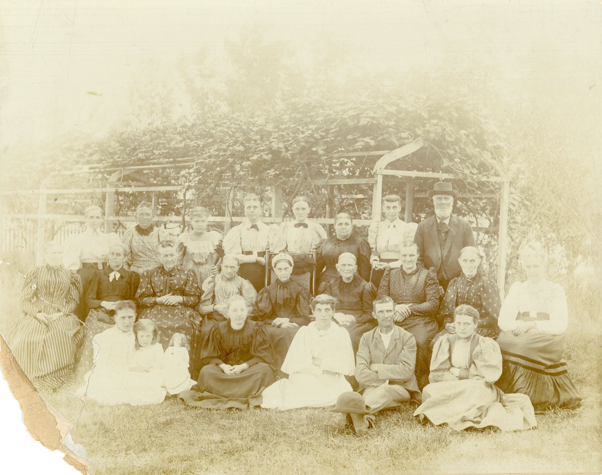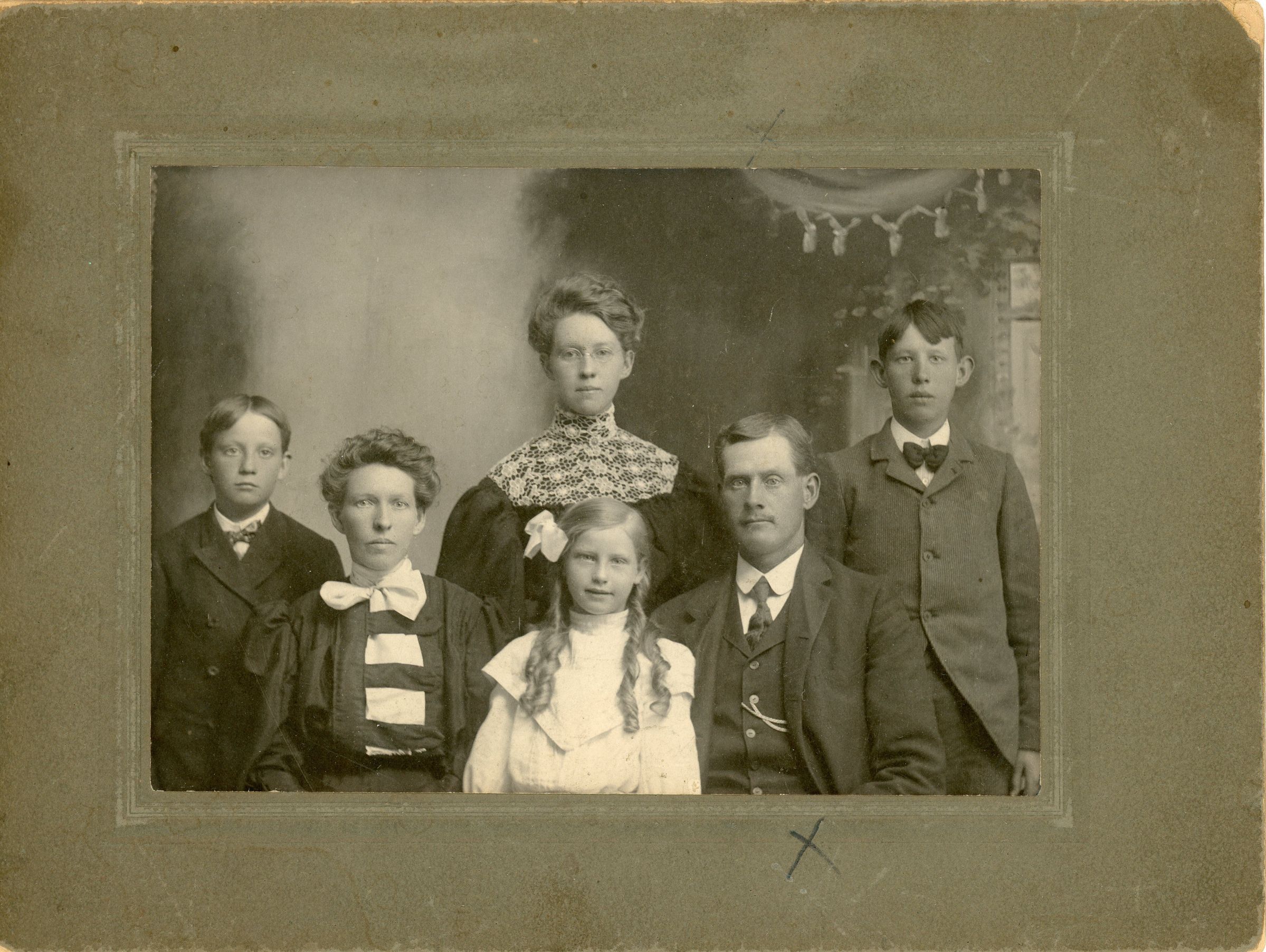 The Ganong Family of the Ganong Cemetery at 3036 Henry Ruff Rd. of Westland, Michigan 48186. The line up in the Ganong Family portrait, William Daniel Ganong, Isabelle Marie Ganong, Lola Jane Ganong, Floyd William Ganong, Glenn Adelbert Gang and Irene Elizabeth Ganong in front.Cataloged By