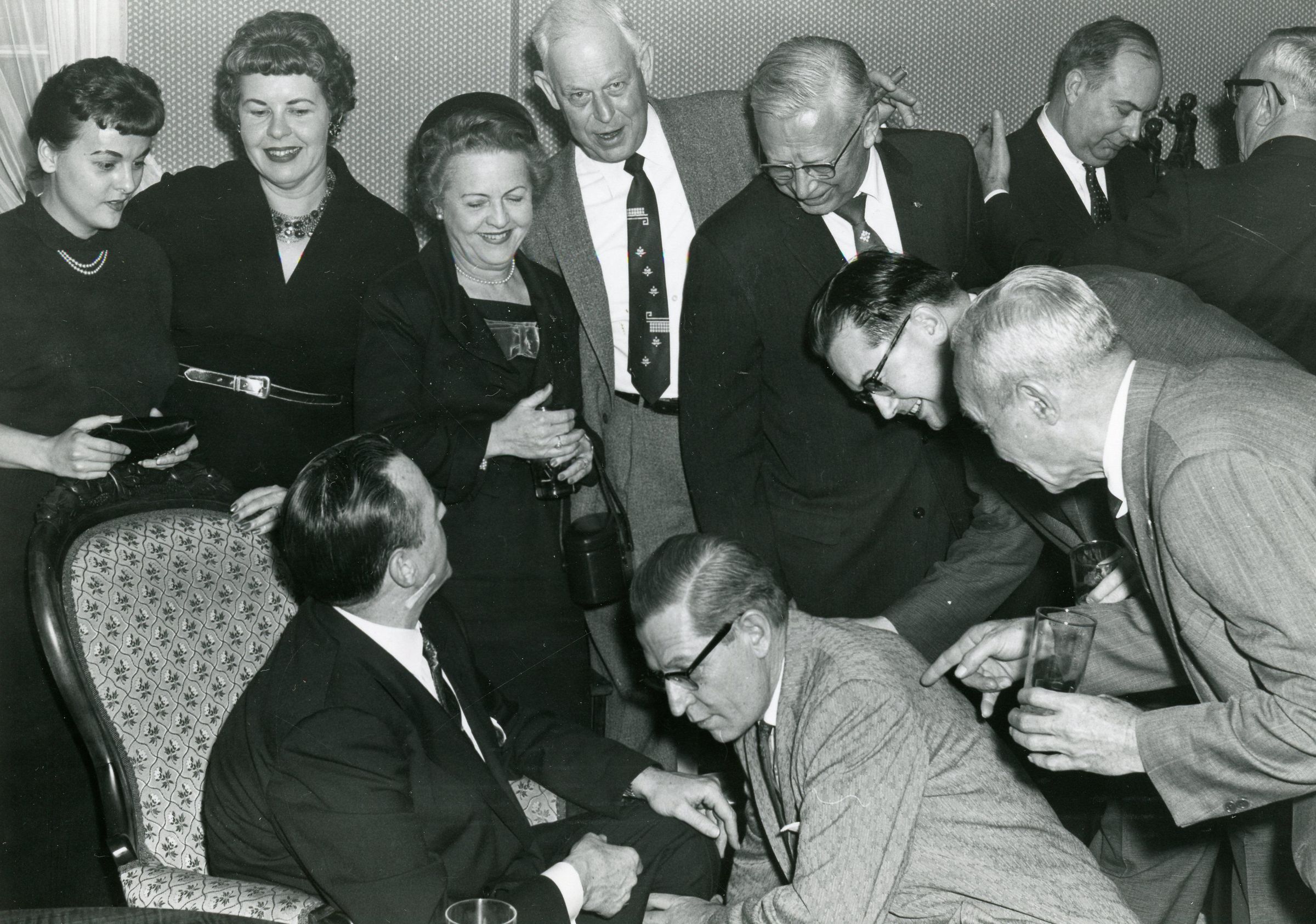 Rotary Club Members in Back Row 3rd from Left is Sue Snyder, 5th from Left is Verne Snyder and 6th from Left is Keith Millar. At Very Front of photo in 2nd from Left is Bill Mast. Photo taken by Lothar E. Konietzko for "Staff Photo Associated Newpapers, Inc".Cataloged By