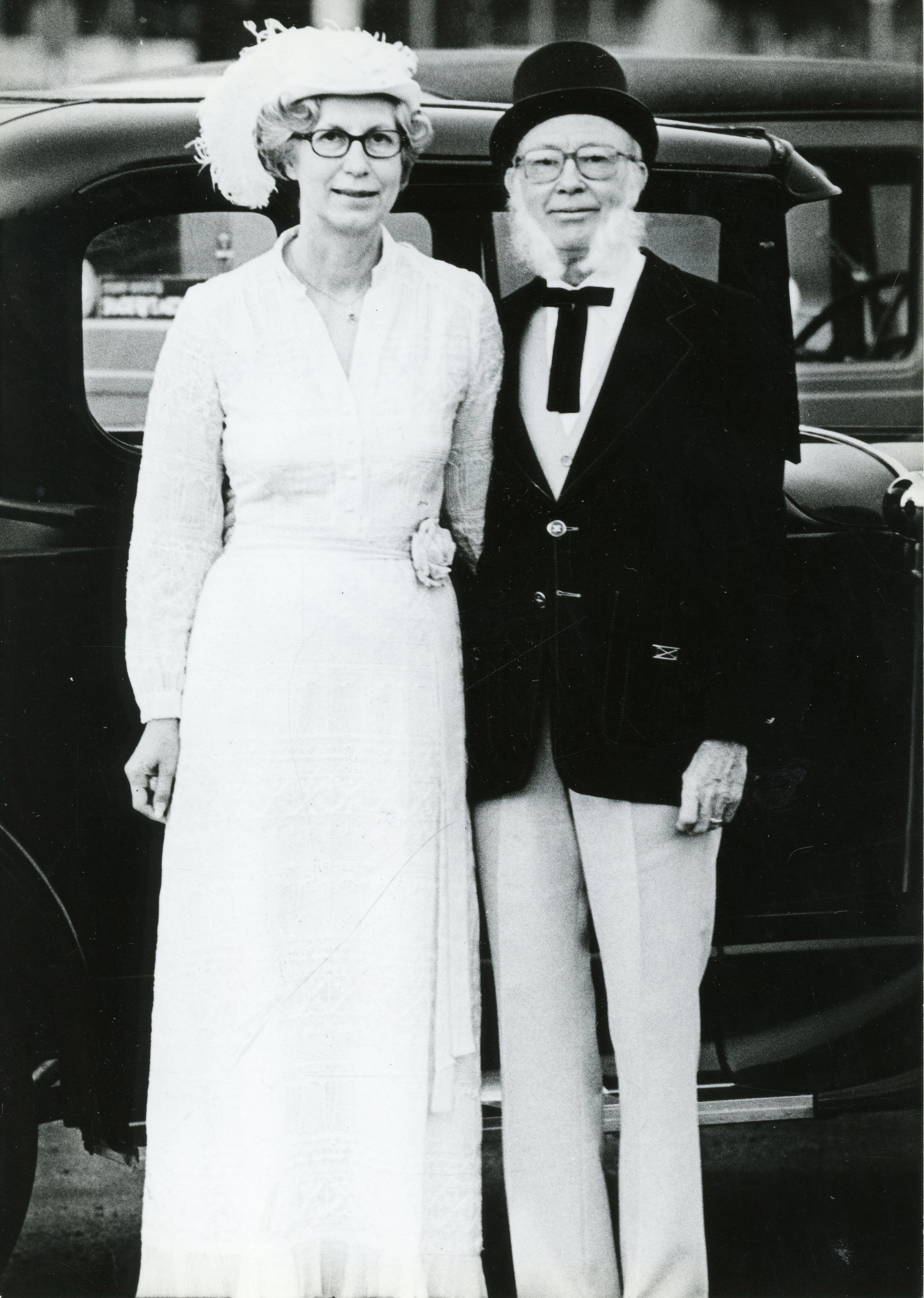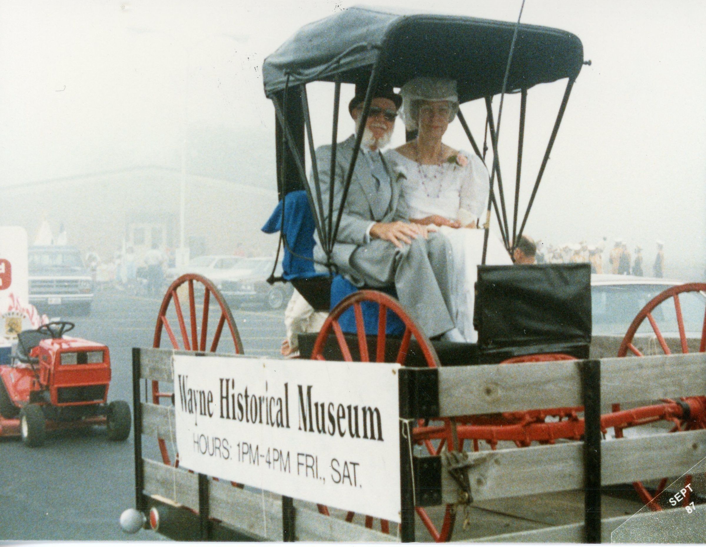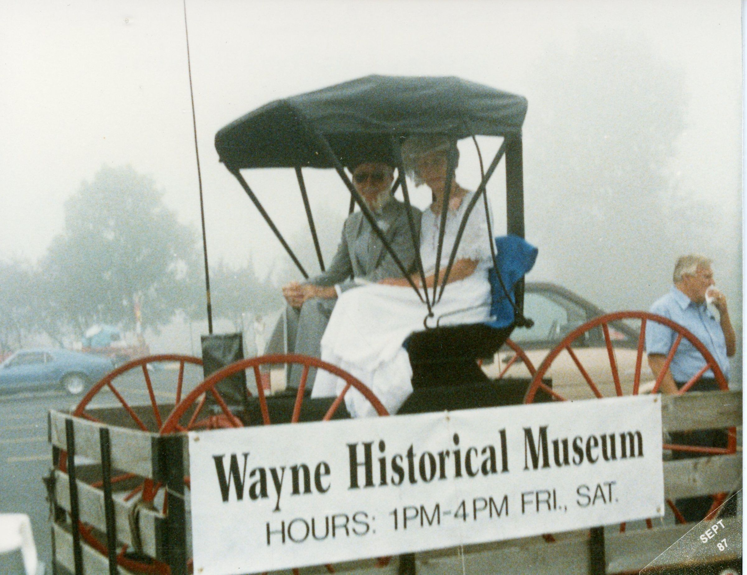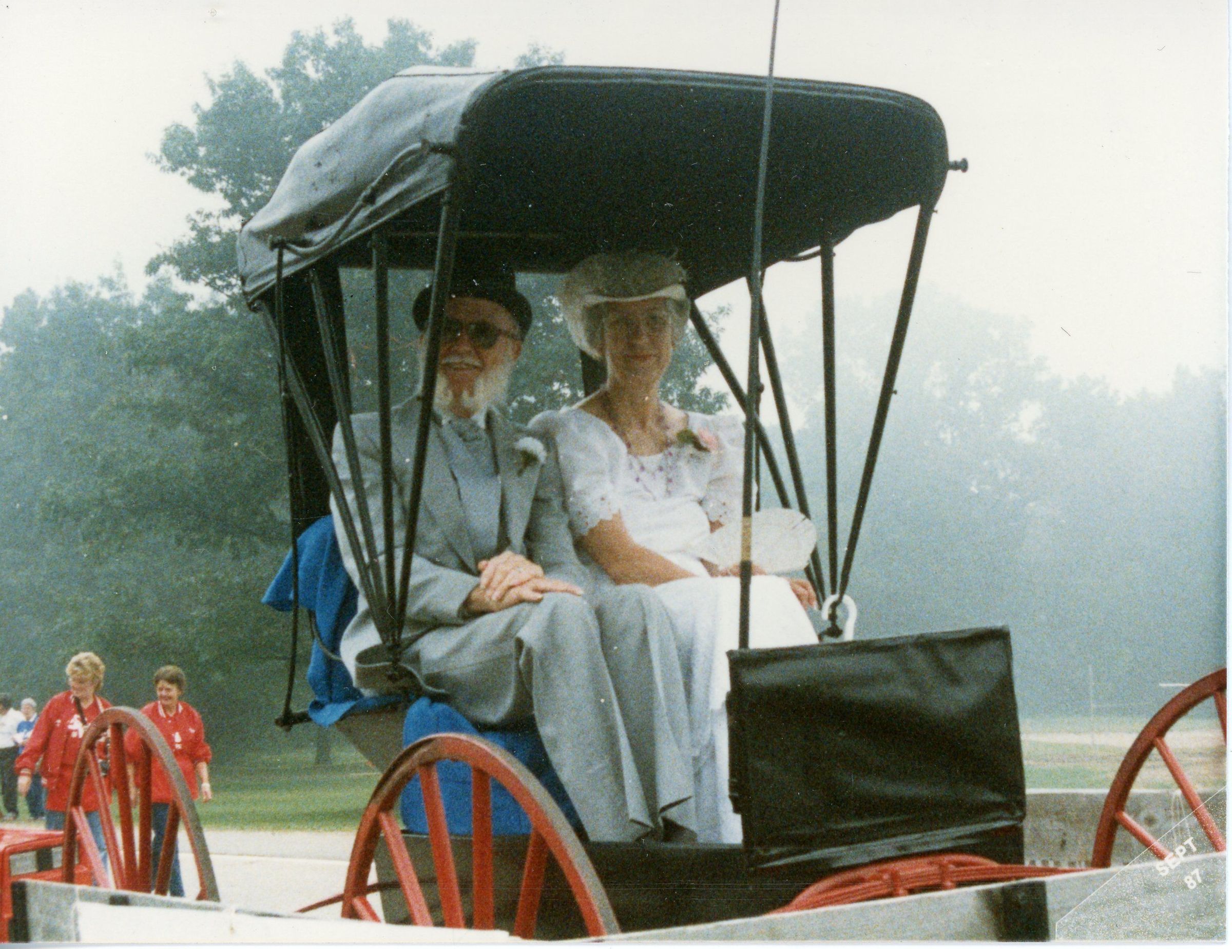 Sesquicentennial Parade 1987. Mr and Mrs Braxton Robbins. 9-5-1987. In Museum Carriage, Museum Float.