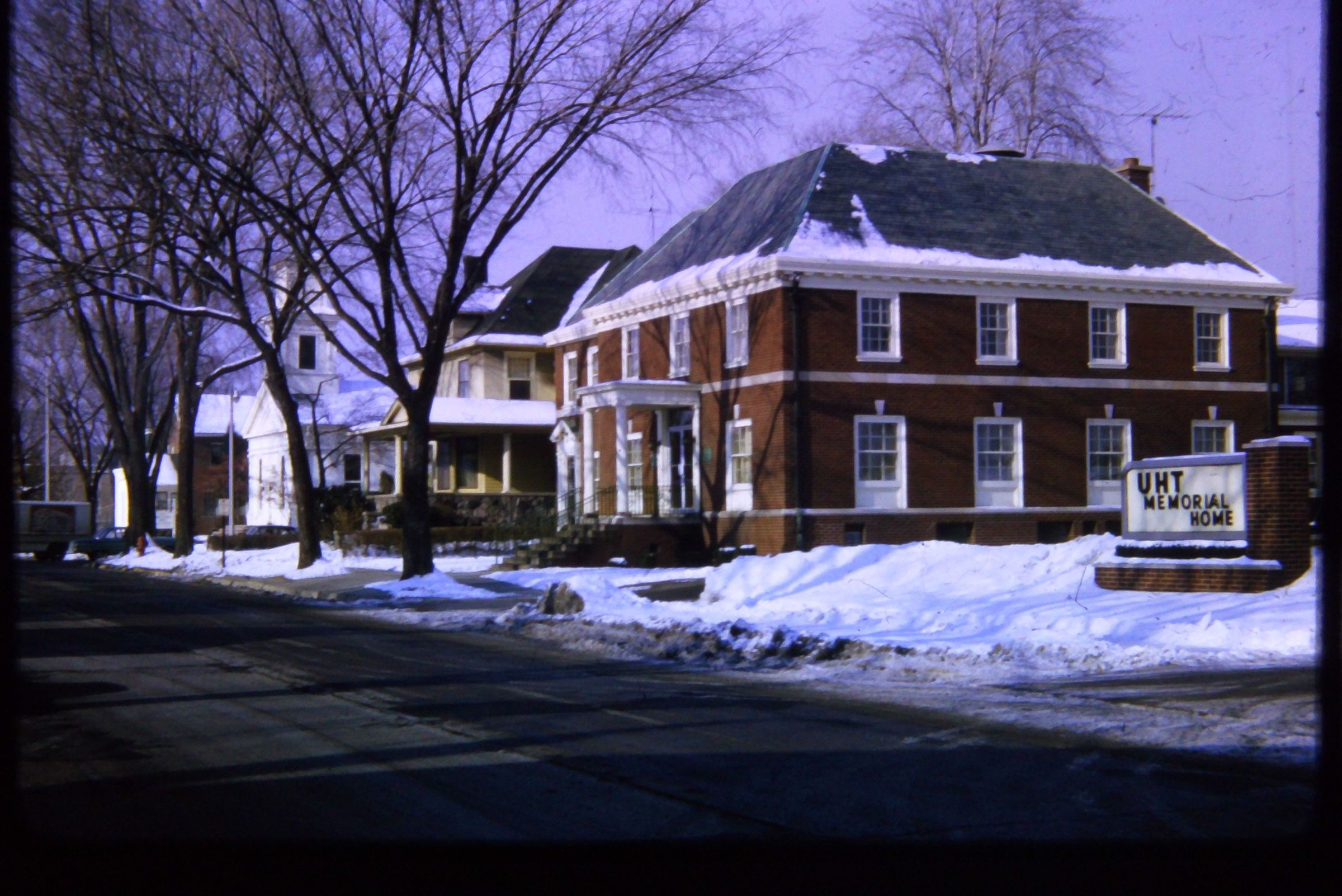 205 Main St. after it was purchased by Mantous Uht, who added an apartment on the west side and brick veneer, Uht Funeral Home. Torn down for Urban Renewal