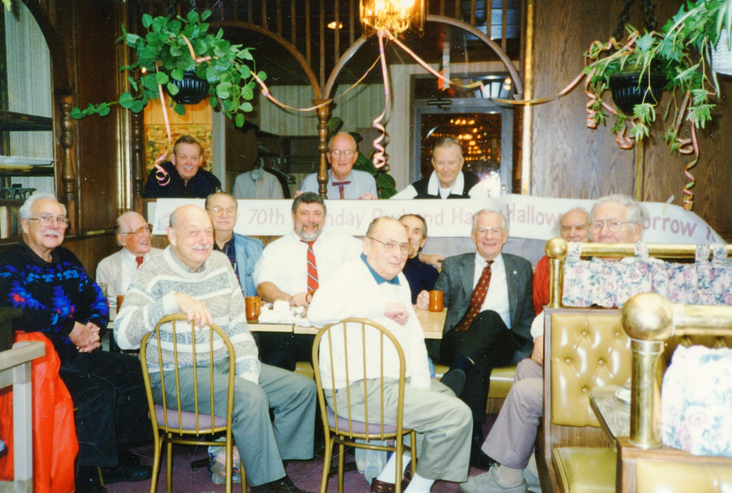 Koffee Klatch at Omega, 1995. Back Row: Murray Millar, Tony Drager, Bob Little, Dave Carpenter, Jack O'Brien, George Smith, Terry Warden, Henry Goudy, Harold Hargrove, Ken Marshall, Dale Butler. Front Row: Bud Stein, Matt TinkhamCataloged By