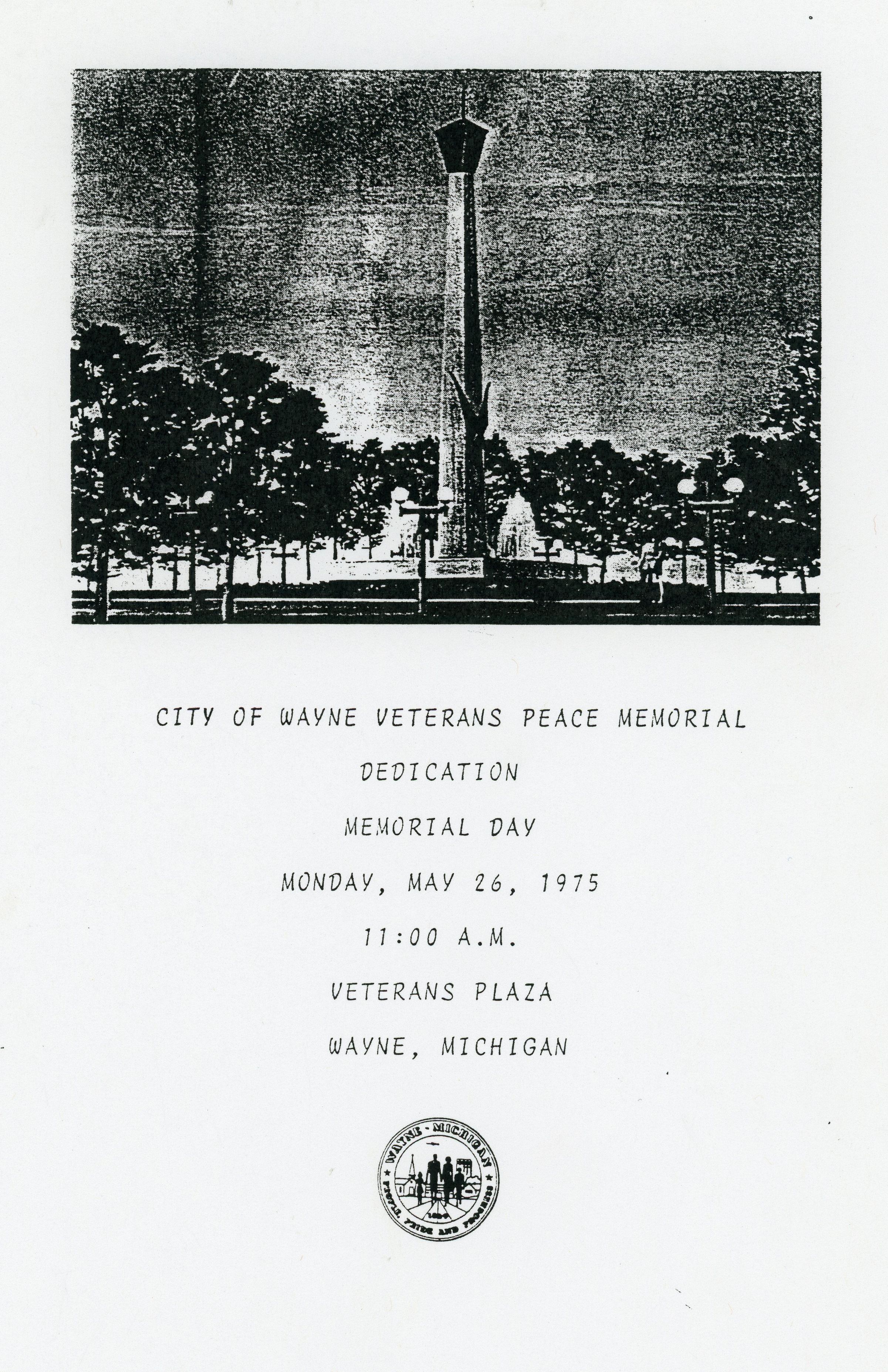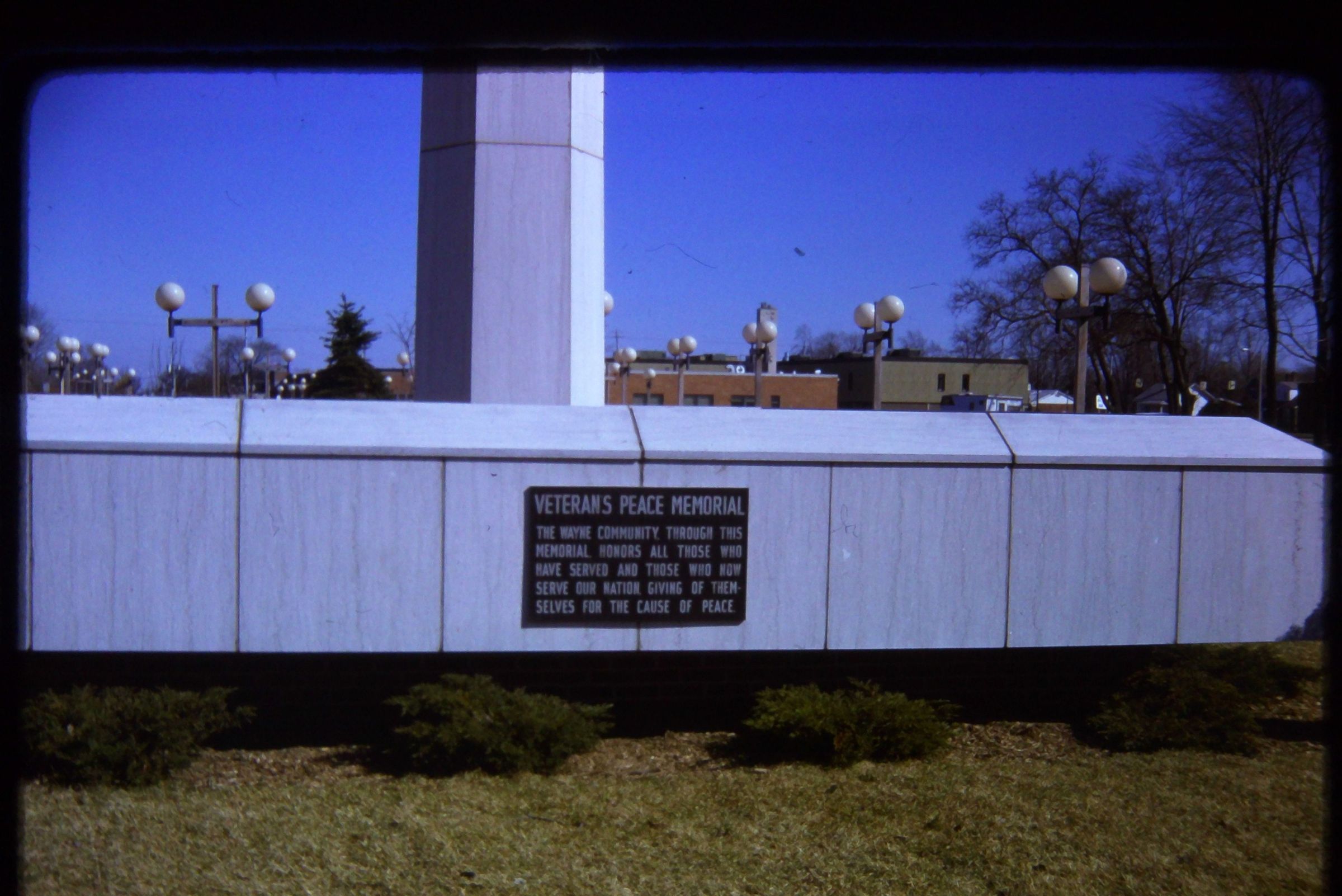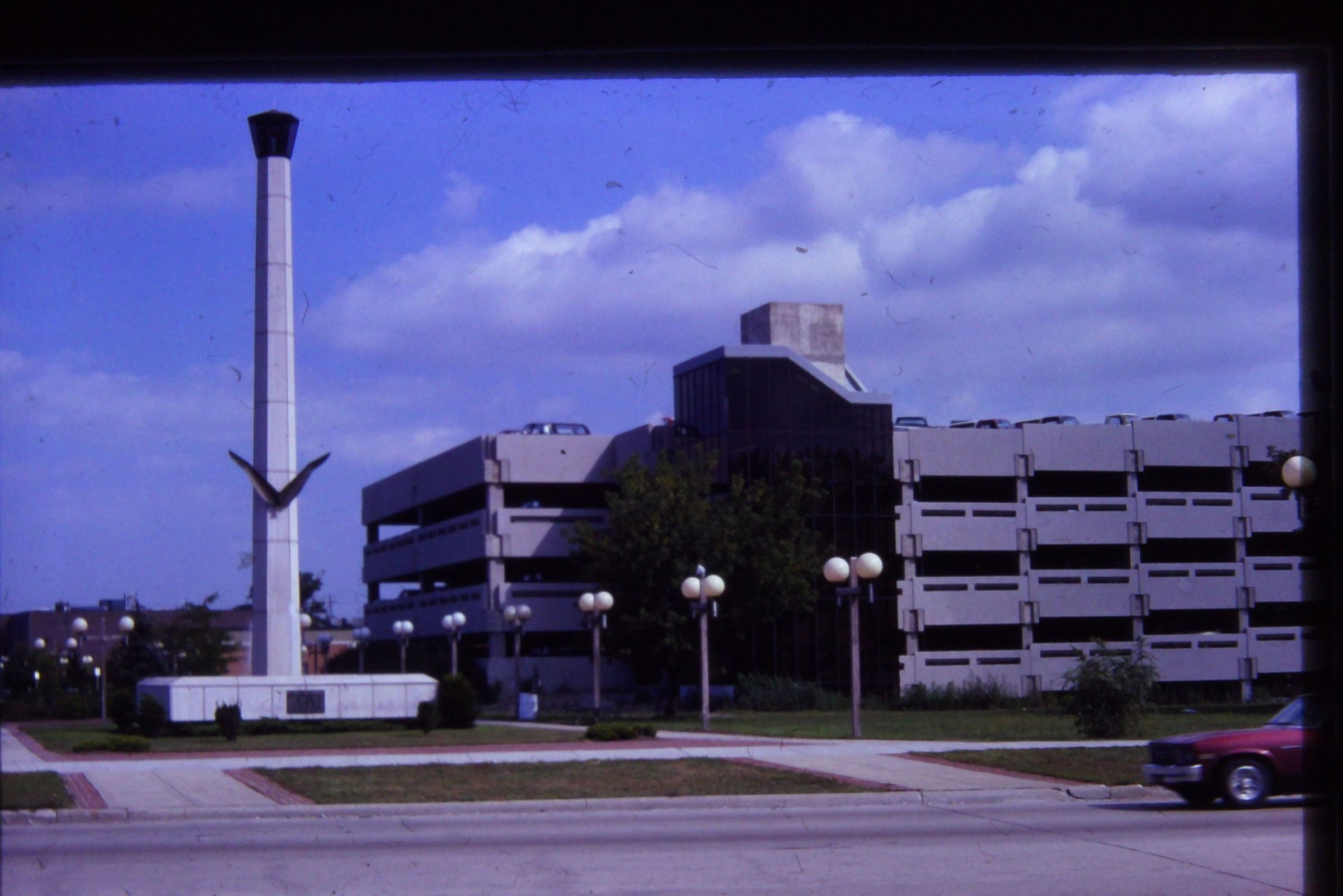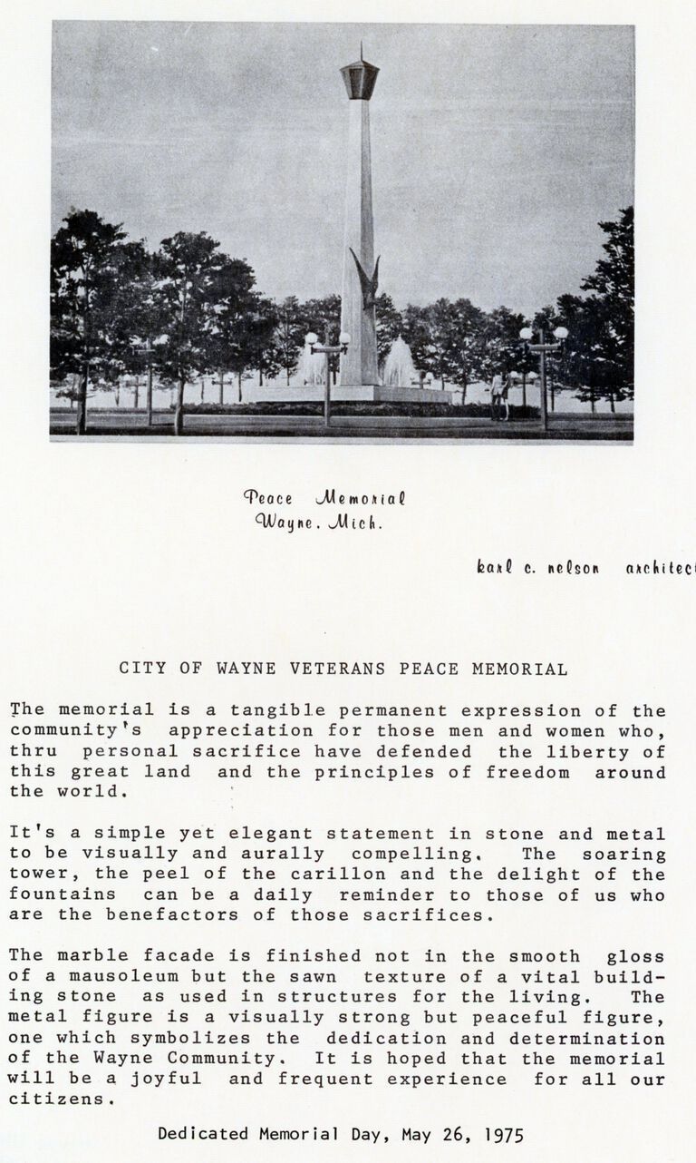 Veterans Peace Memorial. Built 1975. Karl C. Nelson Architect. Cost $85,000. Paid for by Federal Urban Renewal Beautification funds.Cataloged By