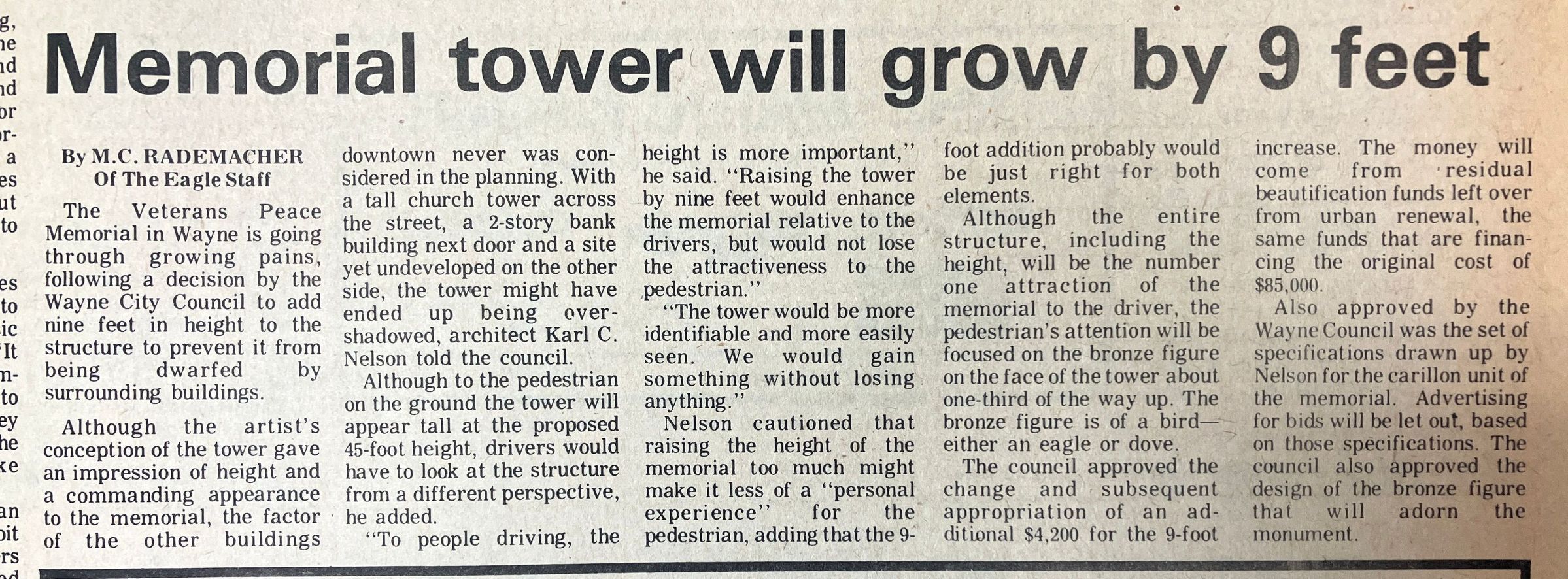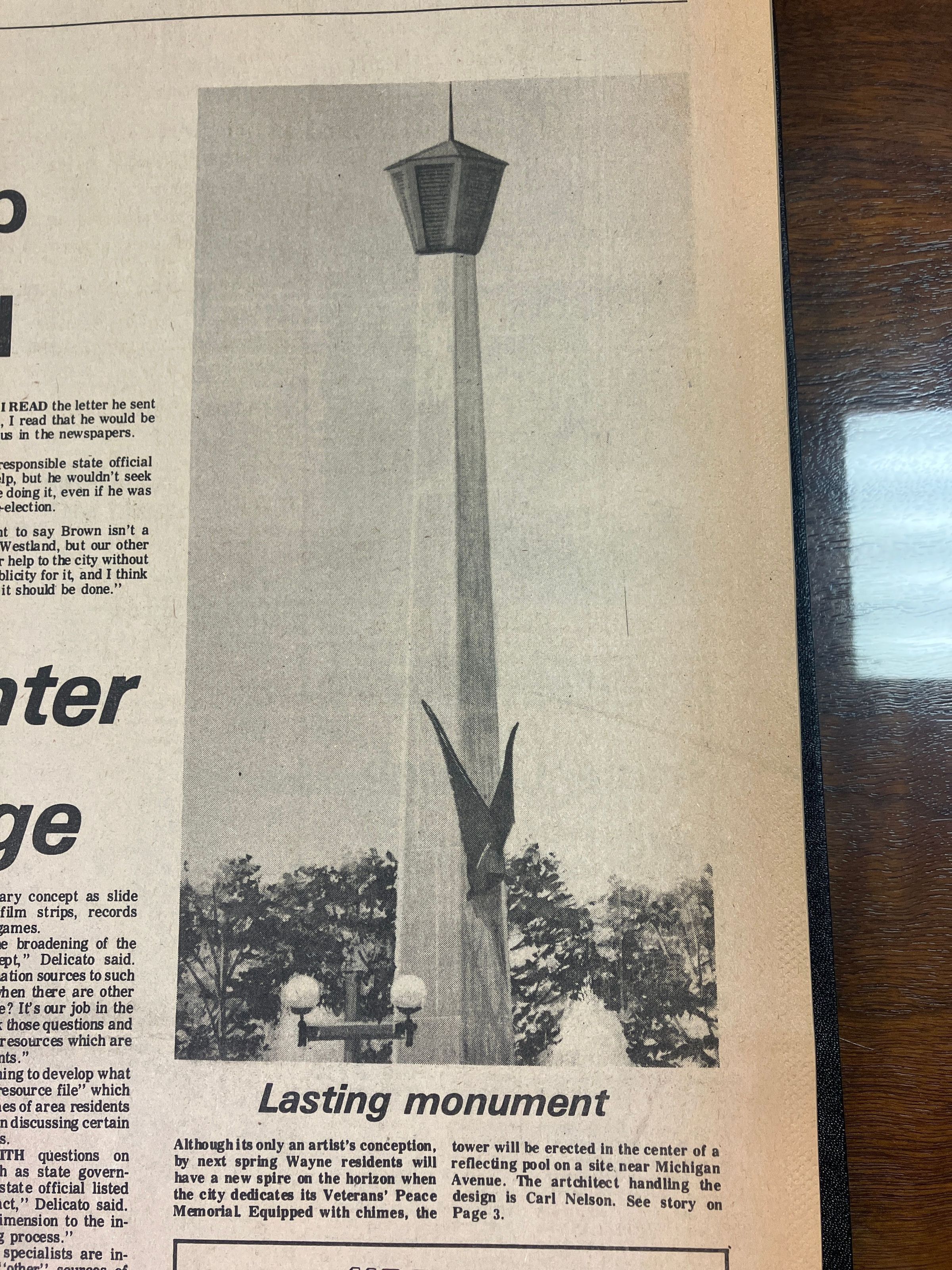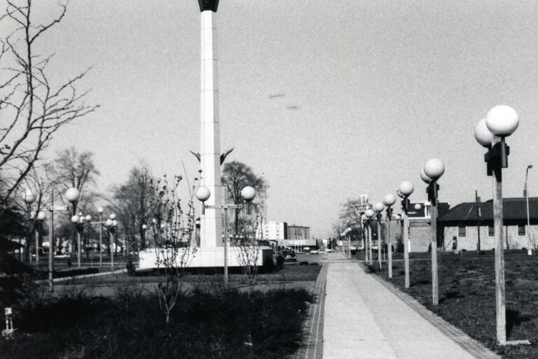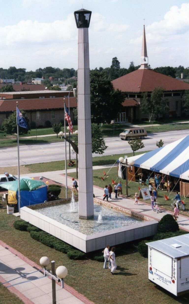 Veterans Peace Memorial. Built 1975. Karl C. Nelson Architect. Cost $85,000. Paid for by Federal Urban Renewal Beautification funds.Cataloged By
