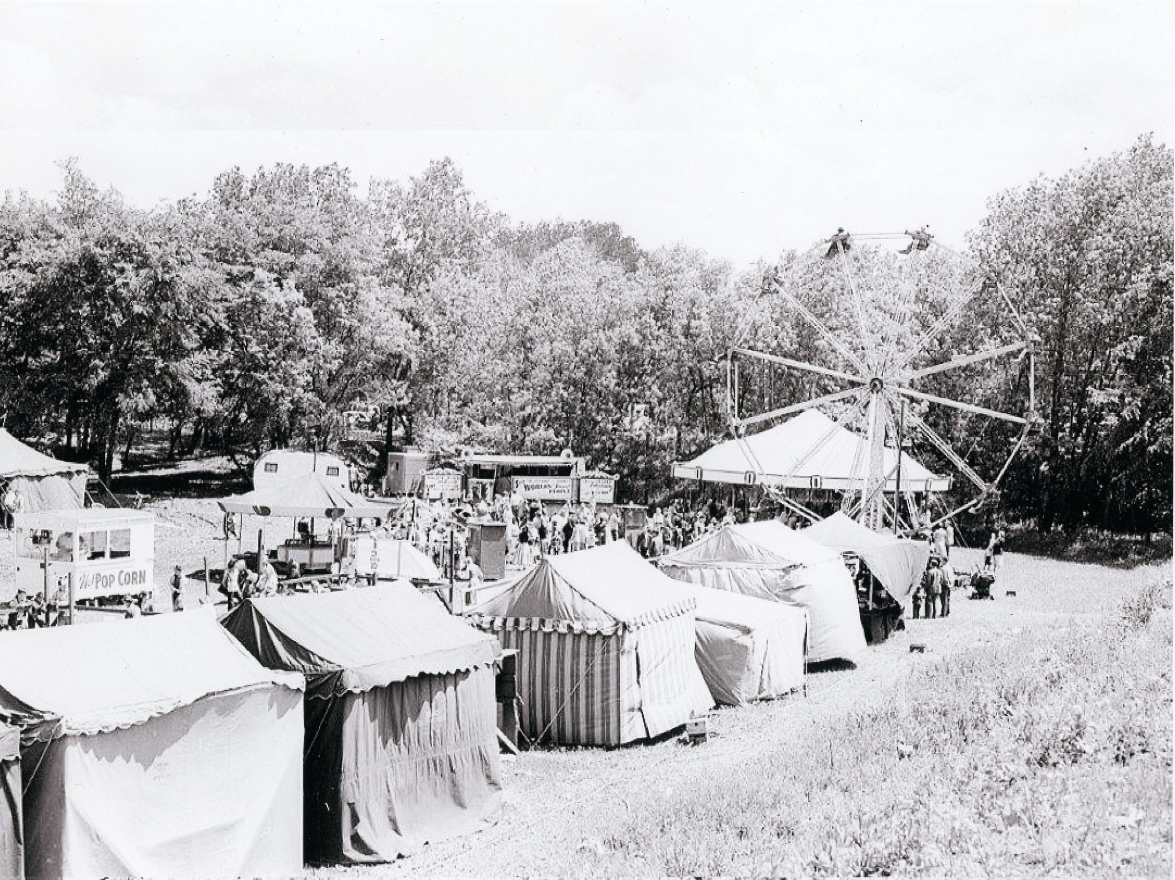Rotary Carnival 1954. In flats behind Sims. Tents and Carnival Rides.