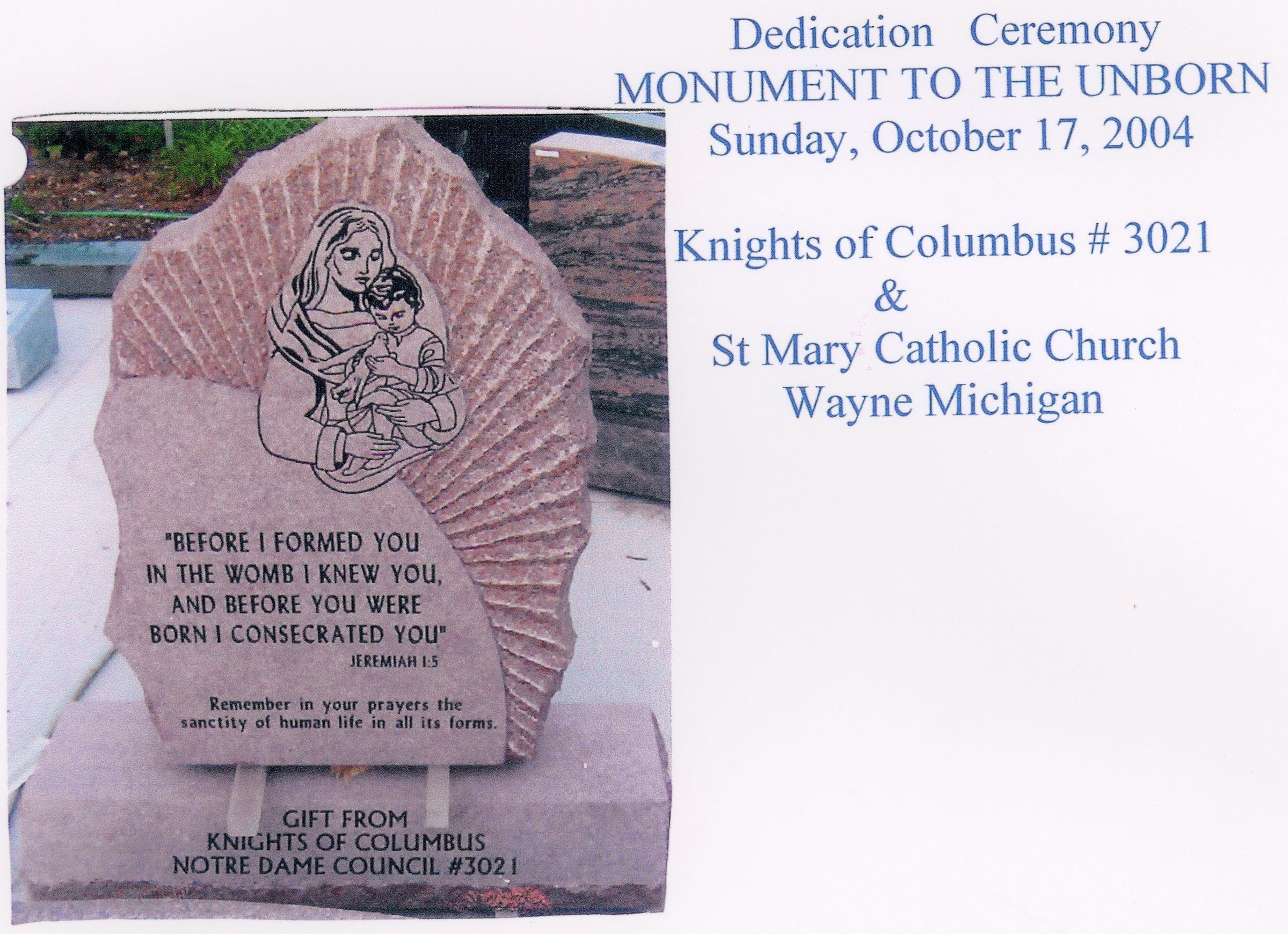Dedication of Monument to the Unborn. Knights of Columbus #3021, 2004