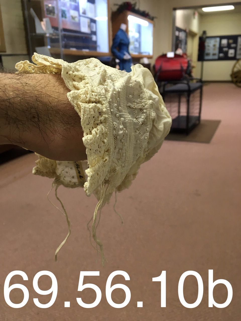 Embroidered White Baby Bonnet worn by Agnes Stellwagen.