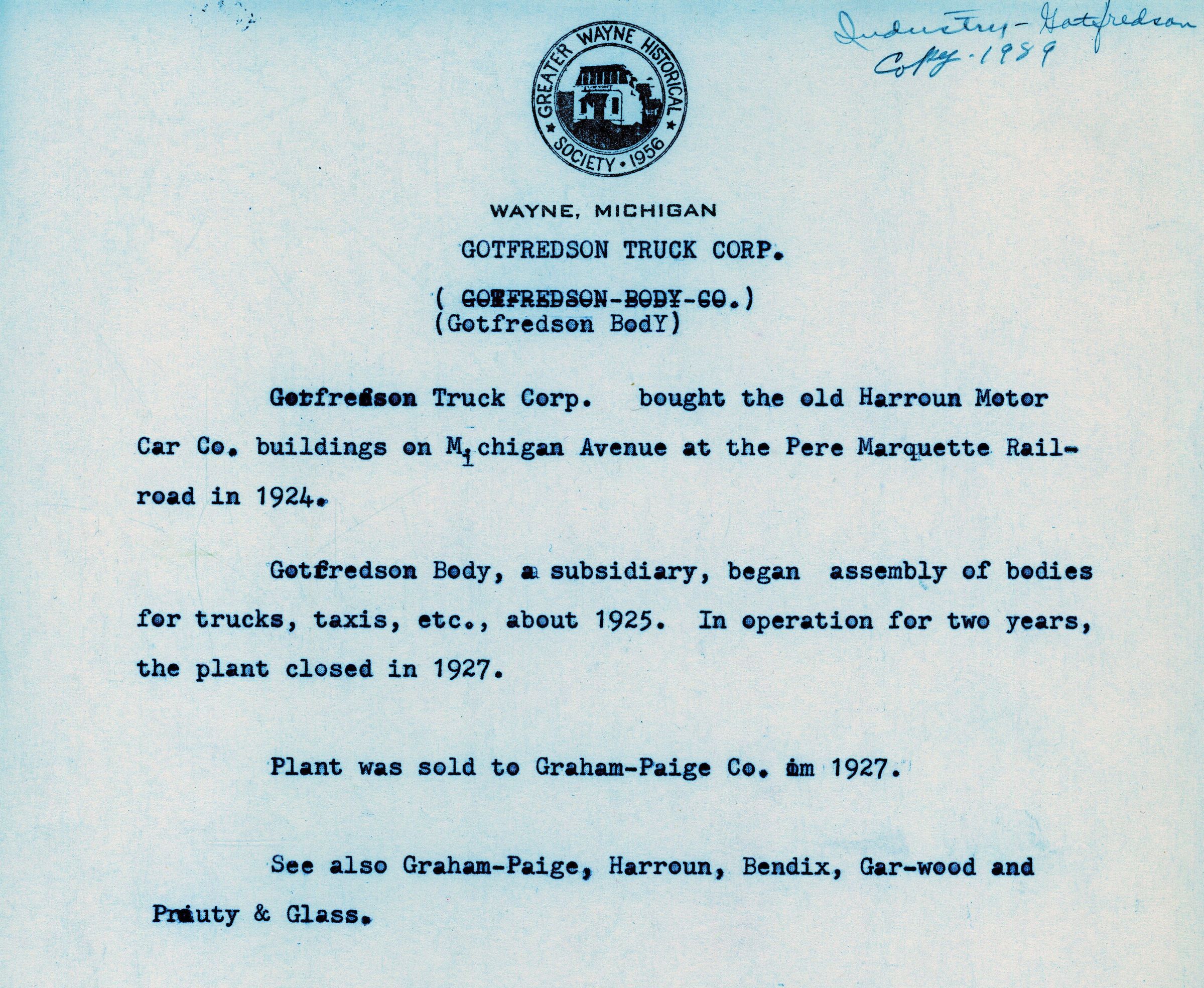 Gotfredso Truck Corp. Bought The Old Harroun Motor Car Co. Buildings 1924Description