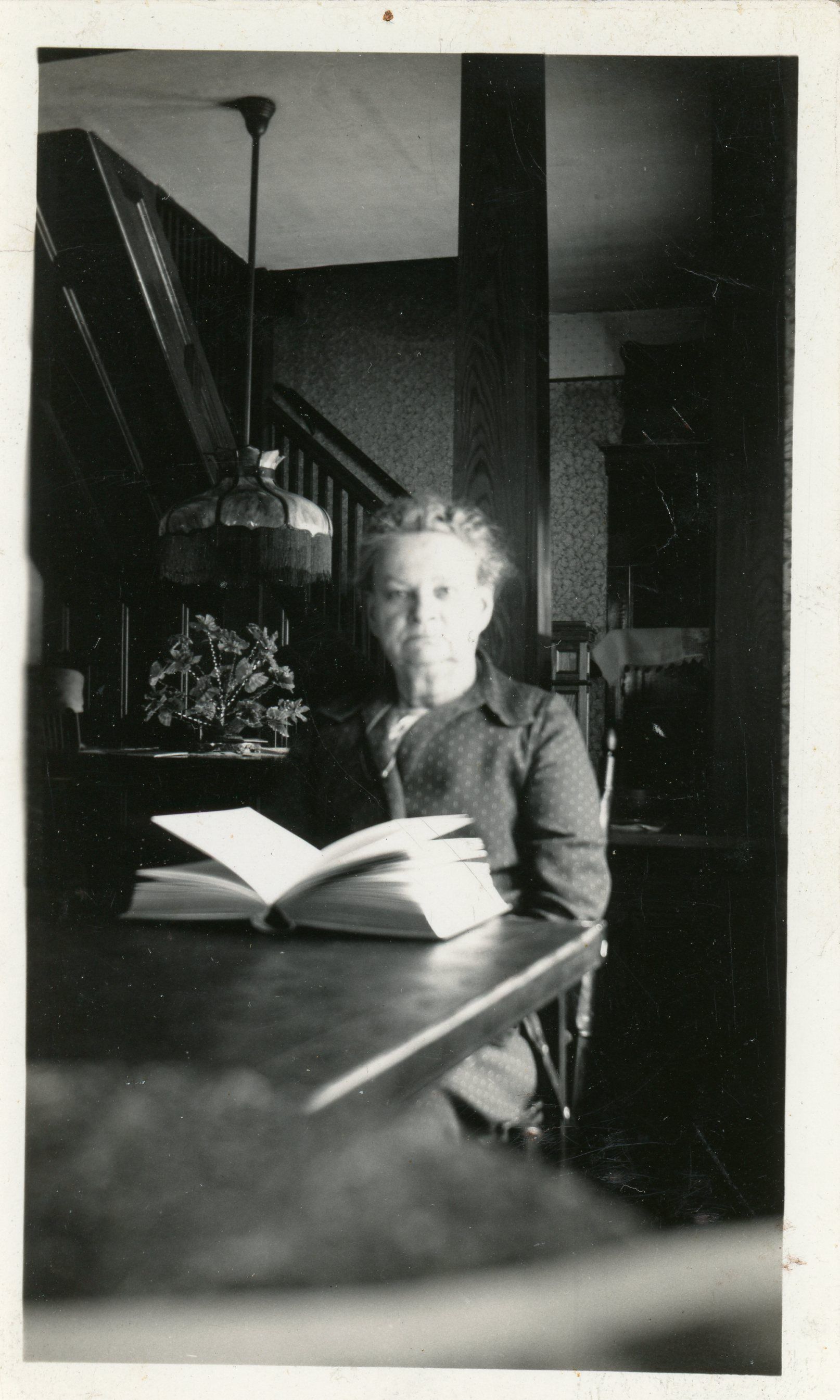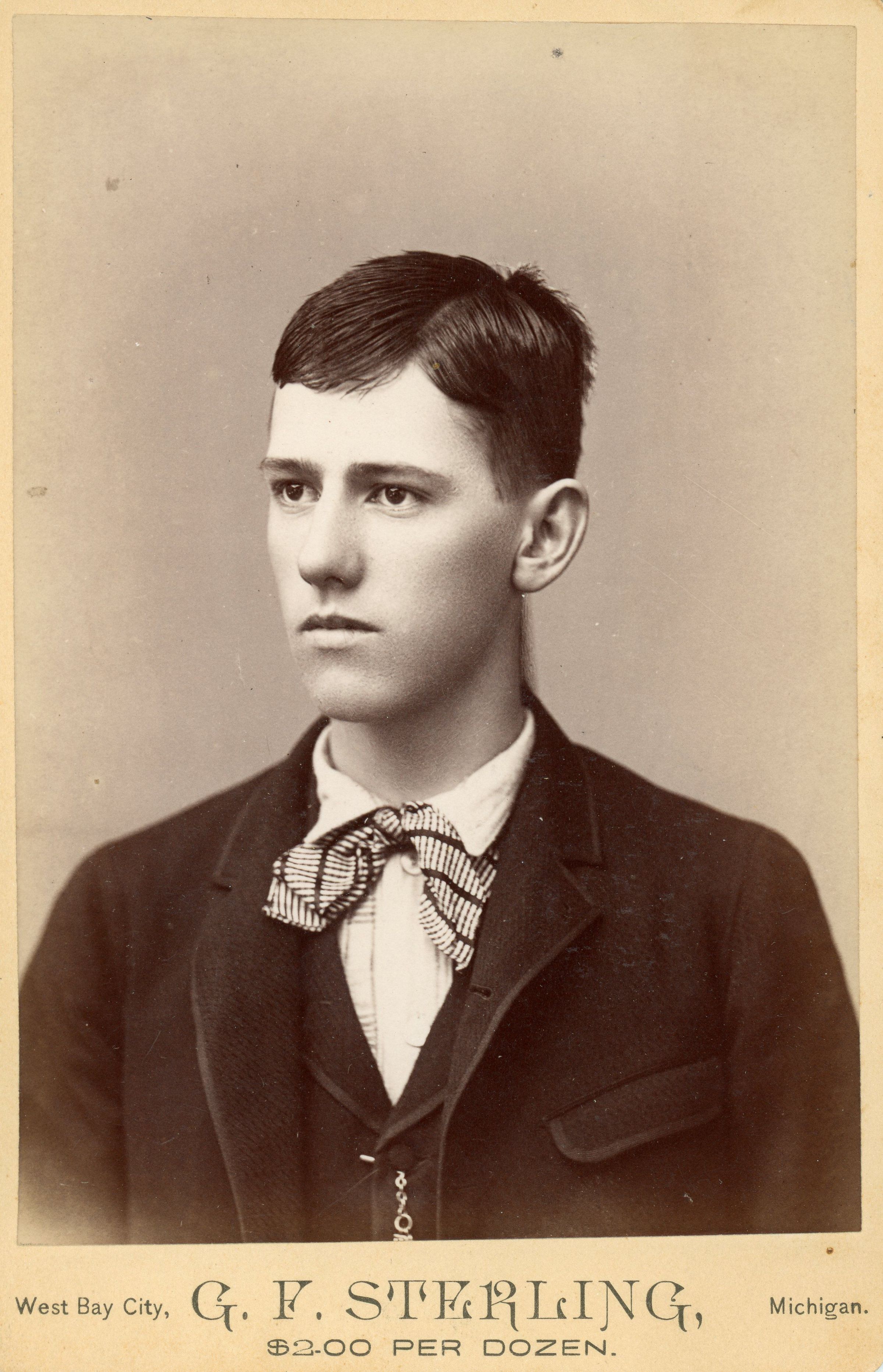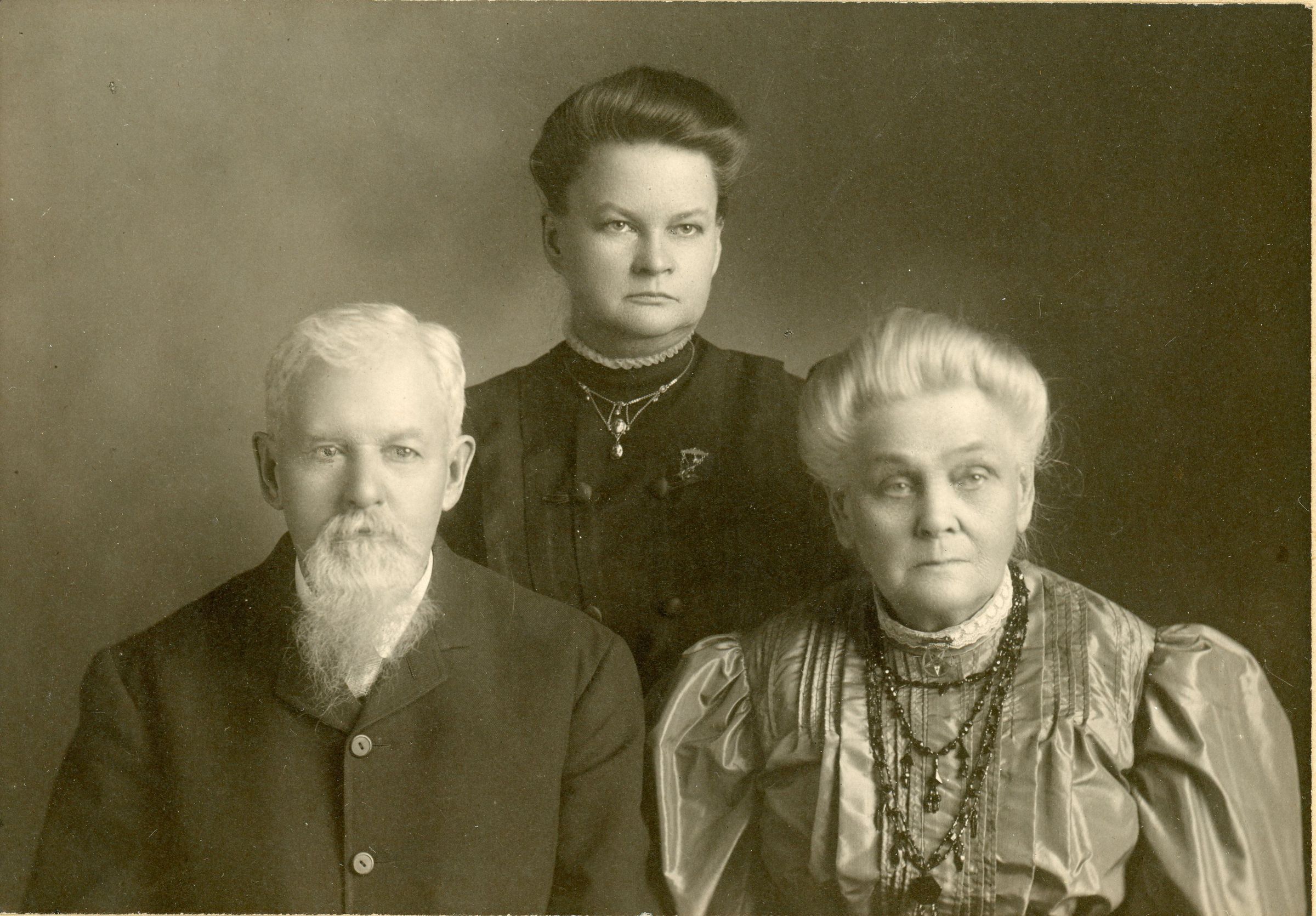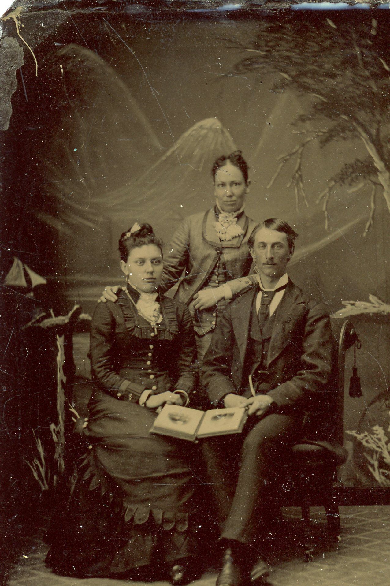 Coleburn Family Last Photo. 1st row L to R: Earl and Charlie Smith, Grace Smith, Lena Chambers and Nellie Smith. 2nd Row L to R; Dorcas Scott, Mary Hawley, Will Smith and Lila Smith. 3rd Row: Joe Smith, Lena Smith Rose Burgess of Cali, Harry Peters, Will Wilson and Glenn Smith. John Burgess took photo in front of Will Smith's House. Which stood next to Gus Thompson. East of Pere Marquette R.R where Gar woods stood, near M.C.R.R.Cataloged By