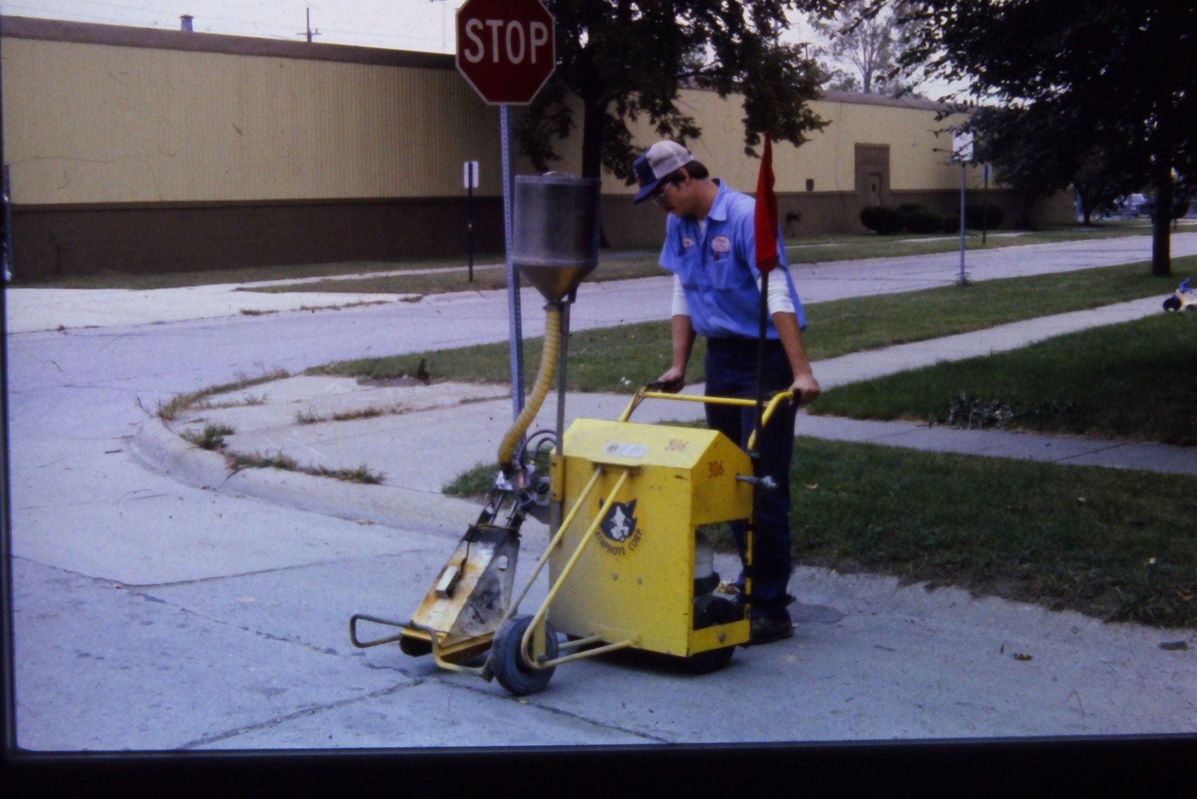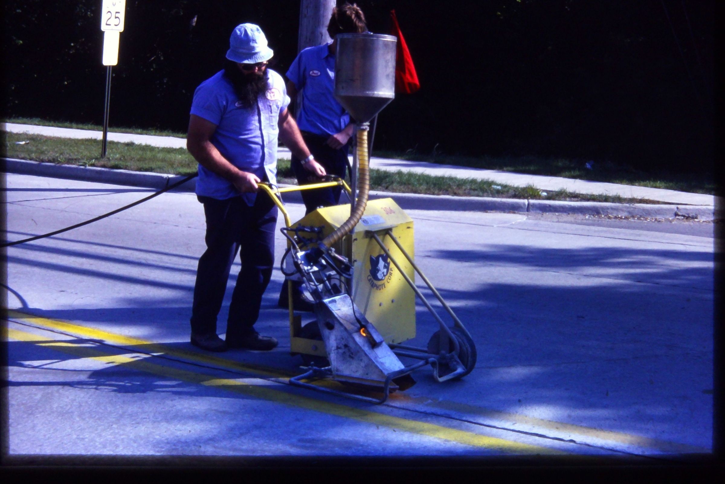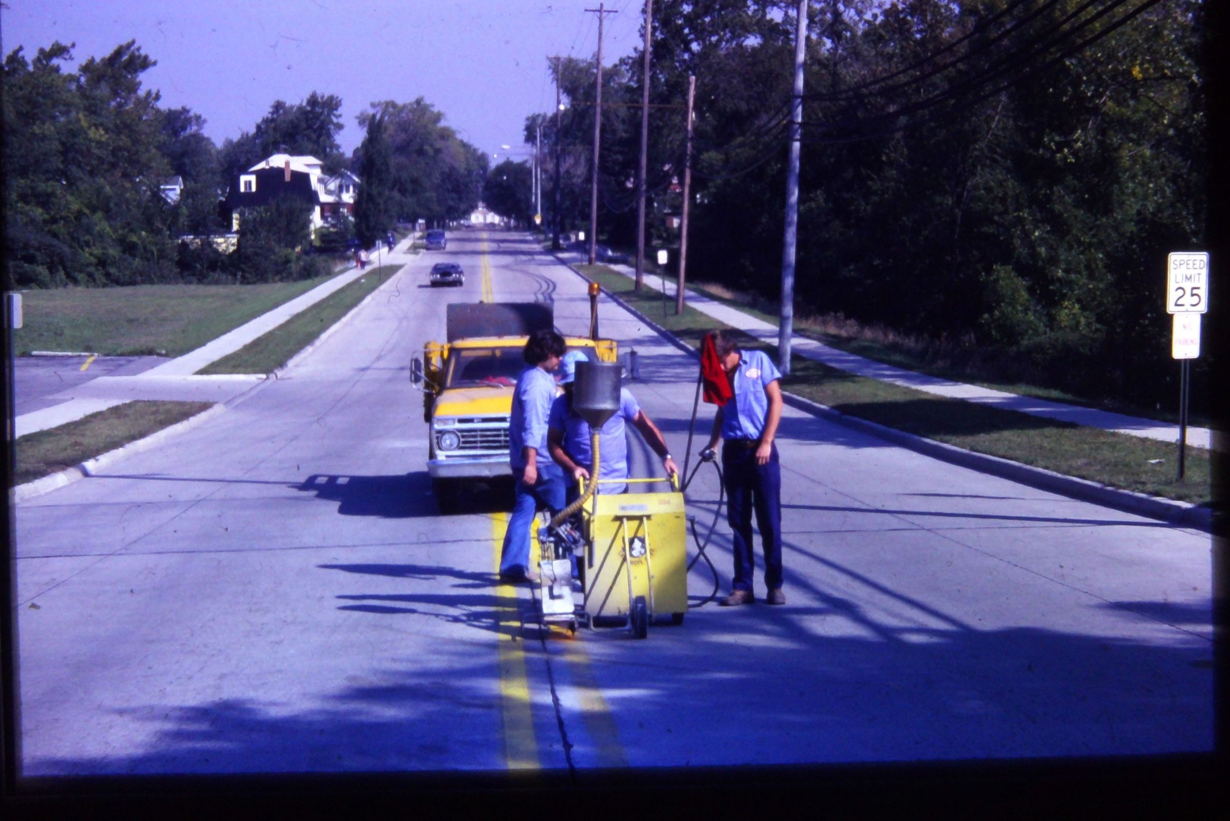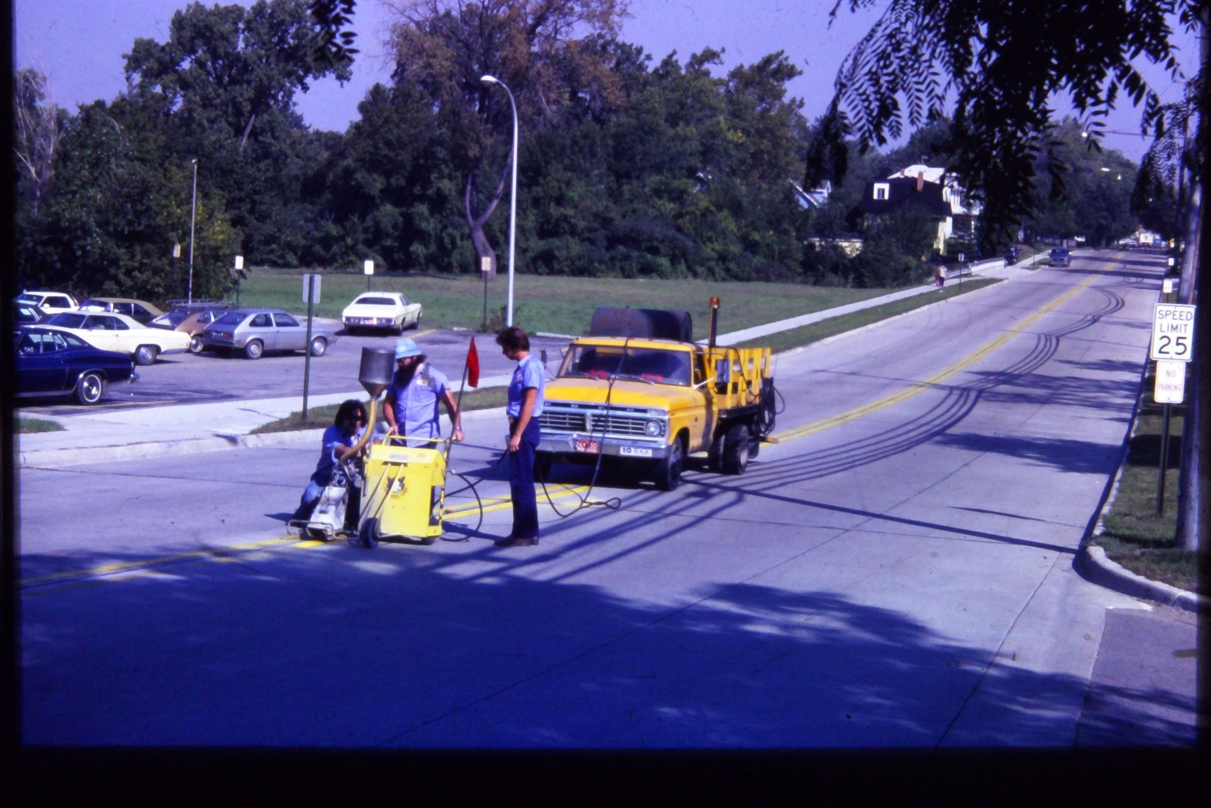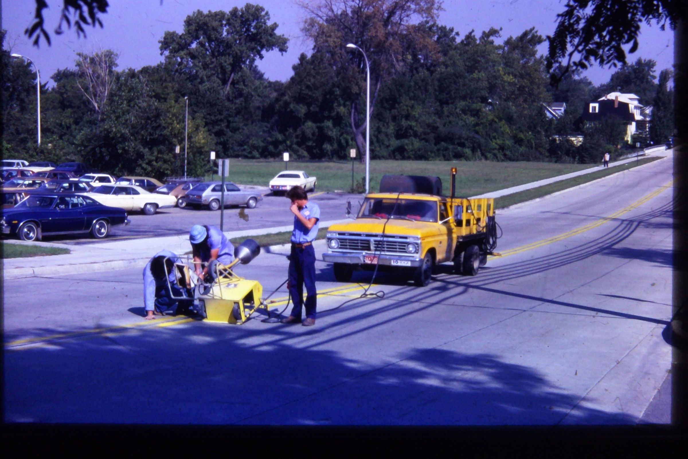DPW Workers - 1979. Painting road lines.